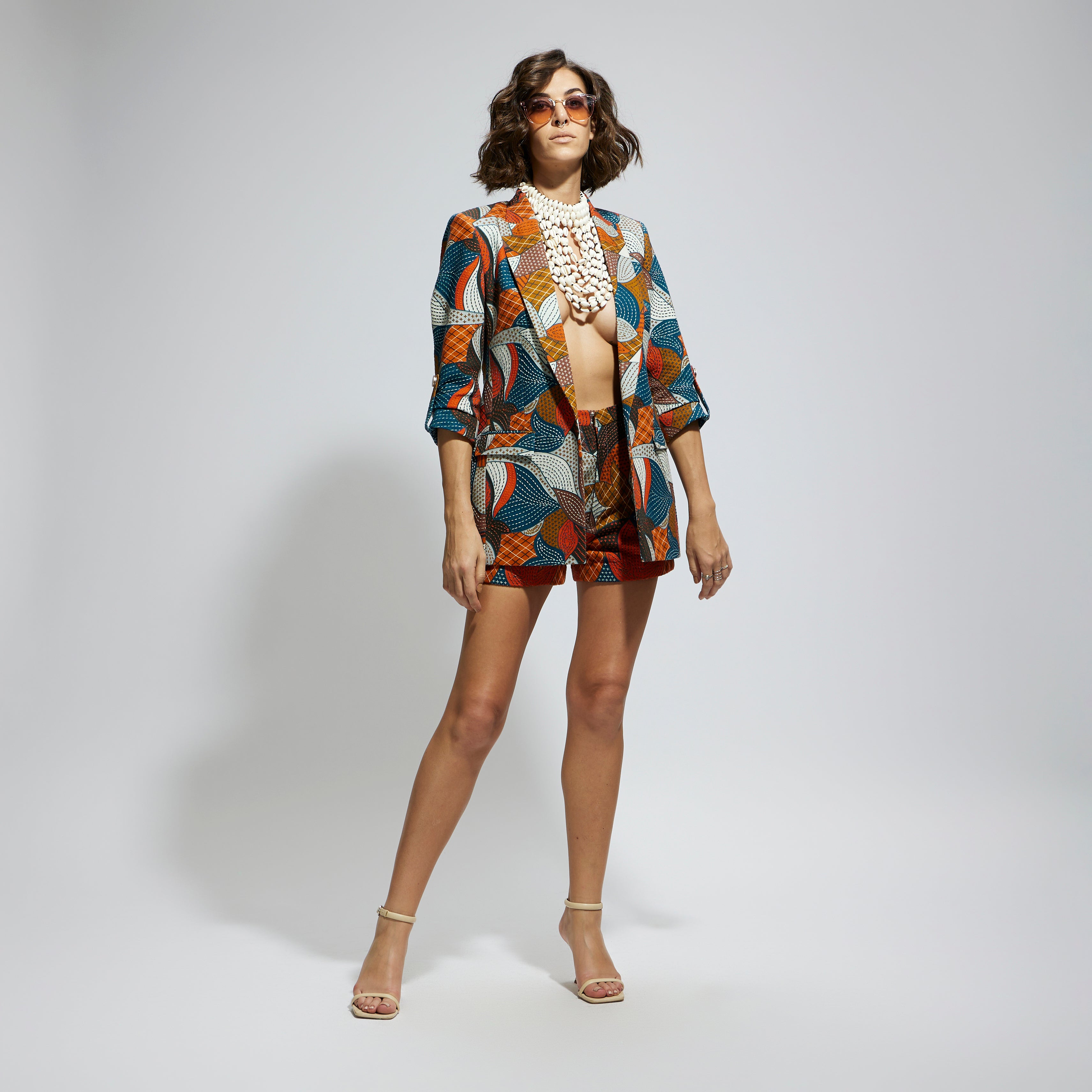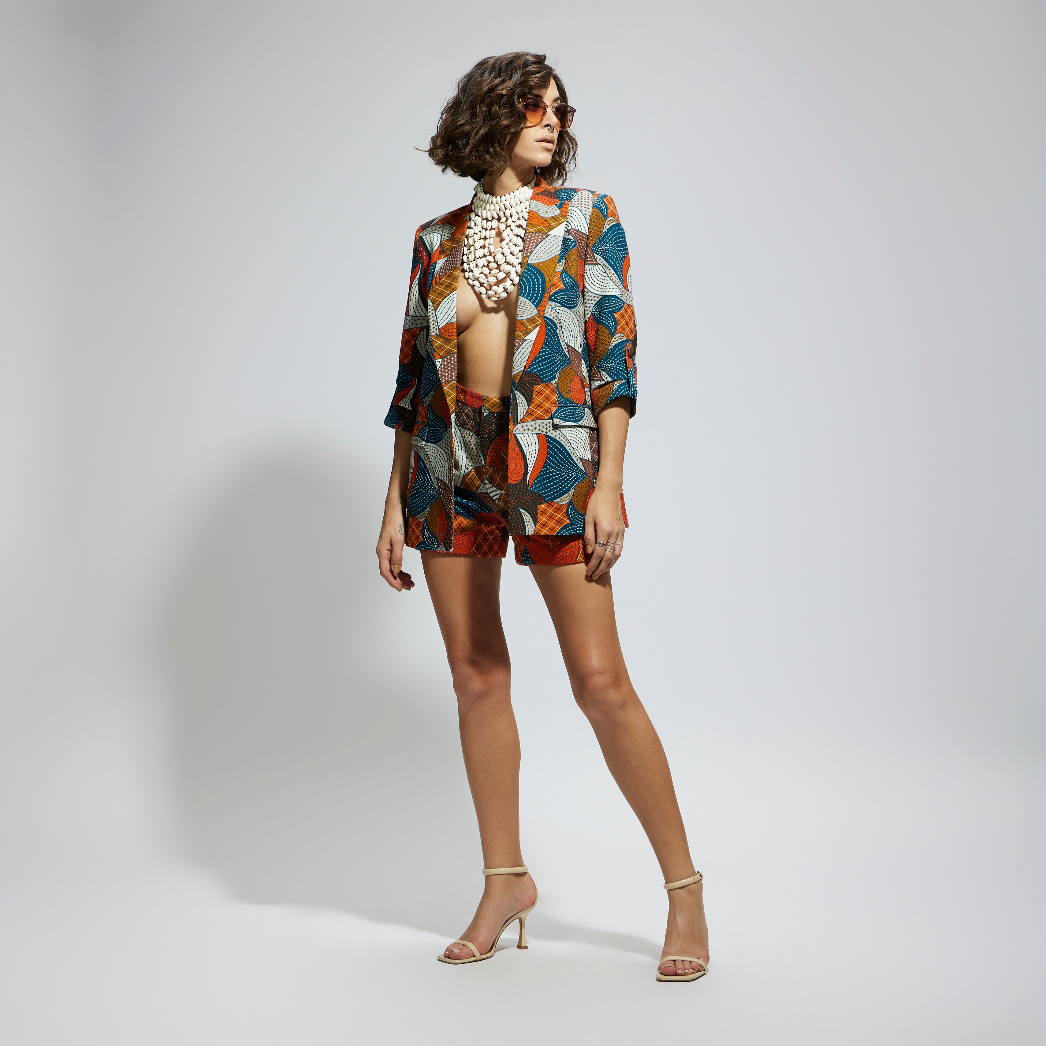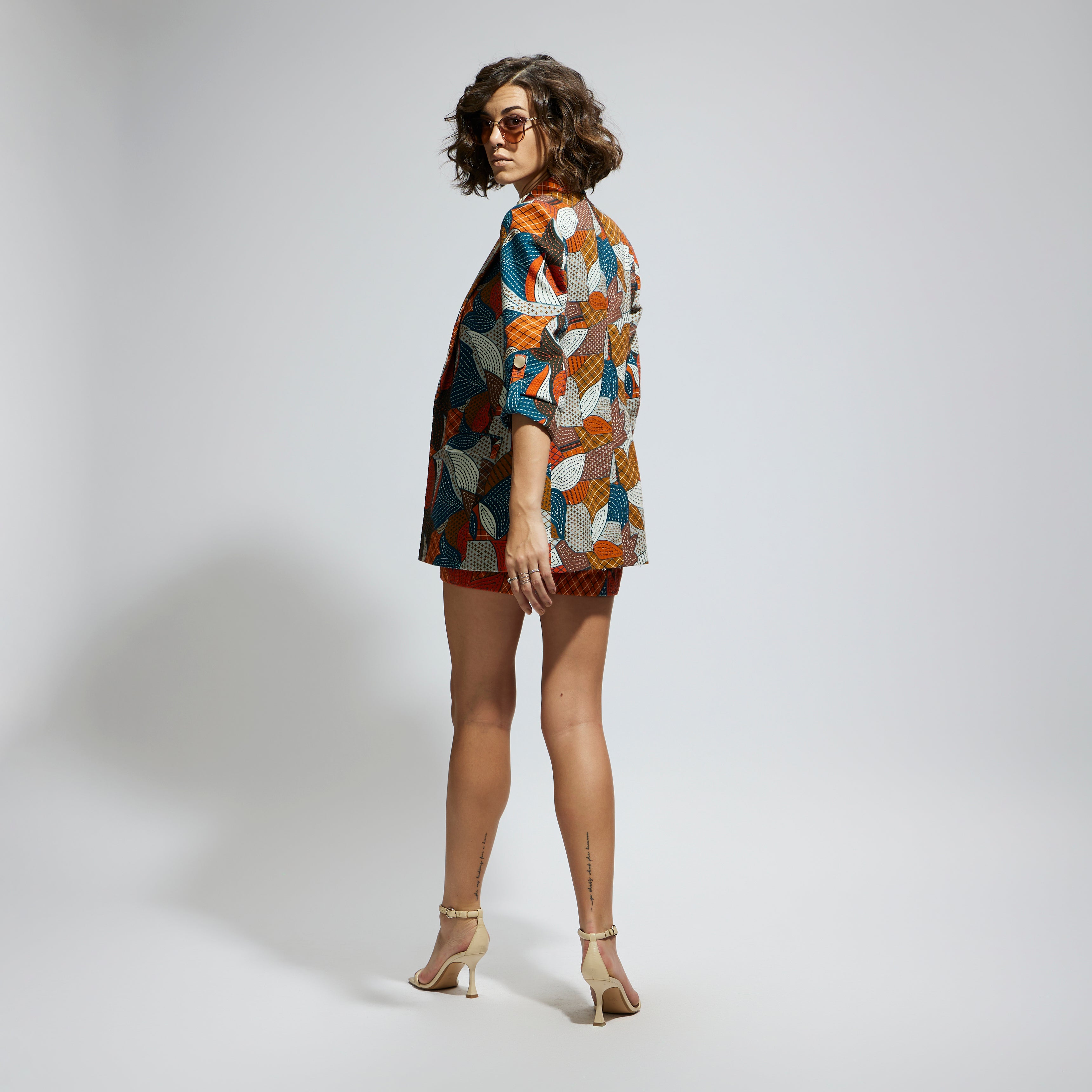 ABSTRACT ENGINEERED TEXTILE EMBELLISHED BLAZER SET