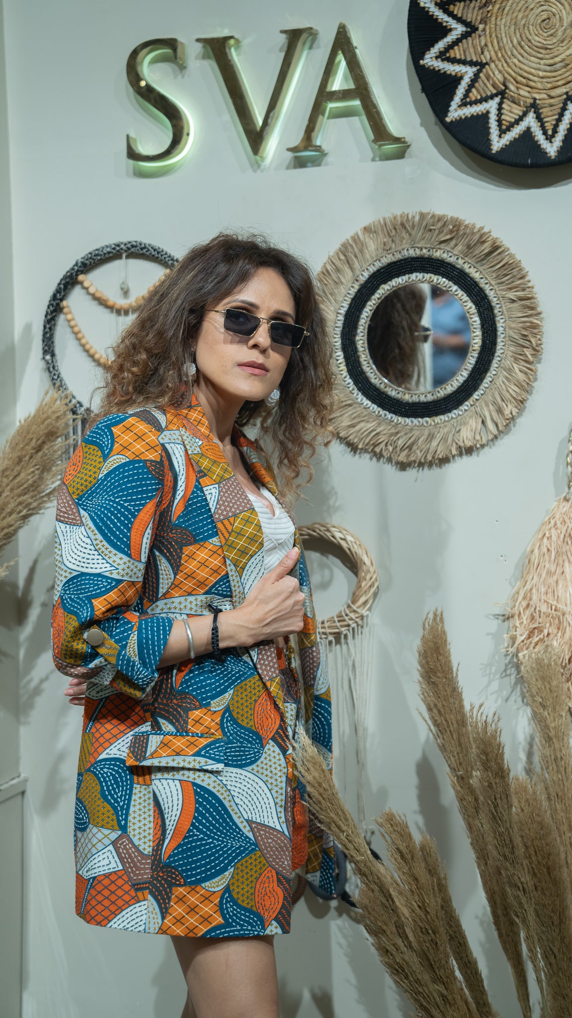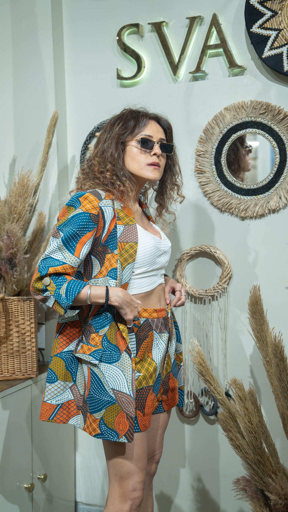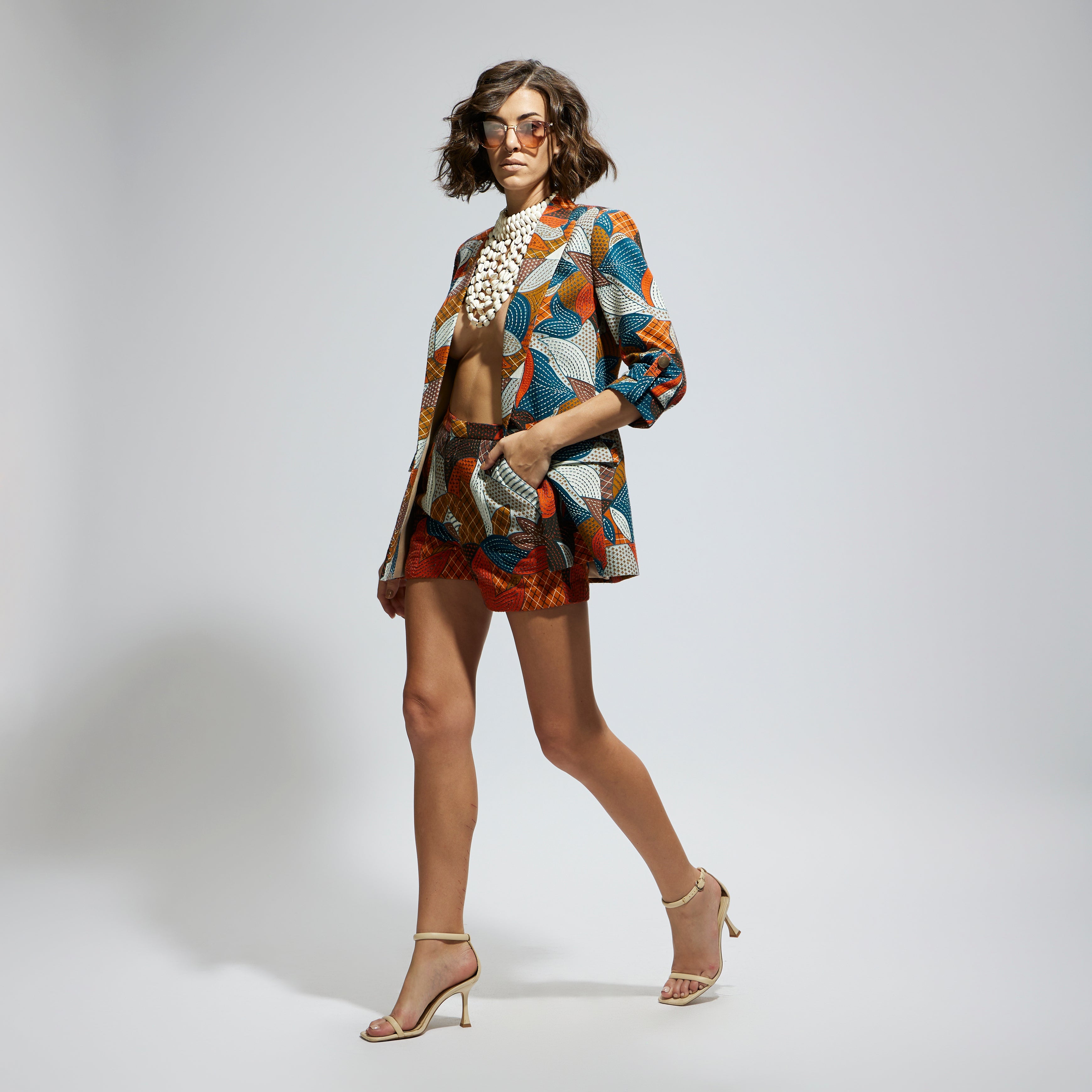 ABSTRACT ENGINEERED TEXTILE EMBELLISHED BLAZER SET