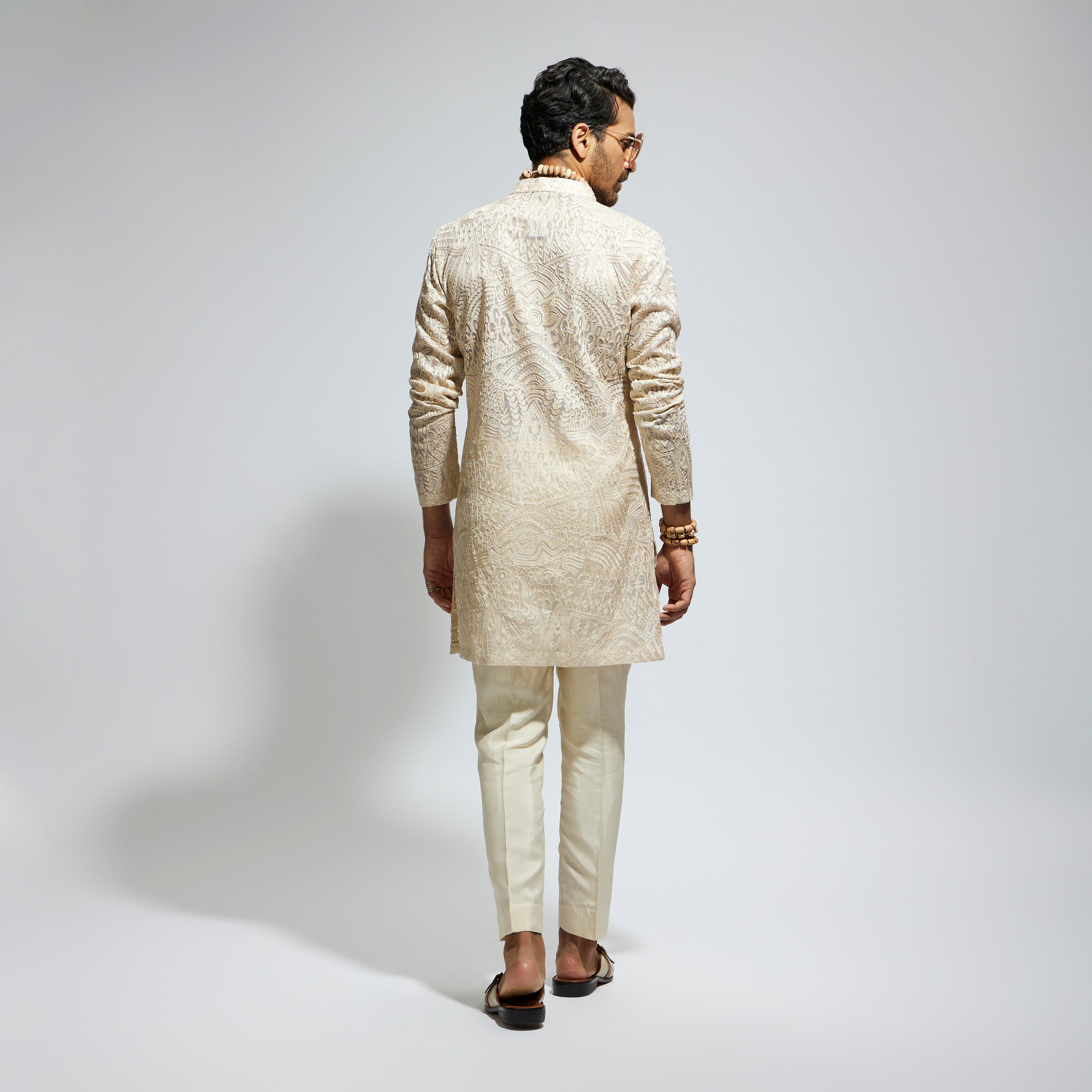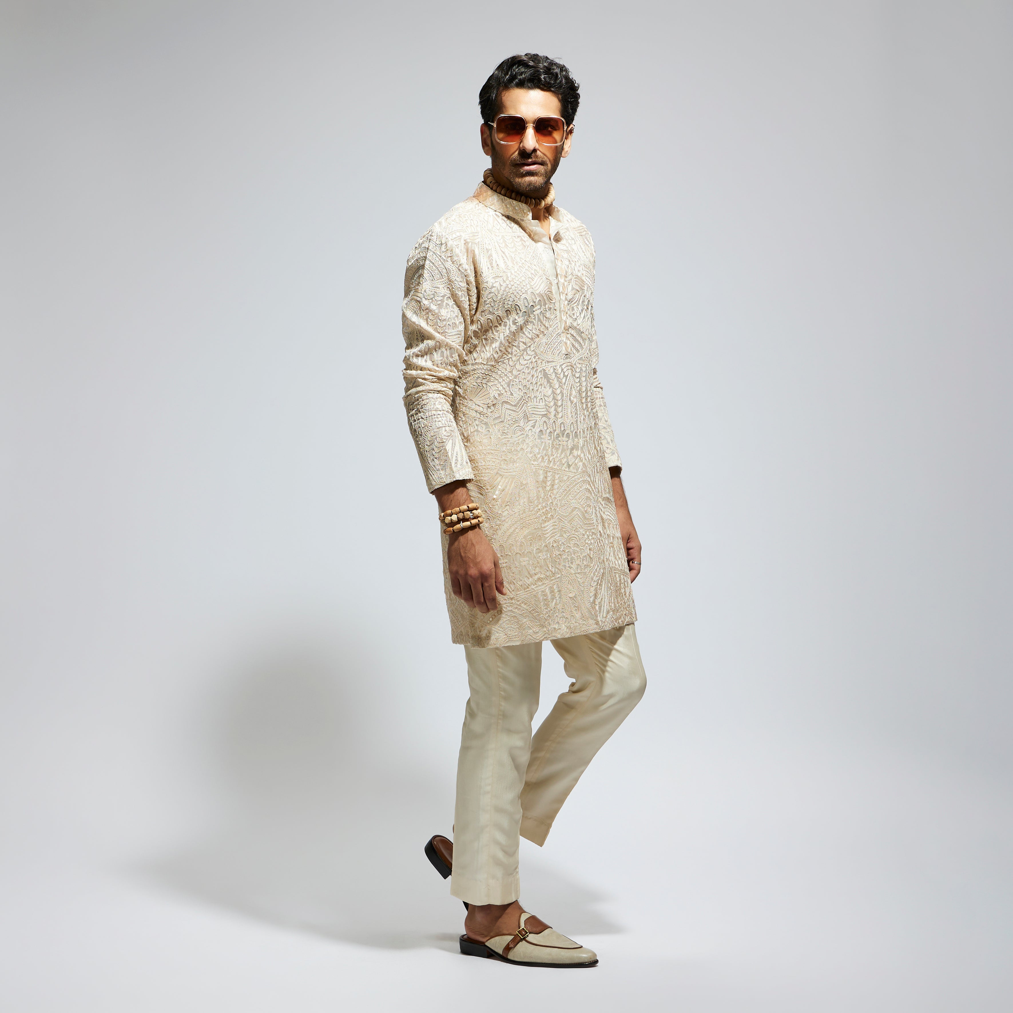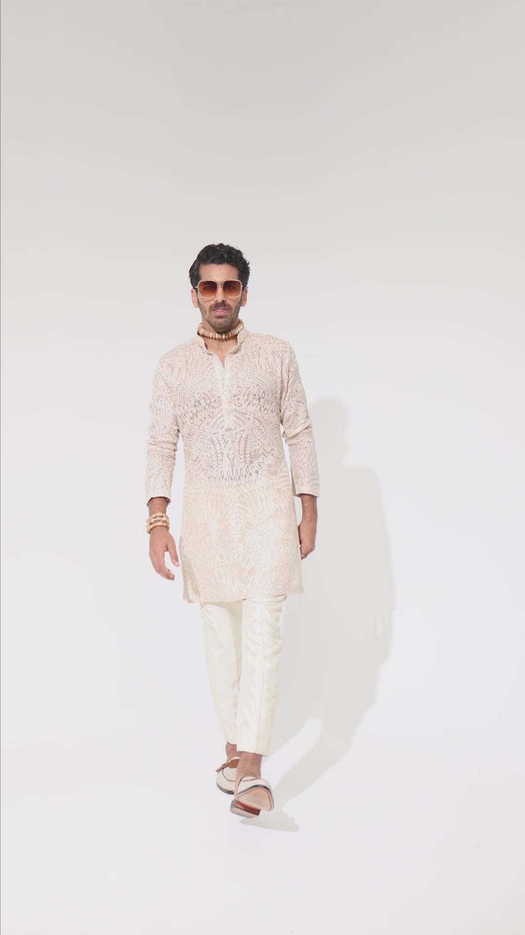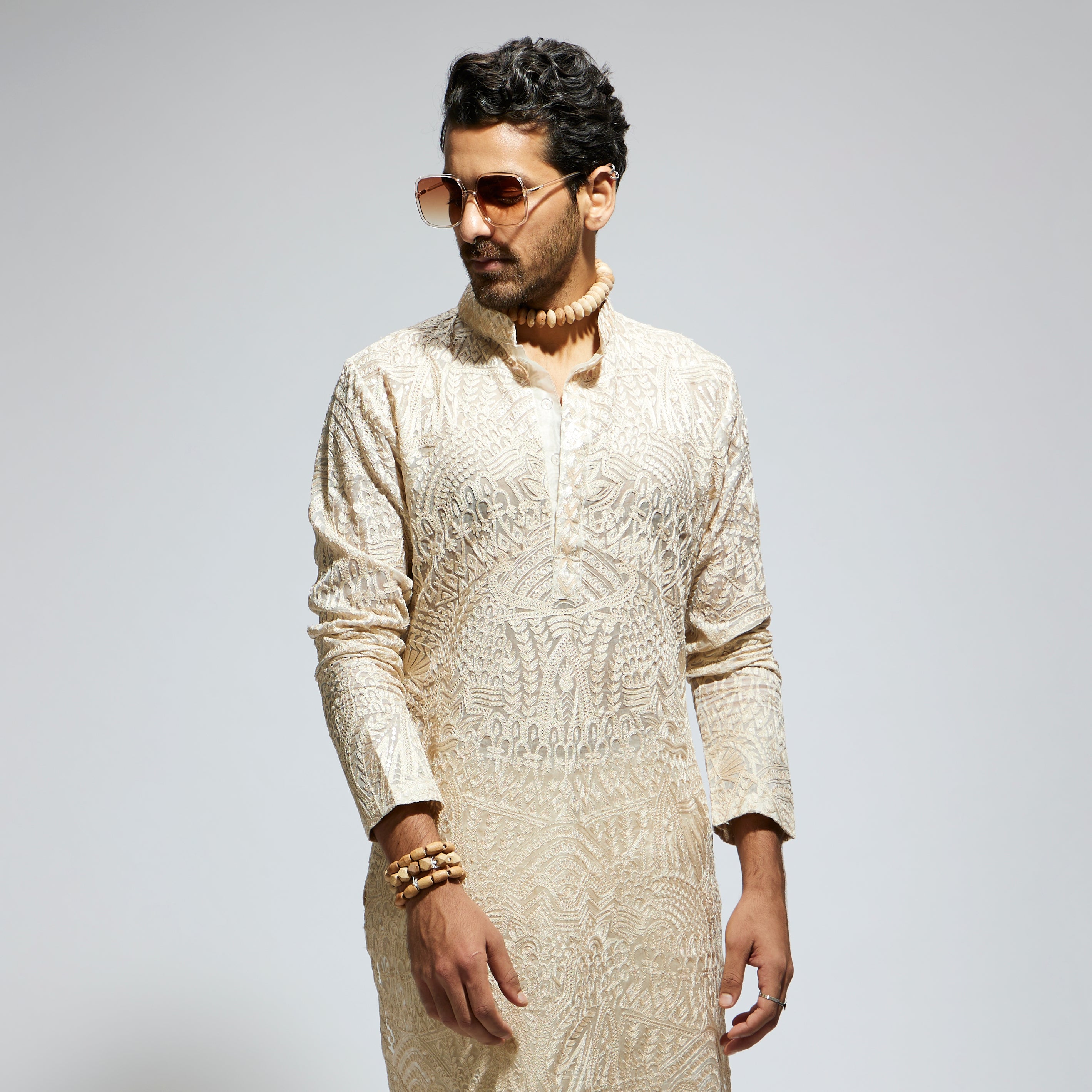 BEIGE ORGANZA EMBROIDERED KURTA WITH PANTS