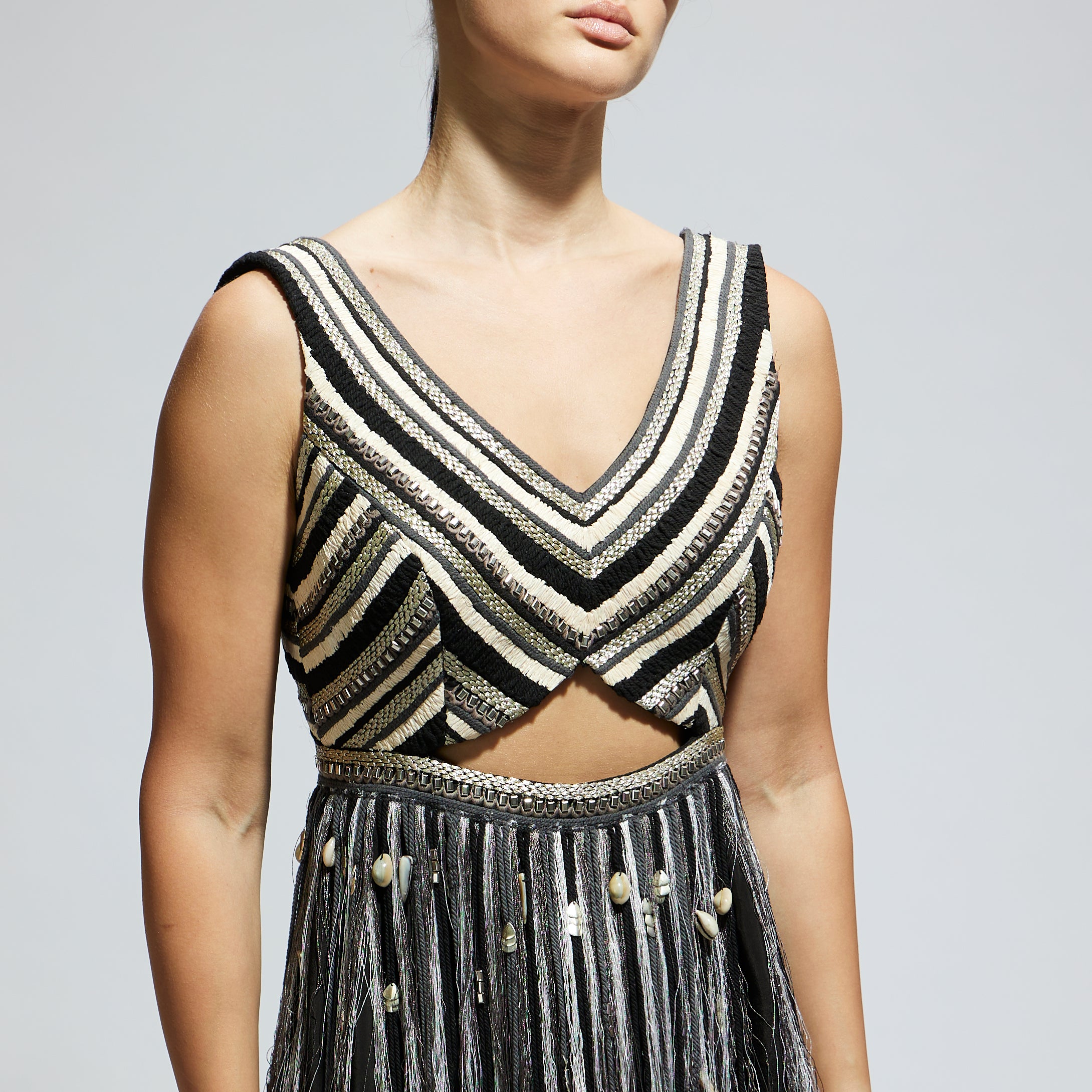 Featuring a black fringe mini, Fabric Canvas, Component 1.