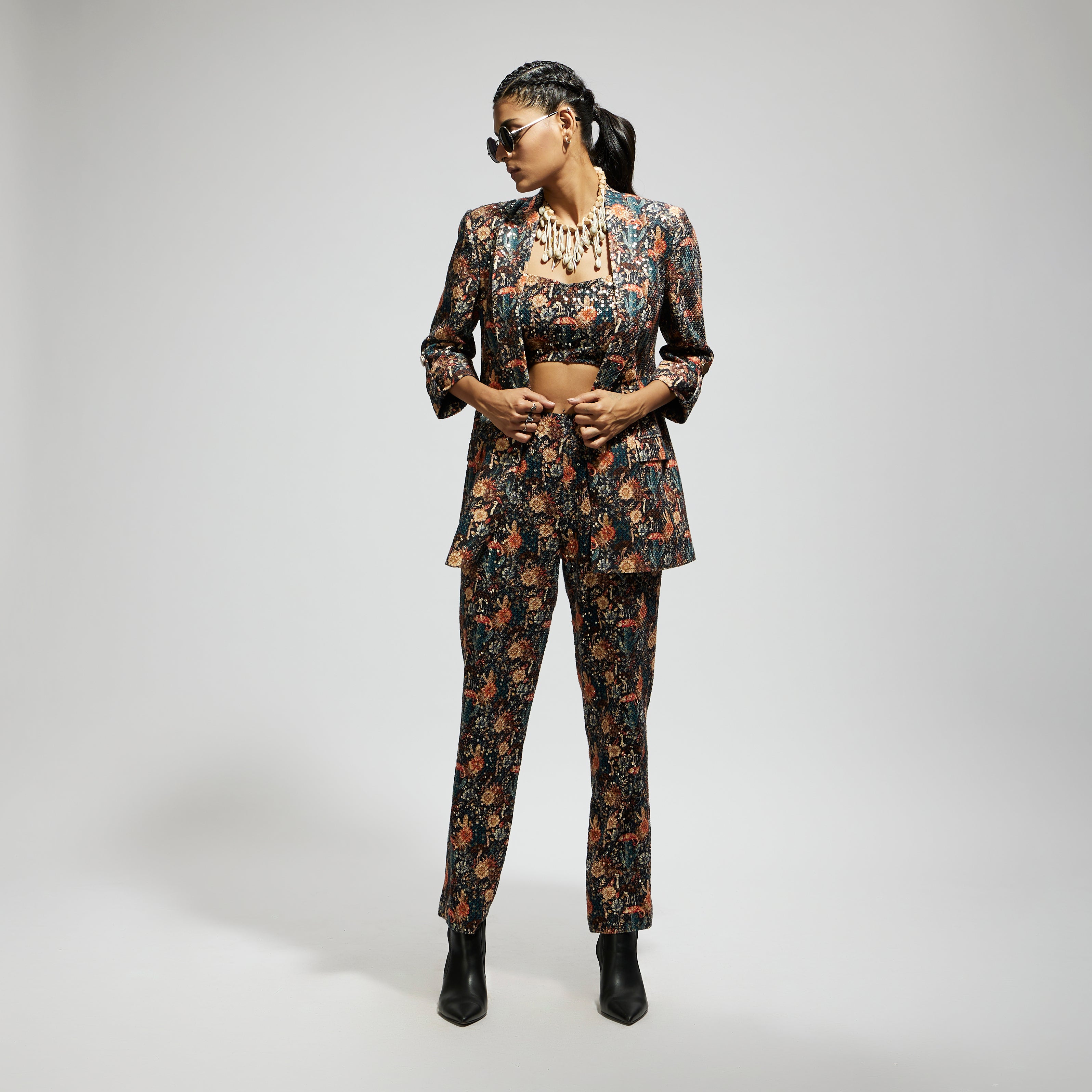 BLACK JAAL EMBELLISHED BLAZER SET