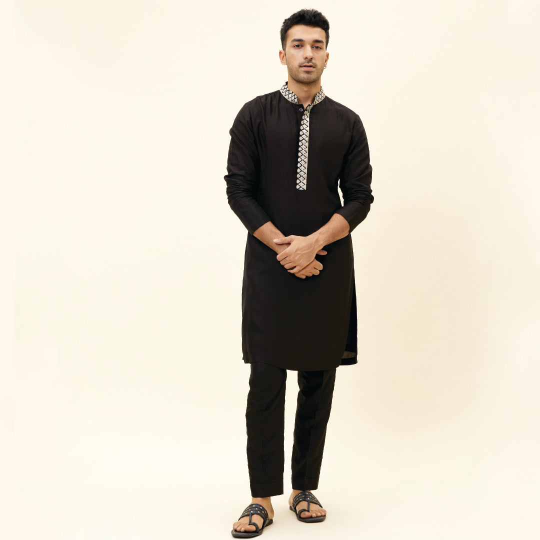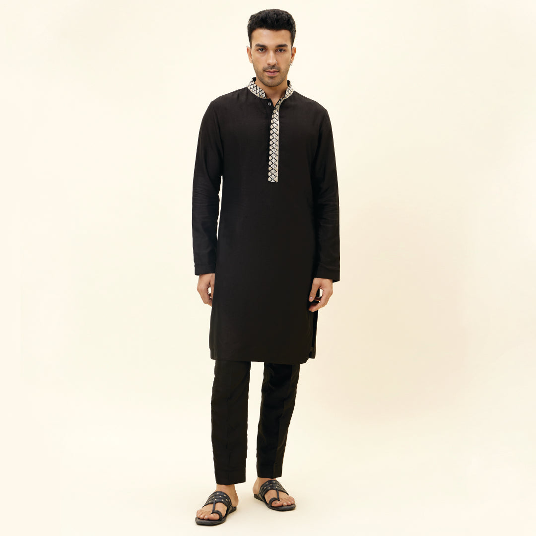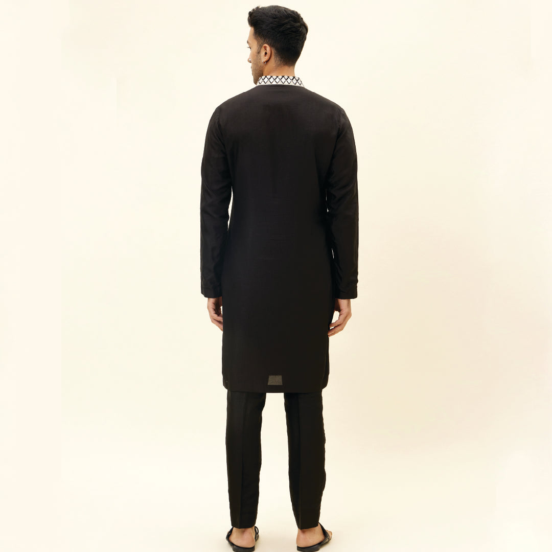 BLACK KURTA WITH EMB ON COLLAR AND KURTA PATTI WITH PANTS