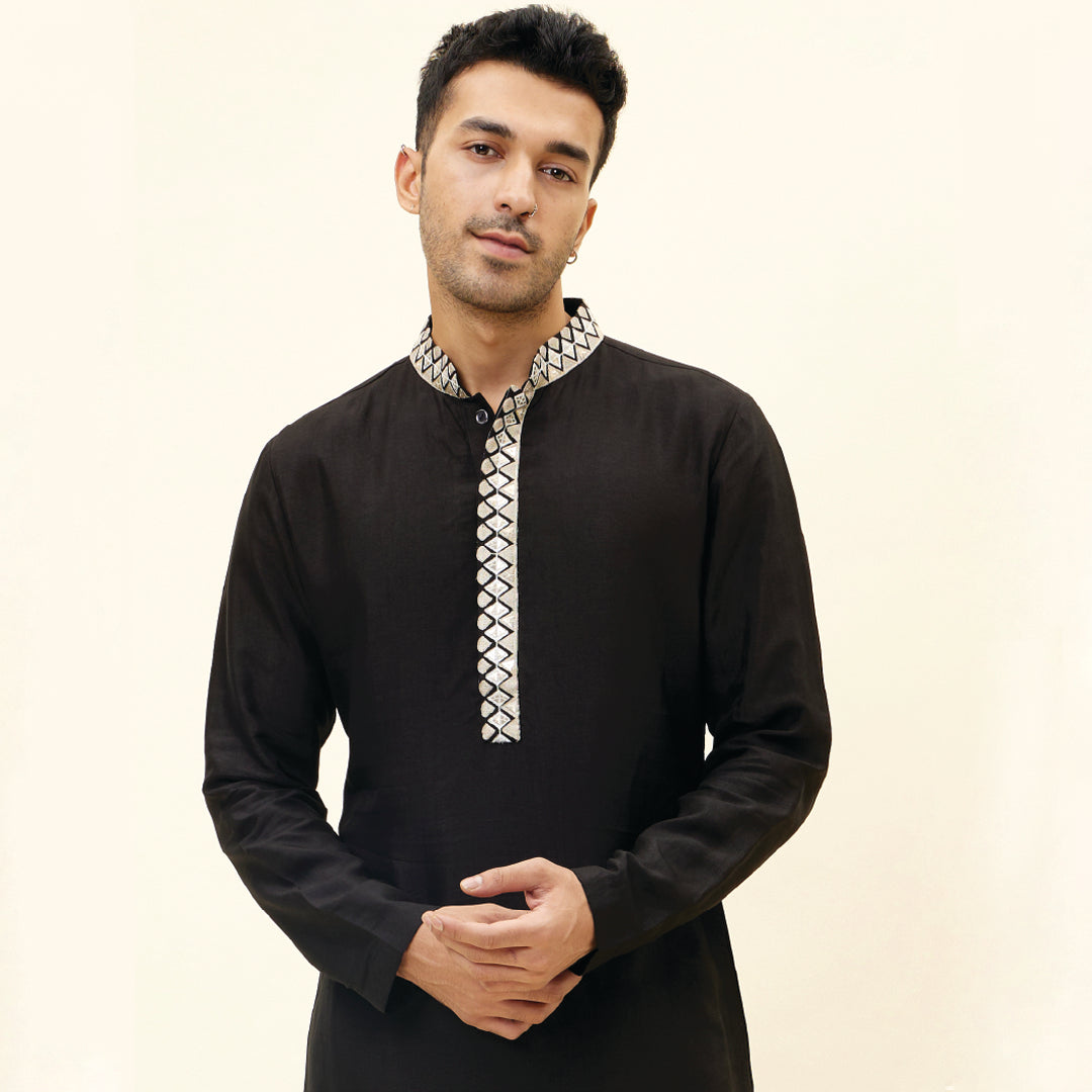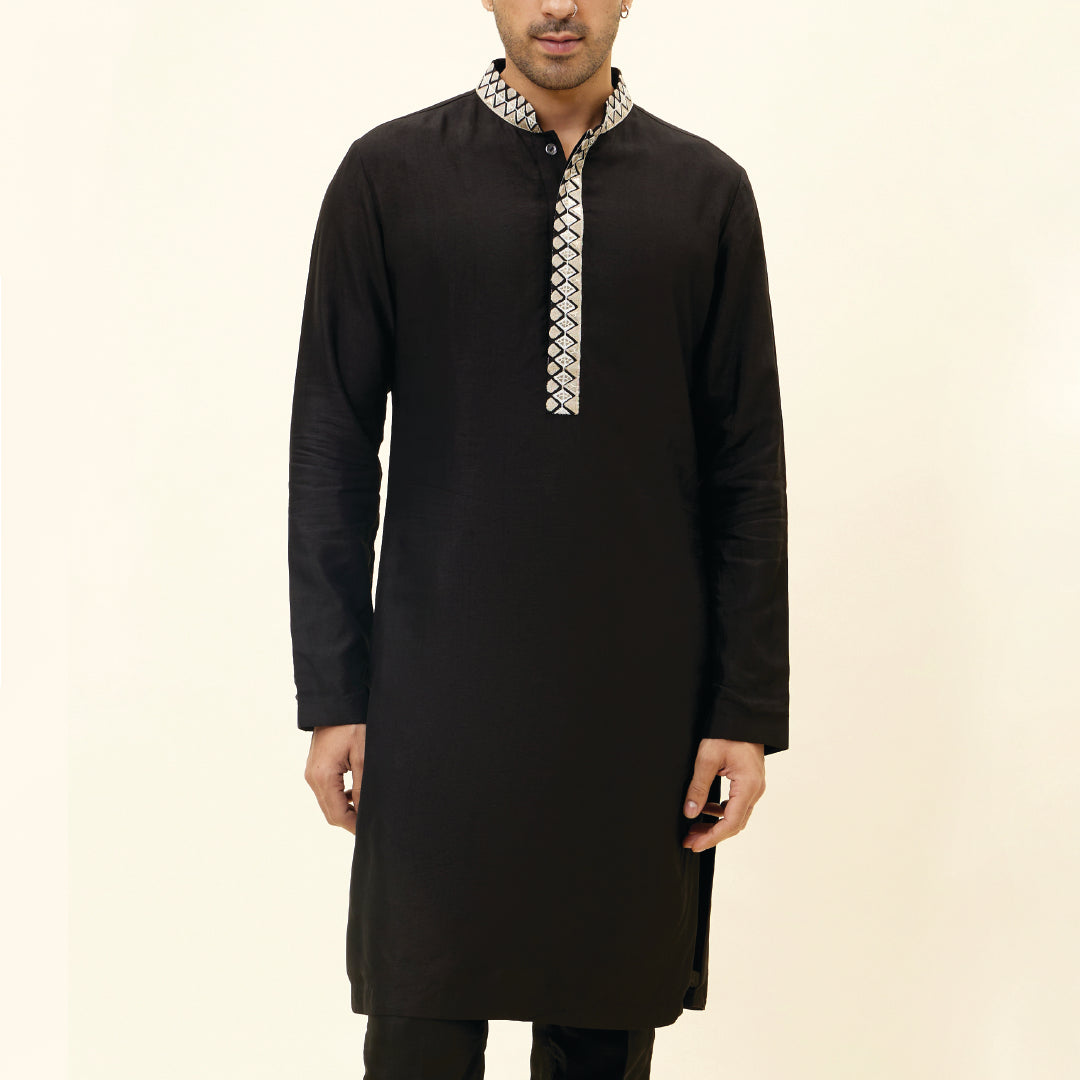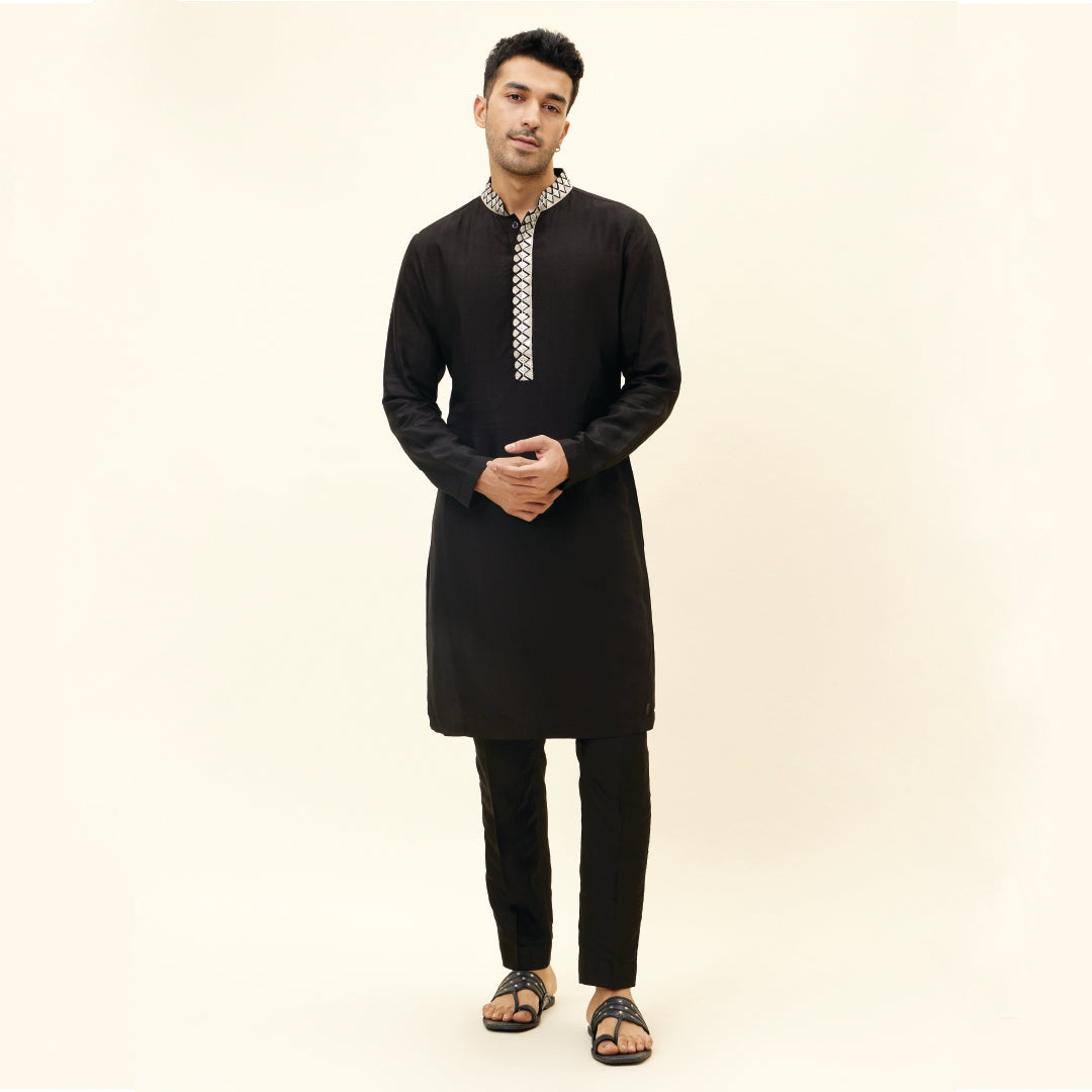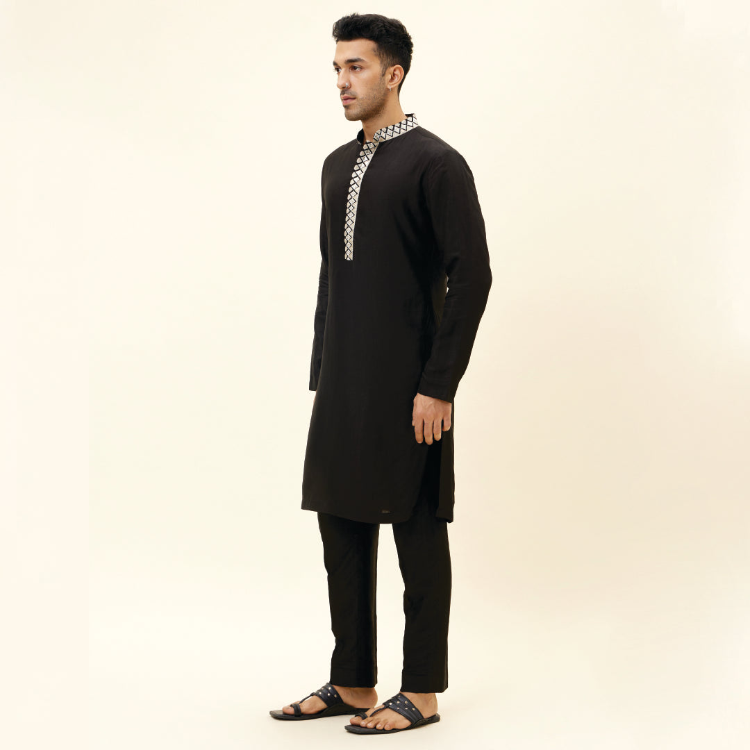 BLACK KURTA WITH EMB ON COLLAR AND KURTA PATTI WITH PANTS