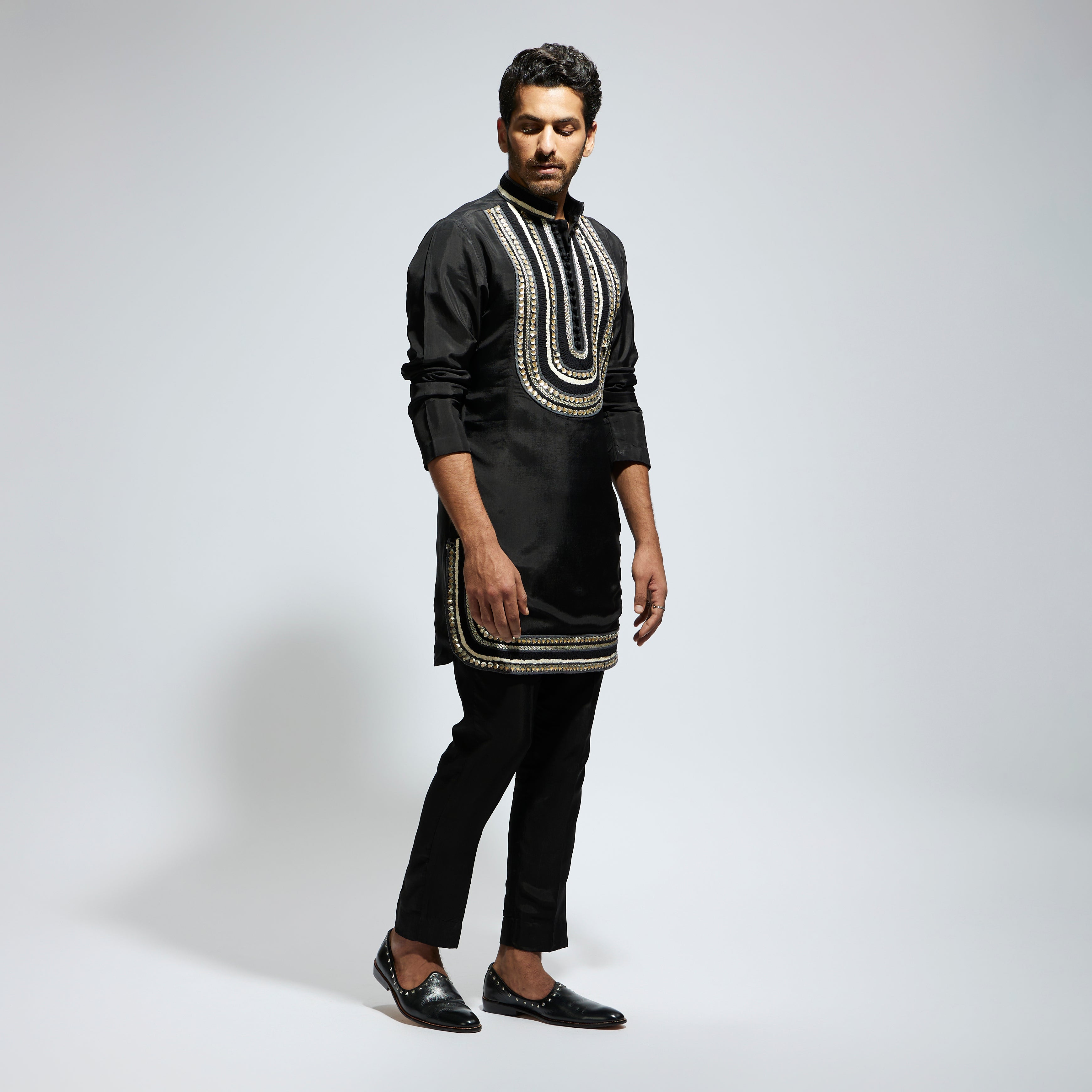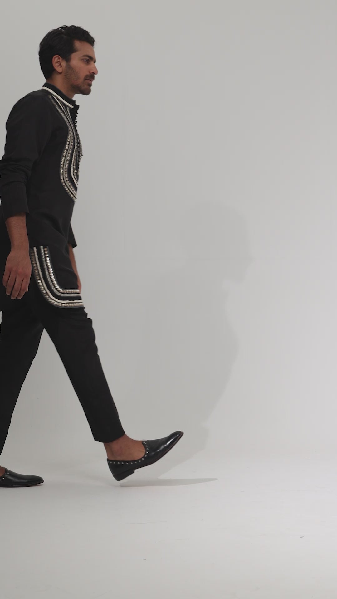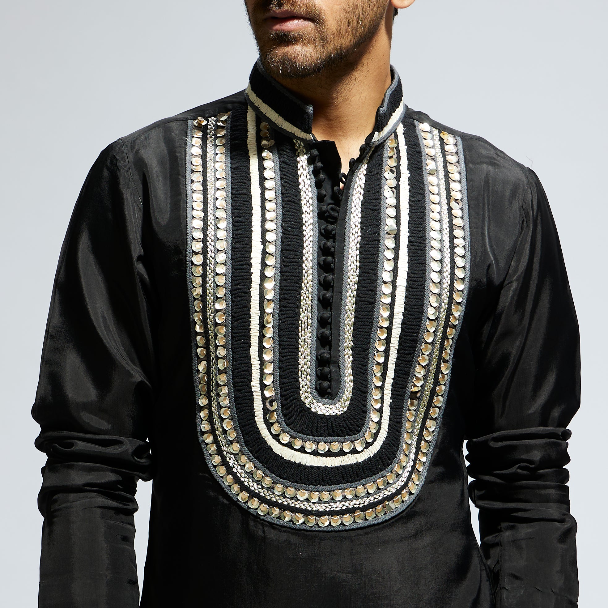 Featuring an black threadwork yoke embroidered kurta with pants, fabric crepe and habutai component 2.