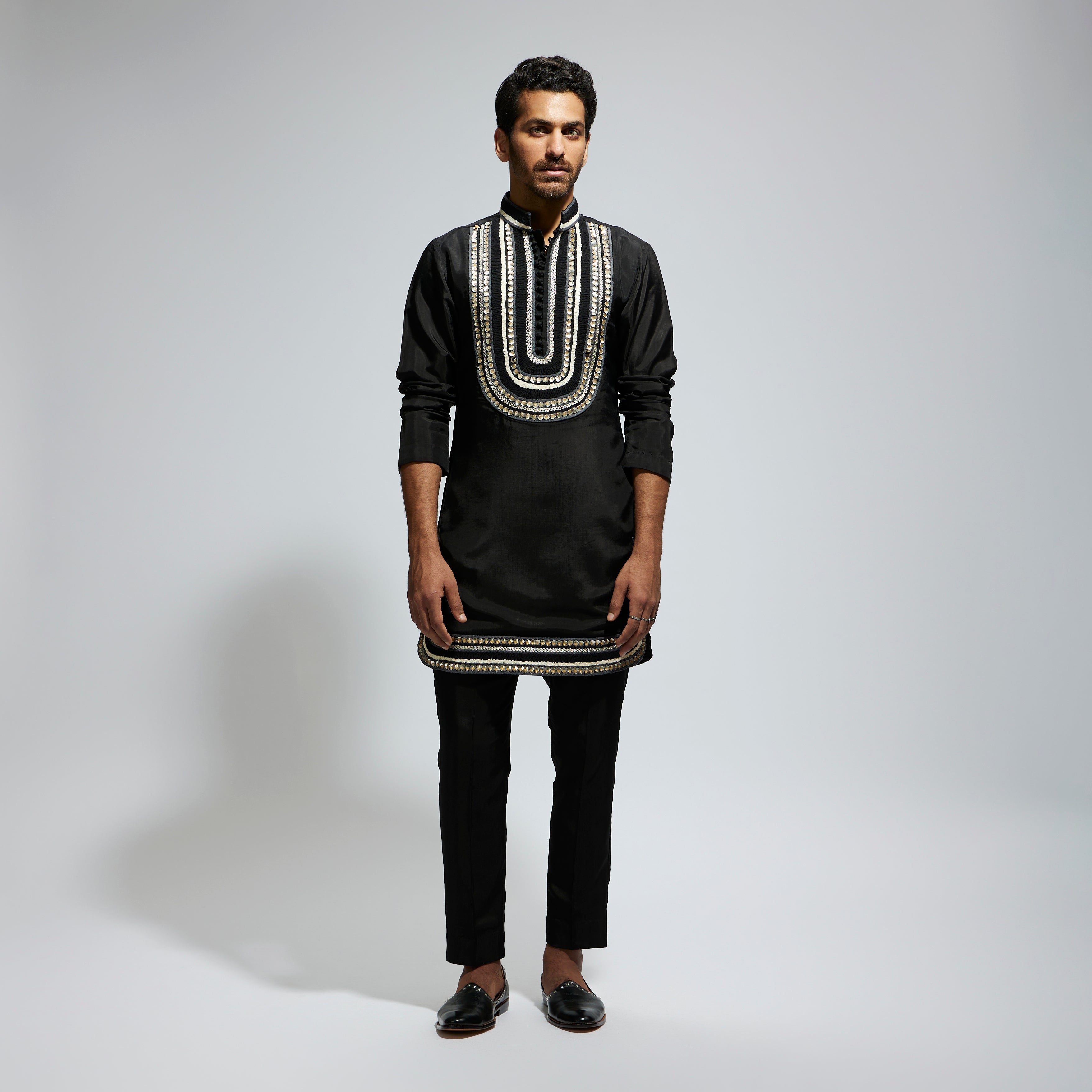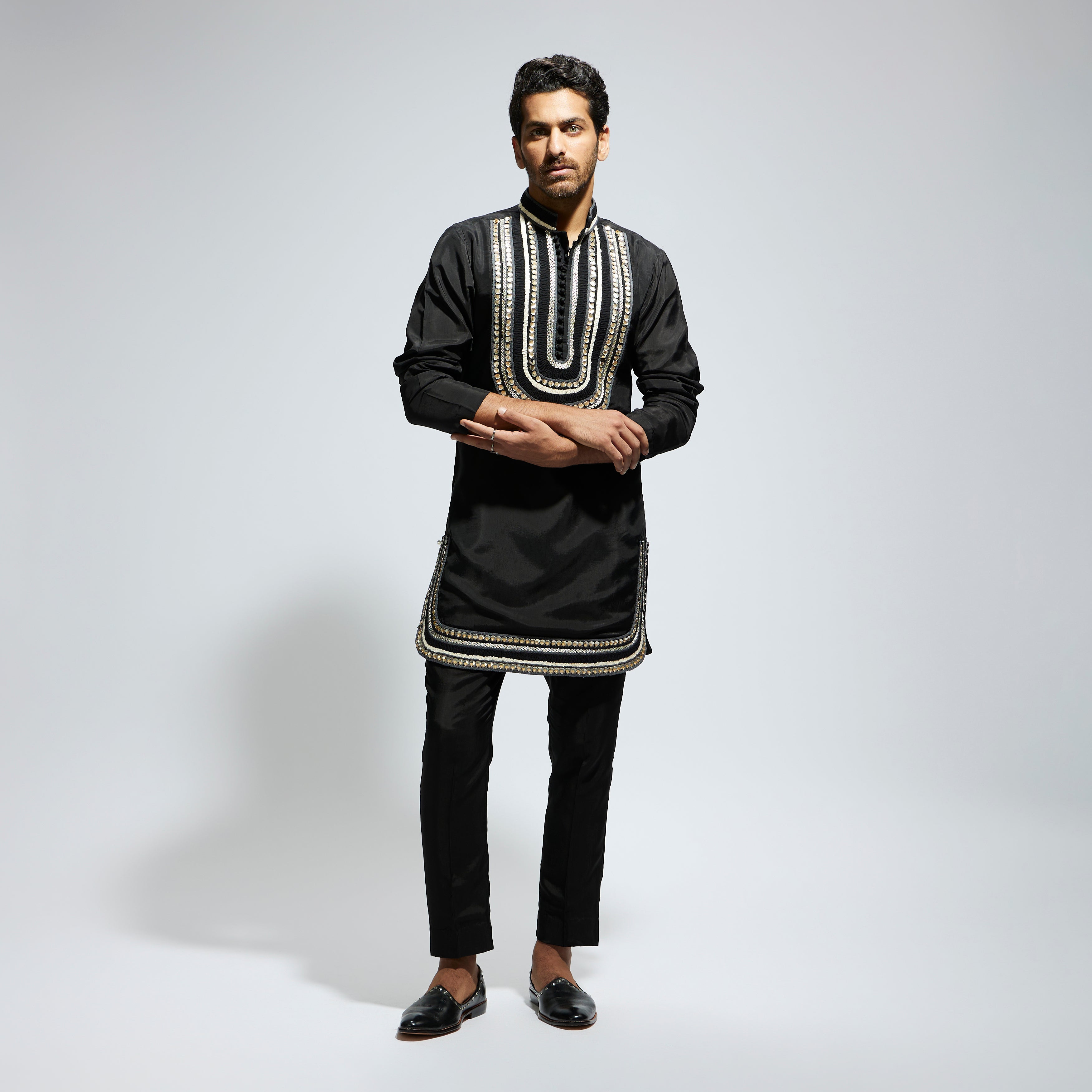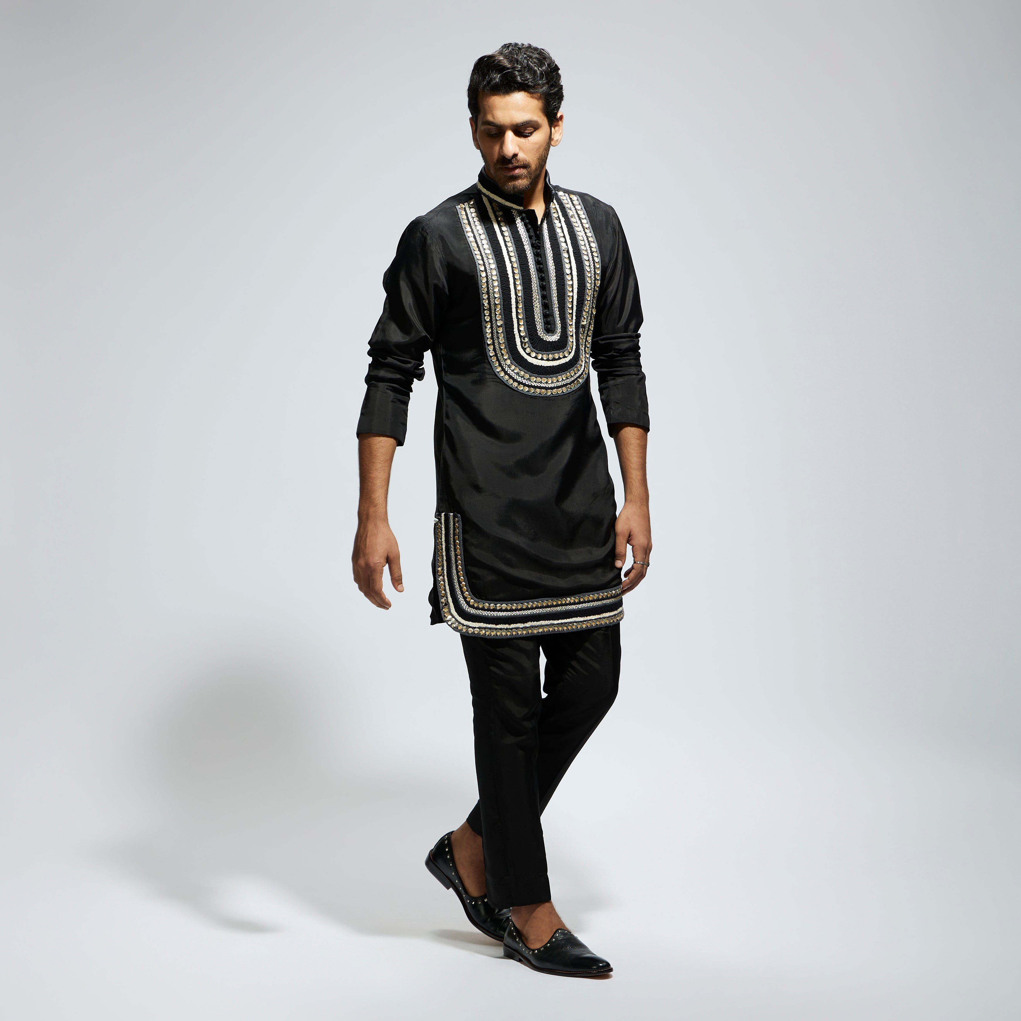 Featuring an black threadwork yoke embroidered kurta with pants, fabric crepe and habutai component 2.