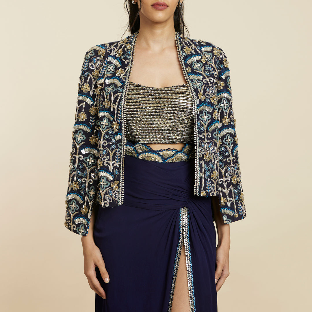 BLUE ART DECO EMBELLISHED NOOR JACKET SET