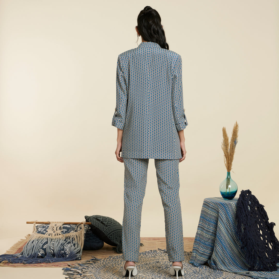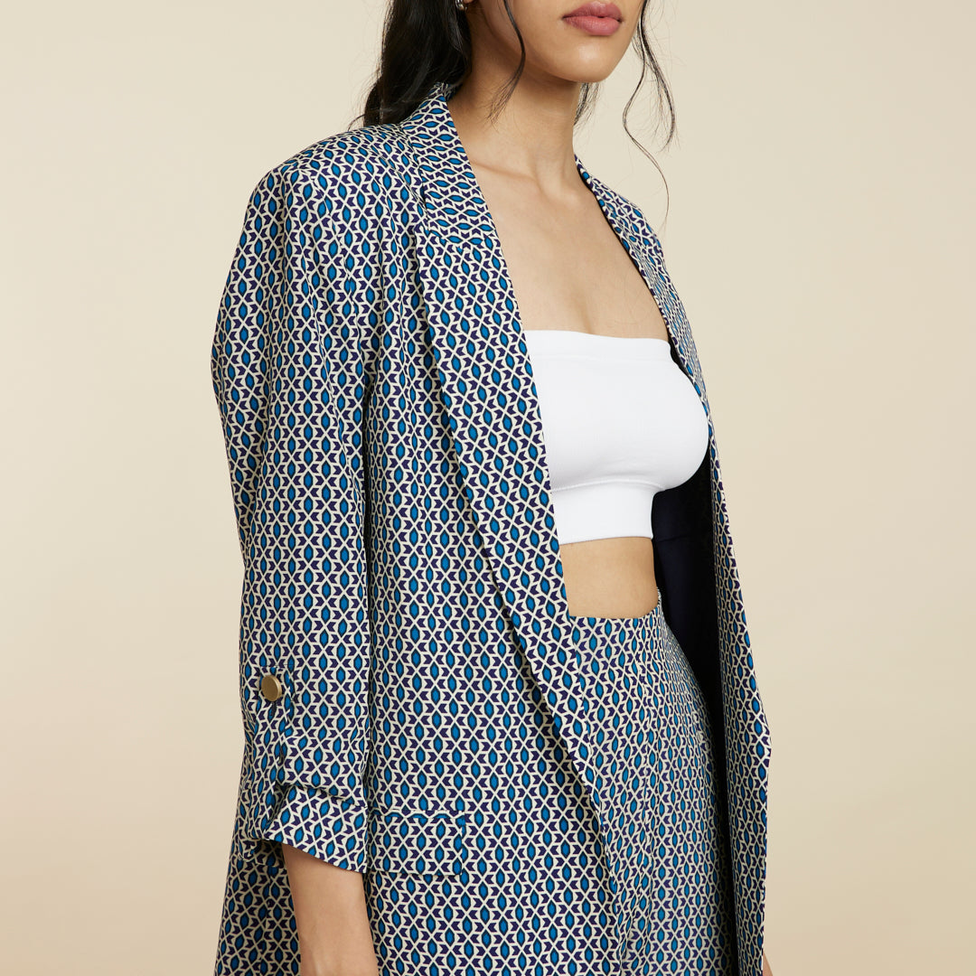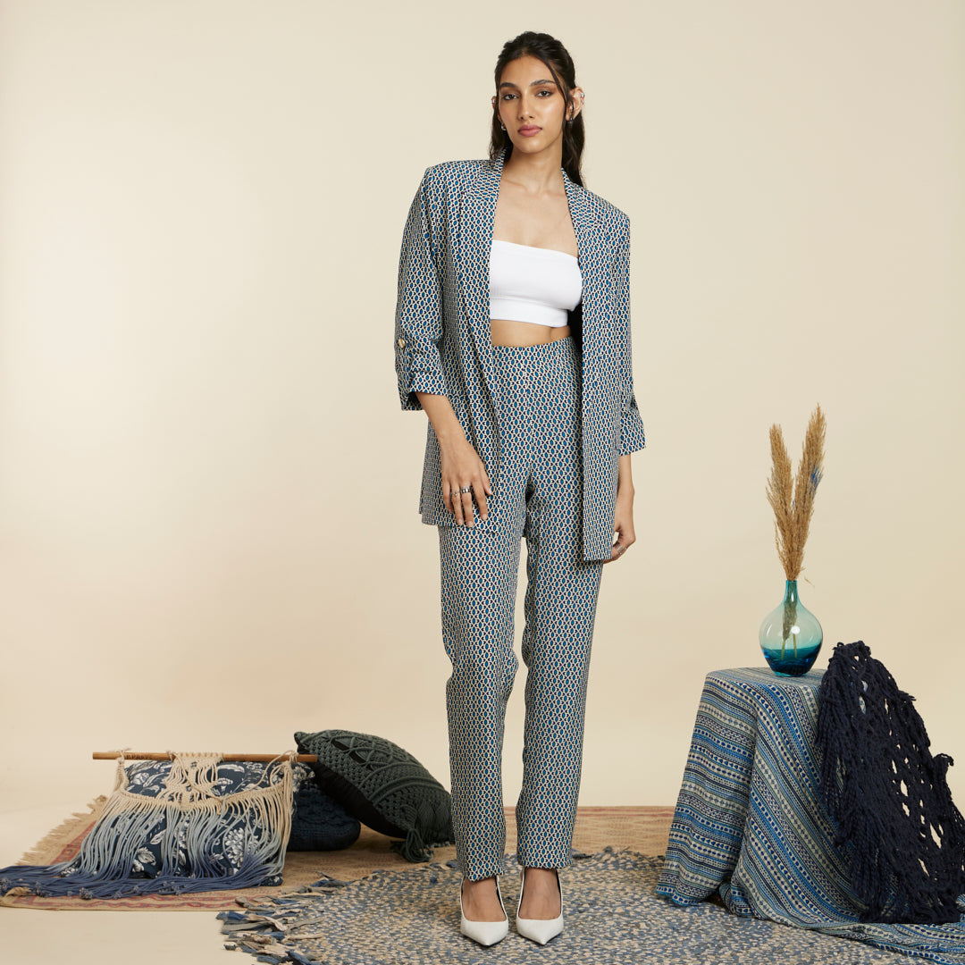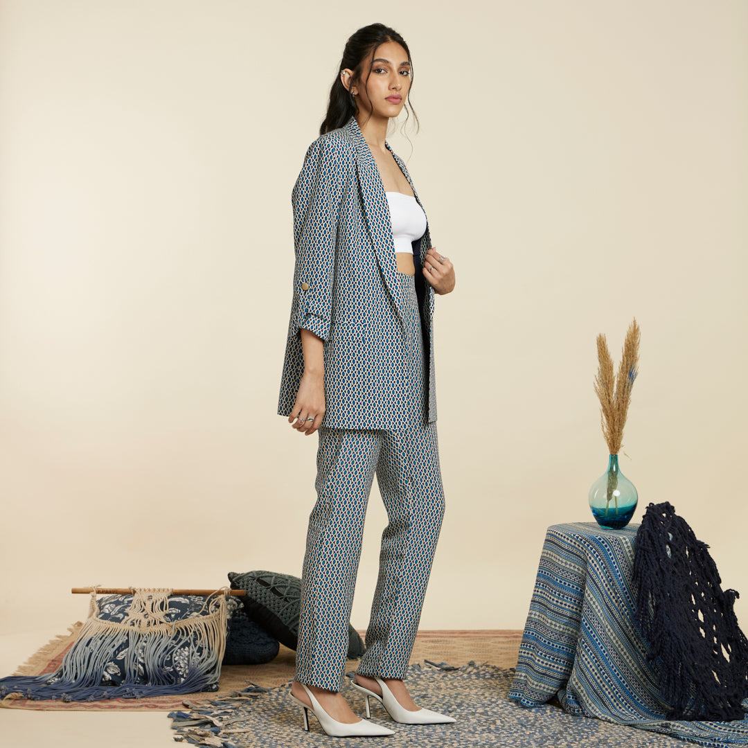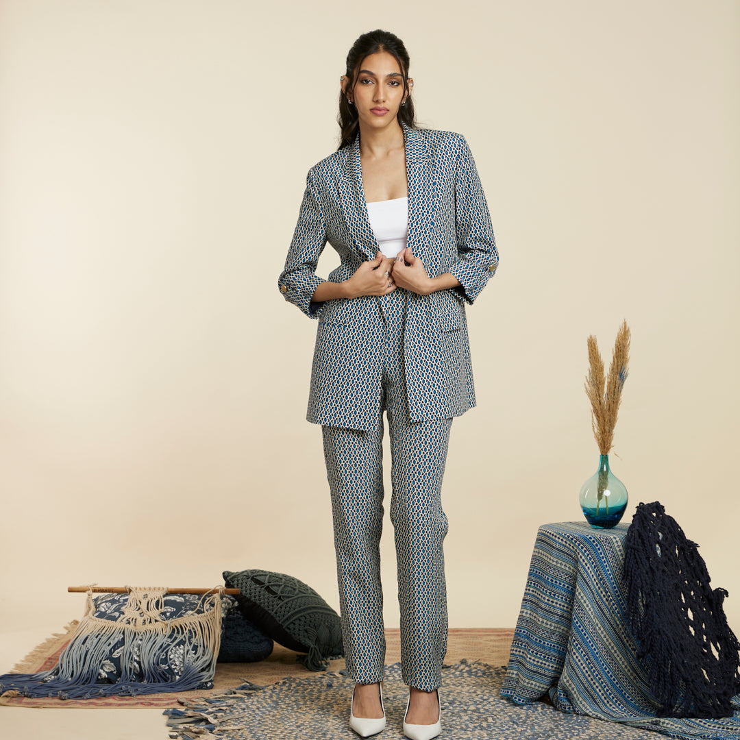 BLUE BOHO STRIPE PRINT STRIPE PRINT BLAZER SET