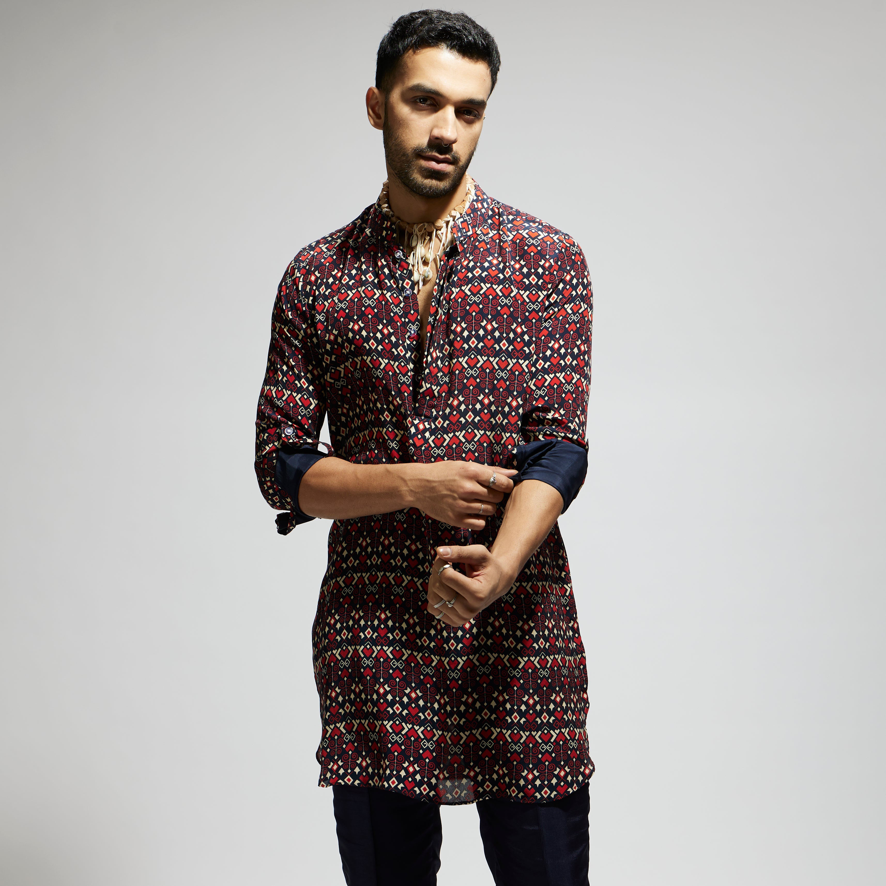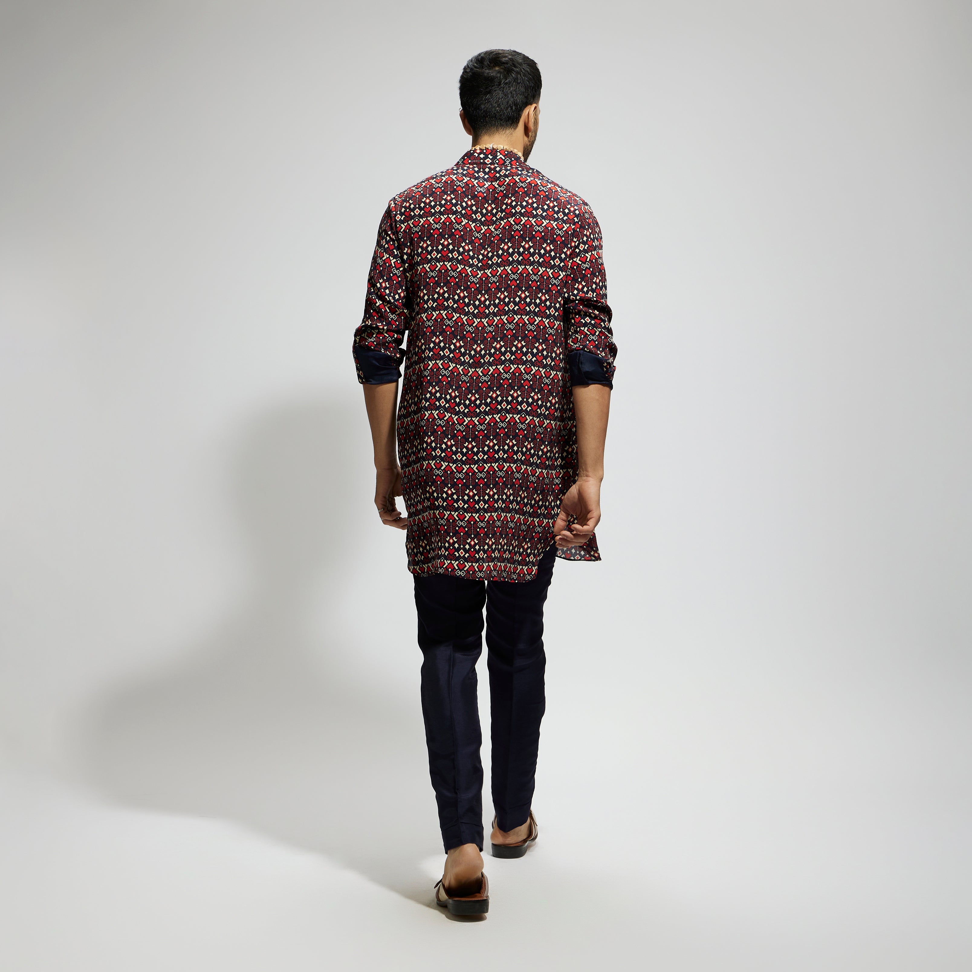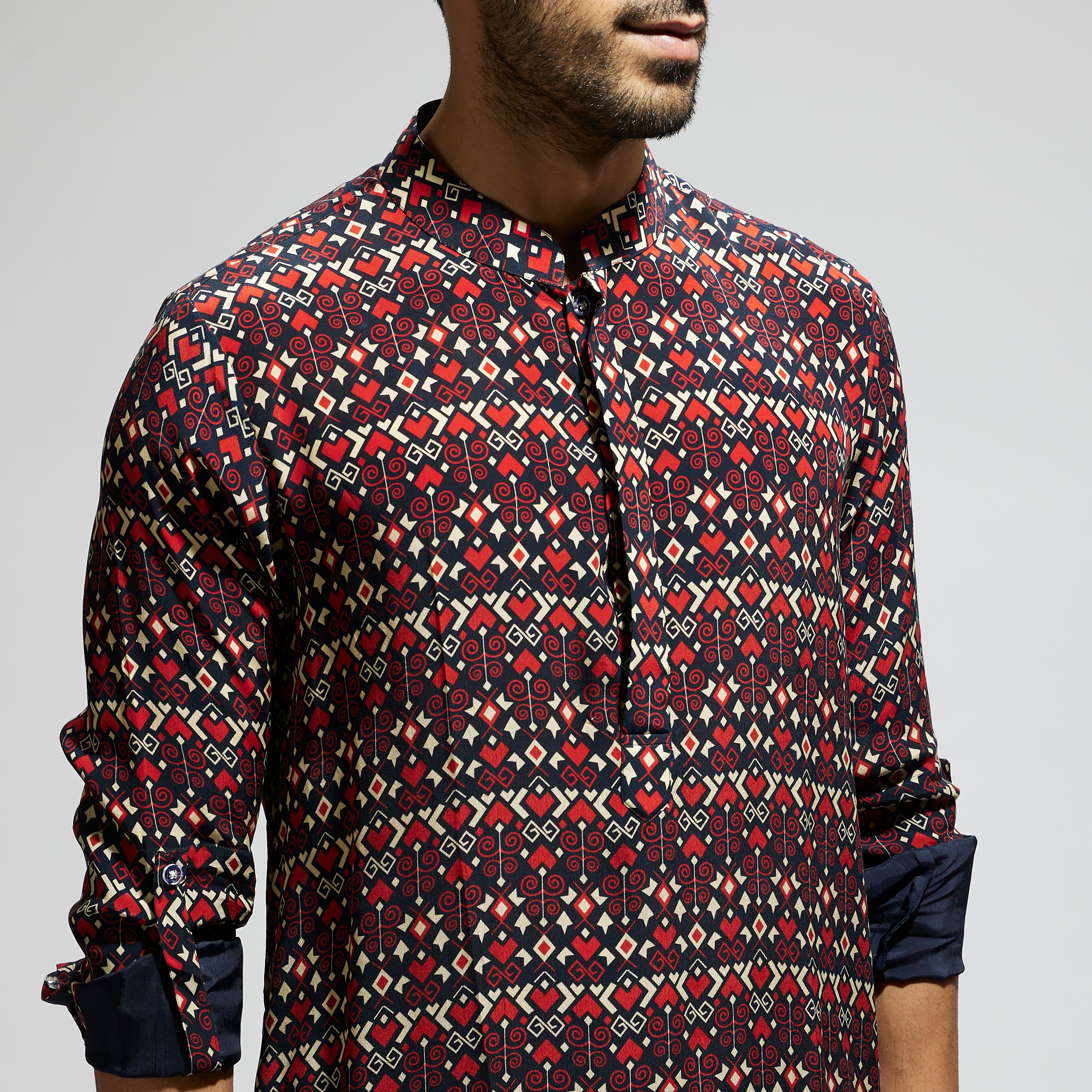 BLUE GEO PRINT ROLLED UP SLEEVES KURTA
