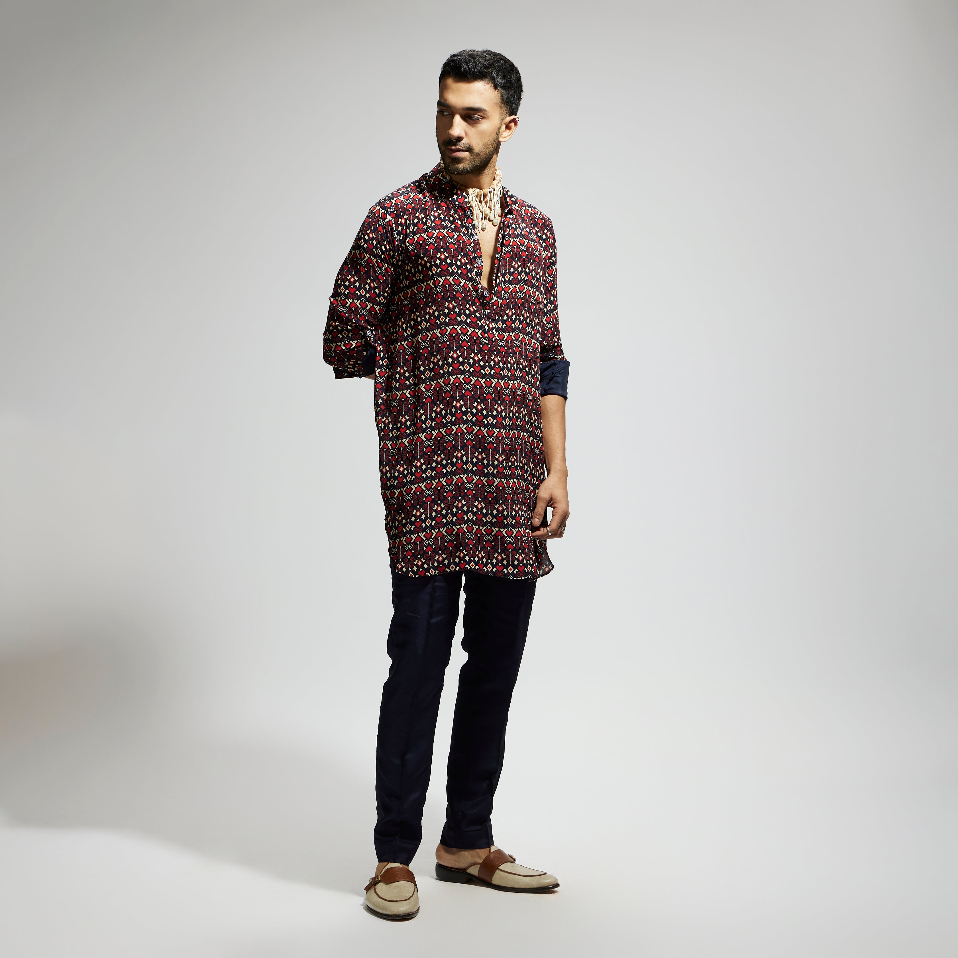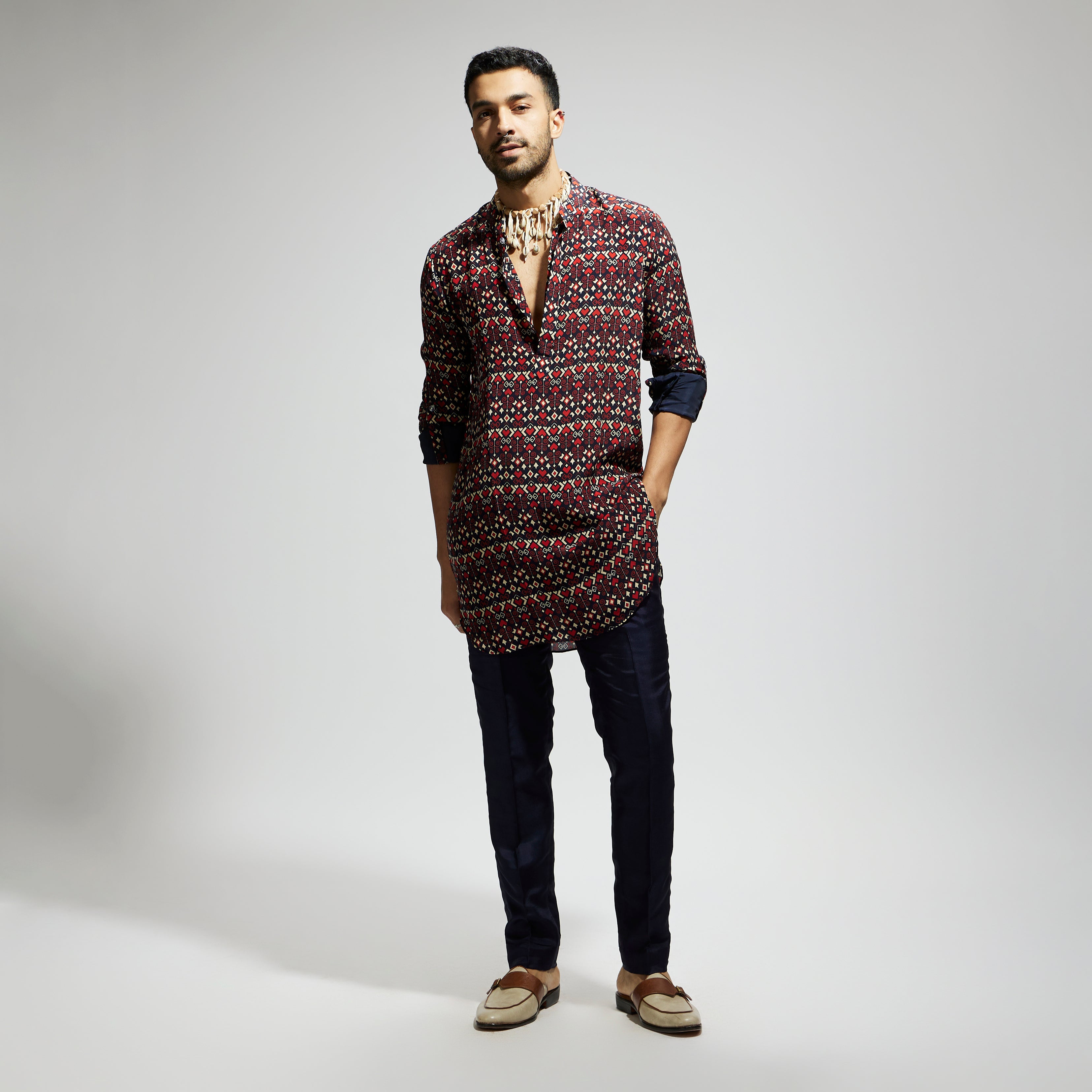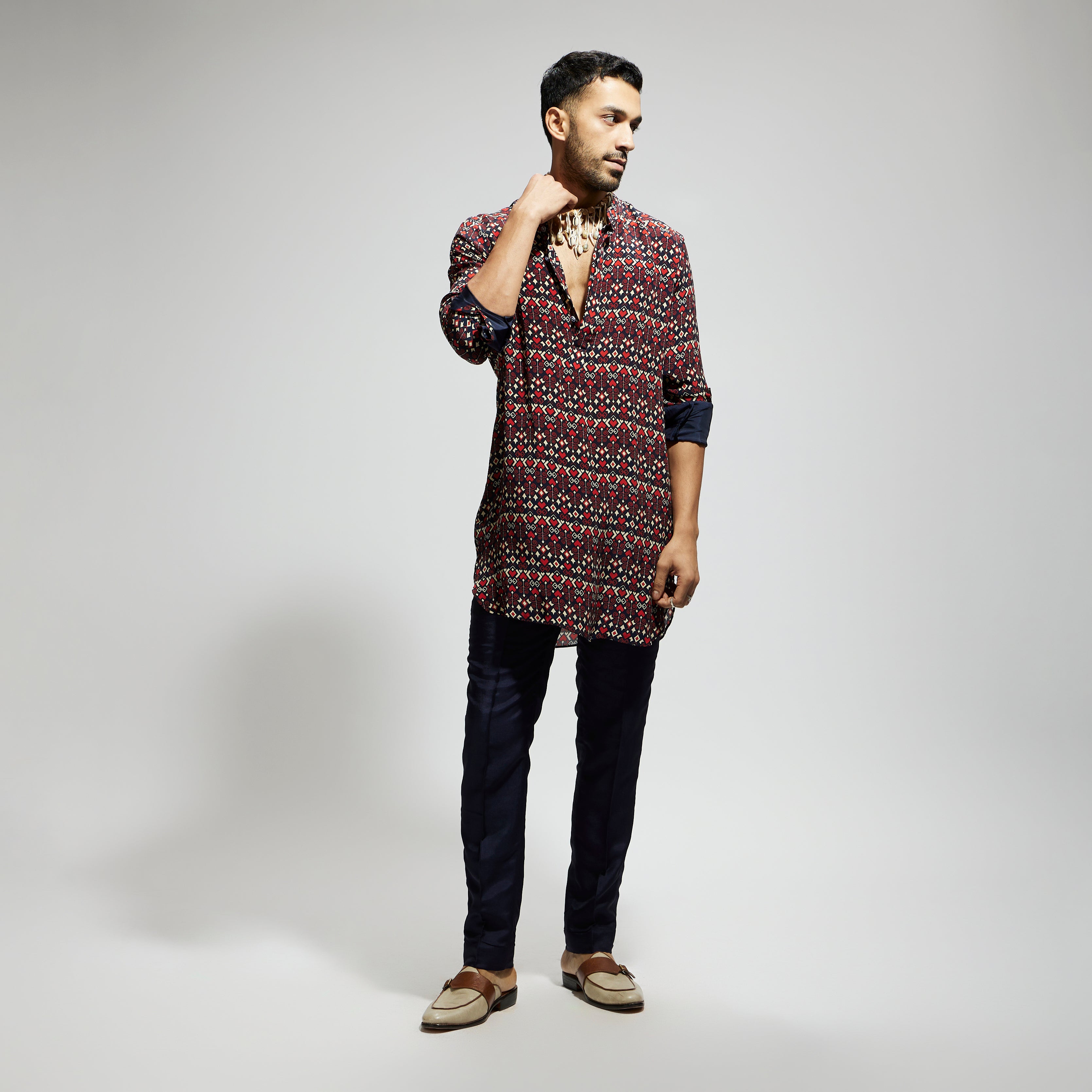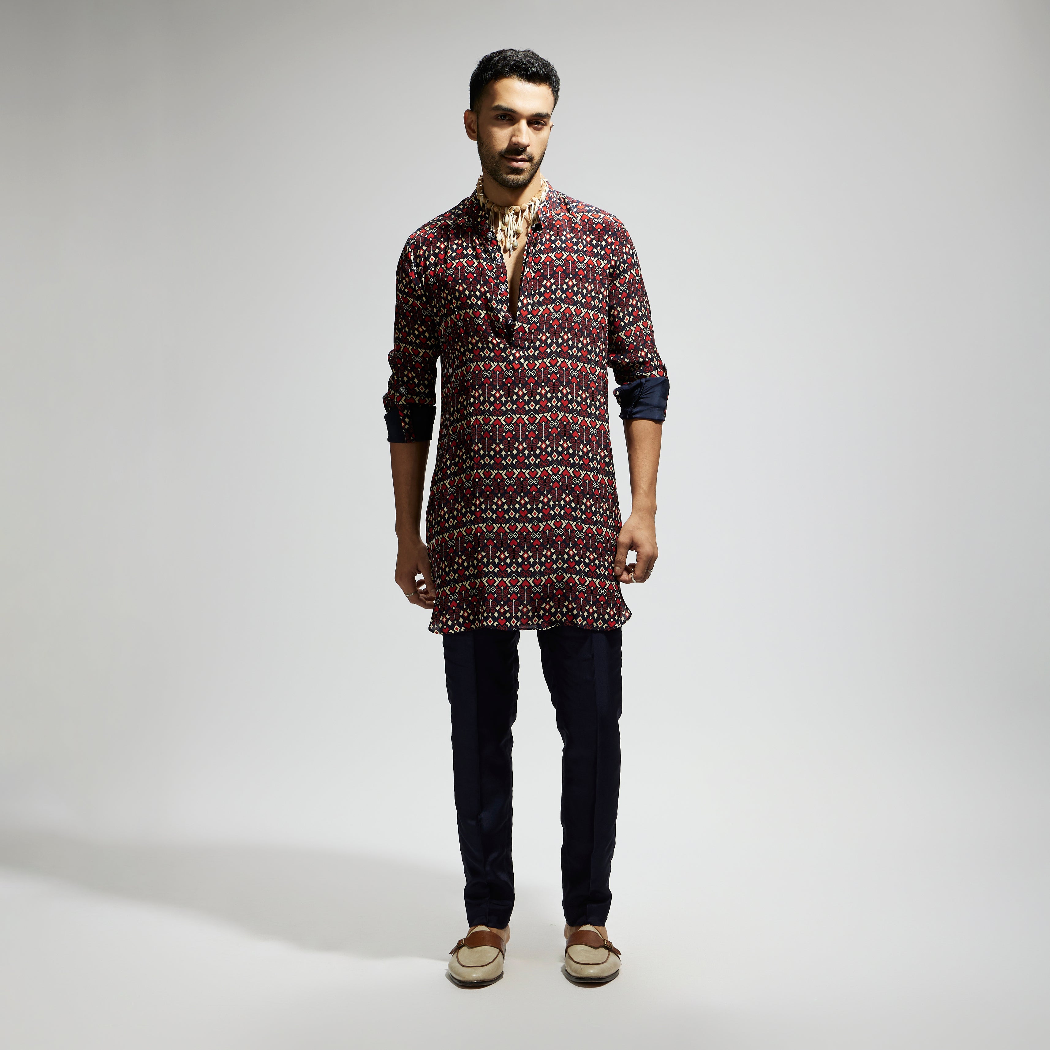 BLUE GEO PRINT ROLLED UP SLEEVES KURTA