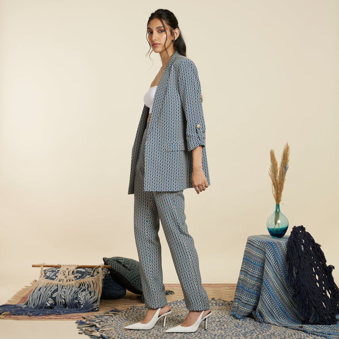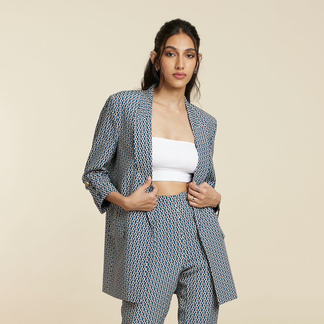 BLUE GEOMETRIC PRINT BLAZER SET