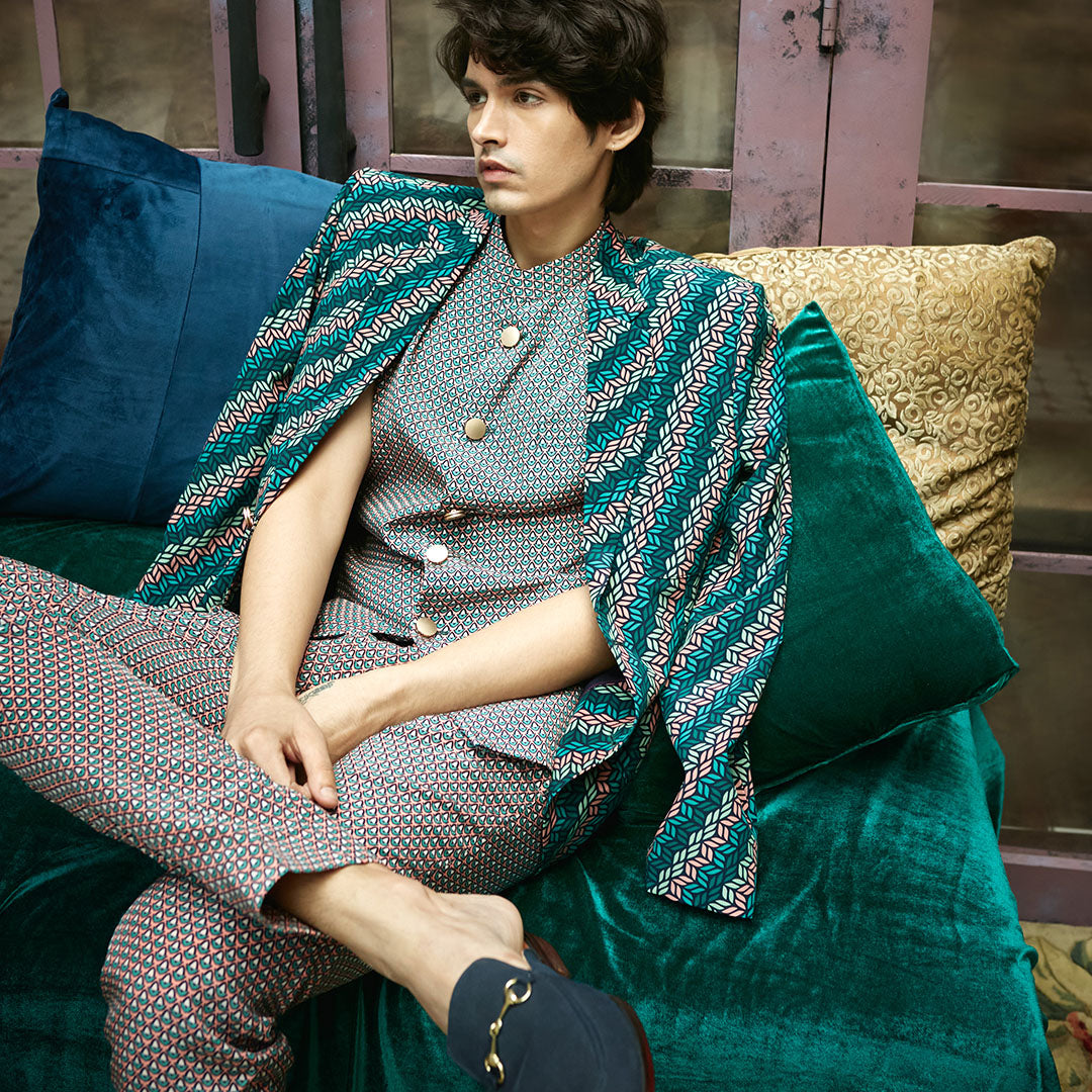 BLUE LEAF PRINTED BLAZER JACKET