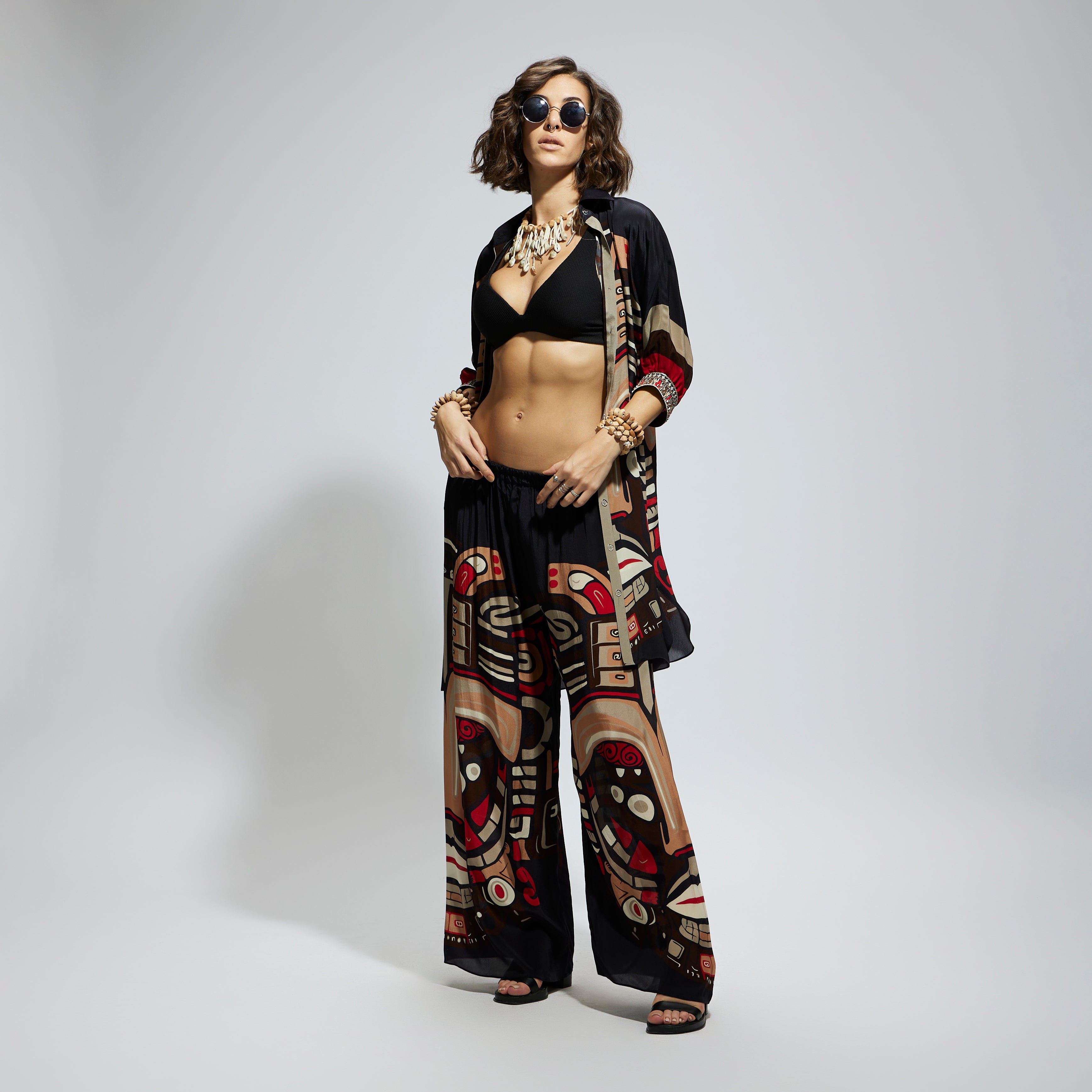 BLACK MASK PRINT OVERSIZED COORD SET