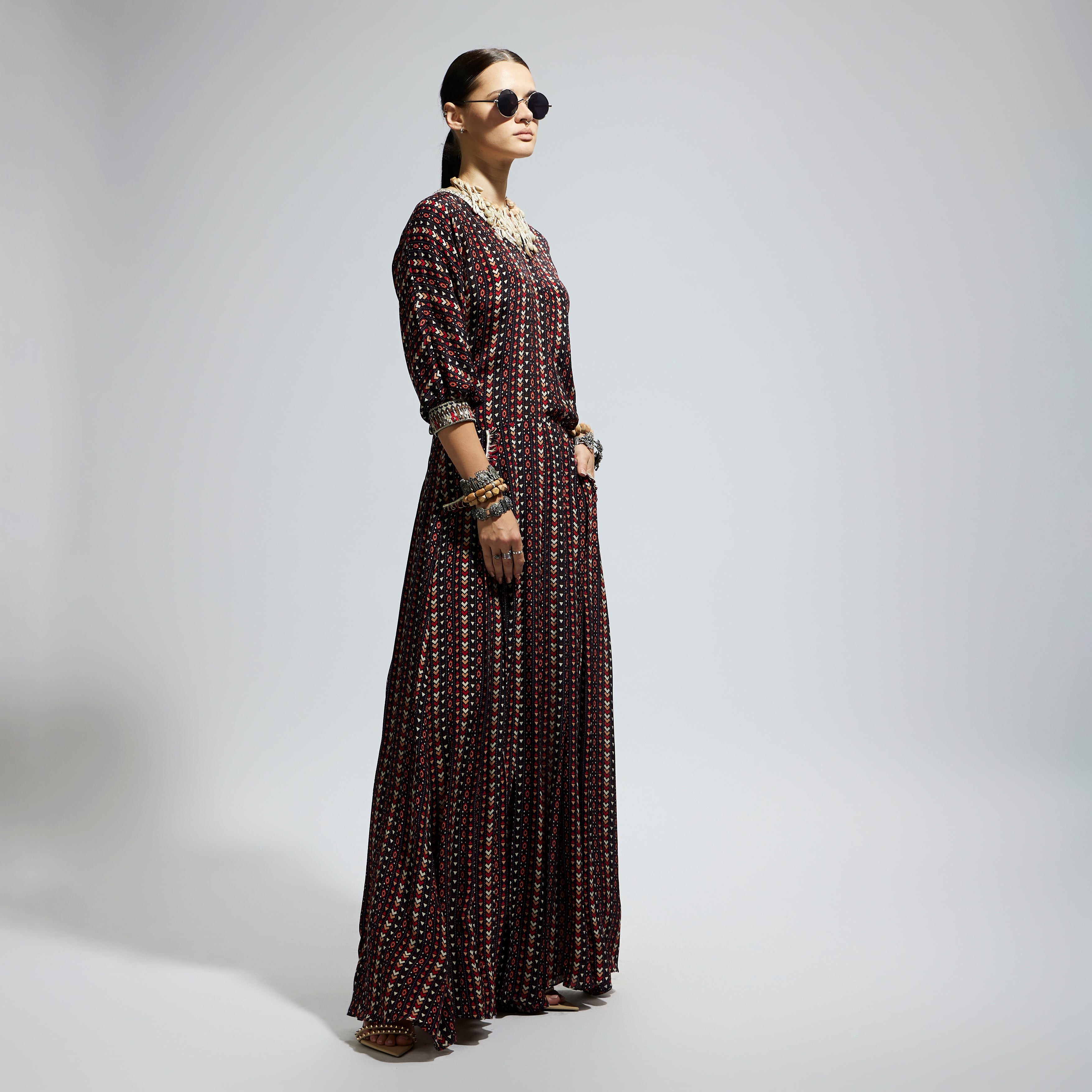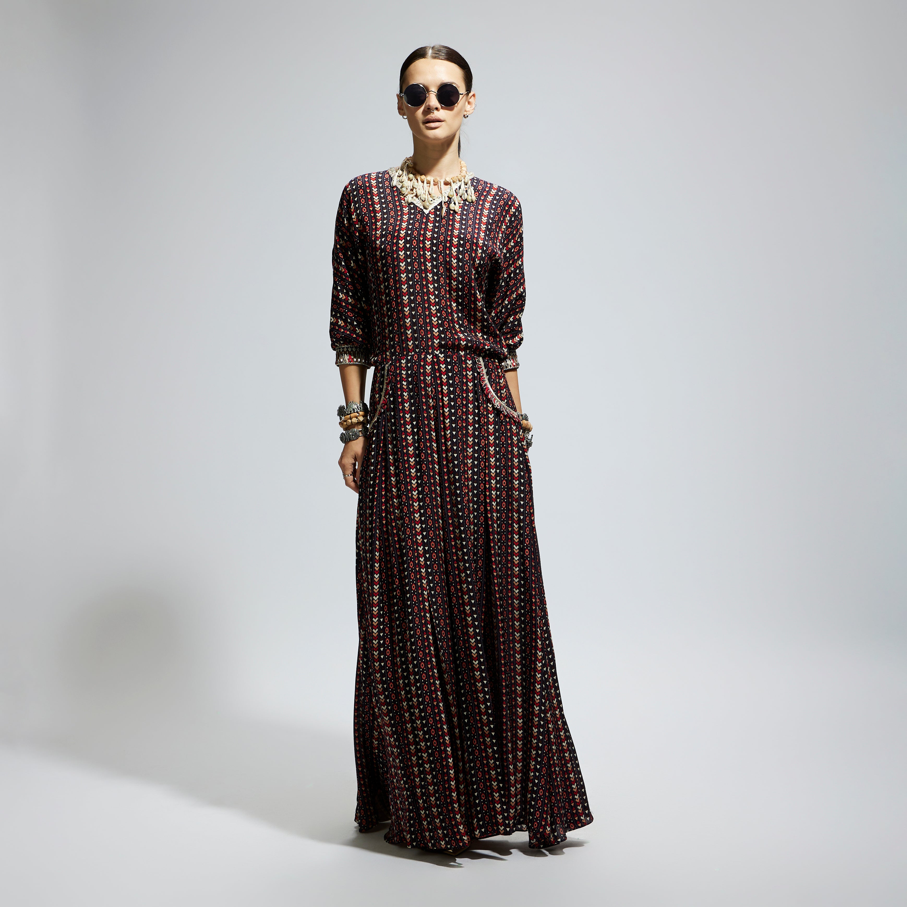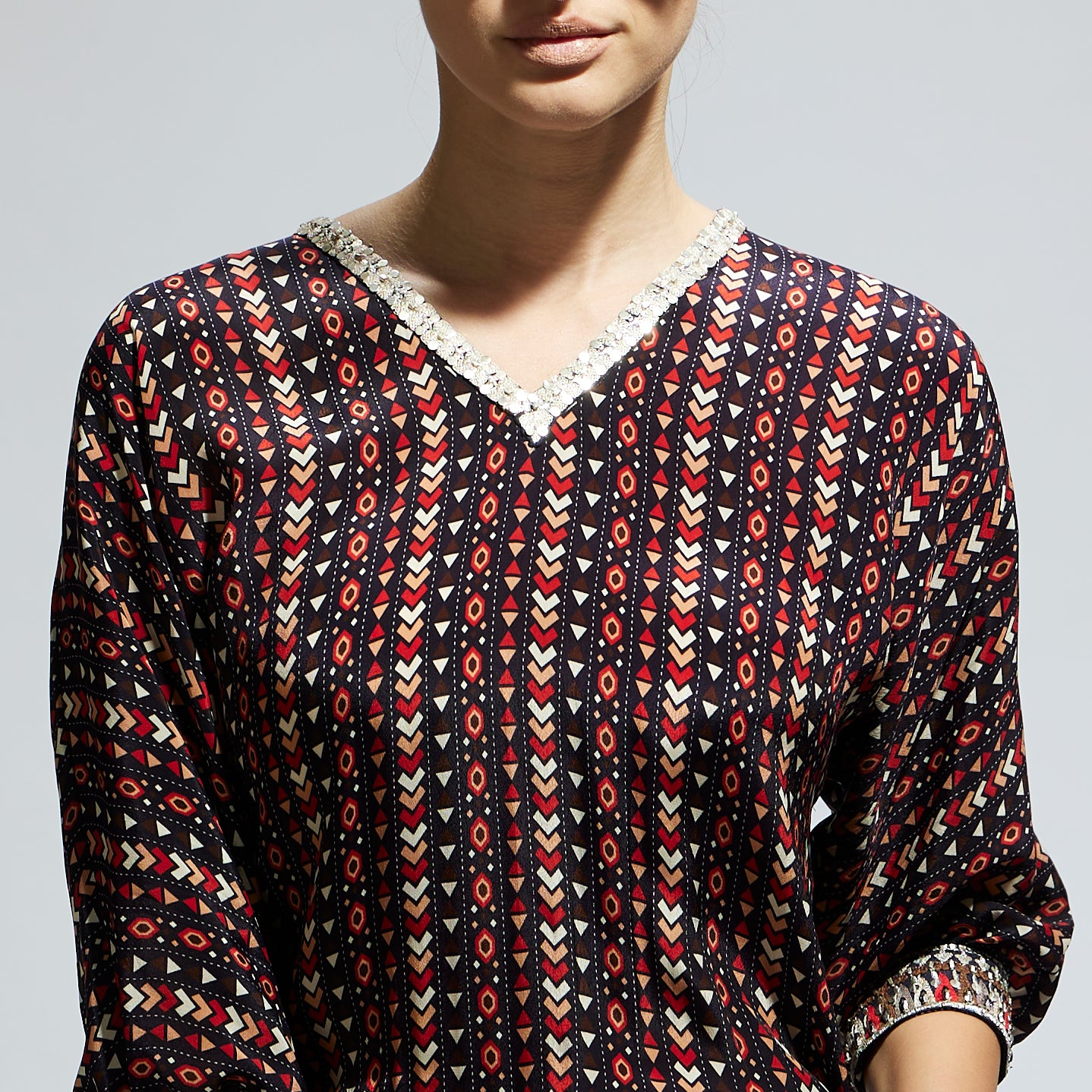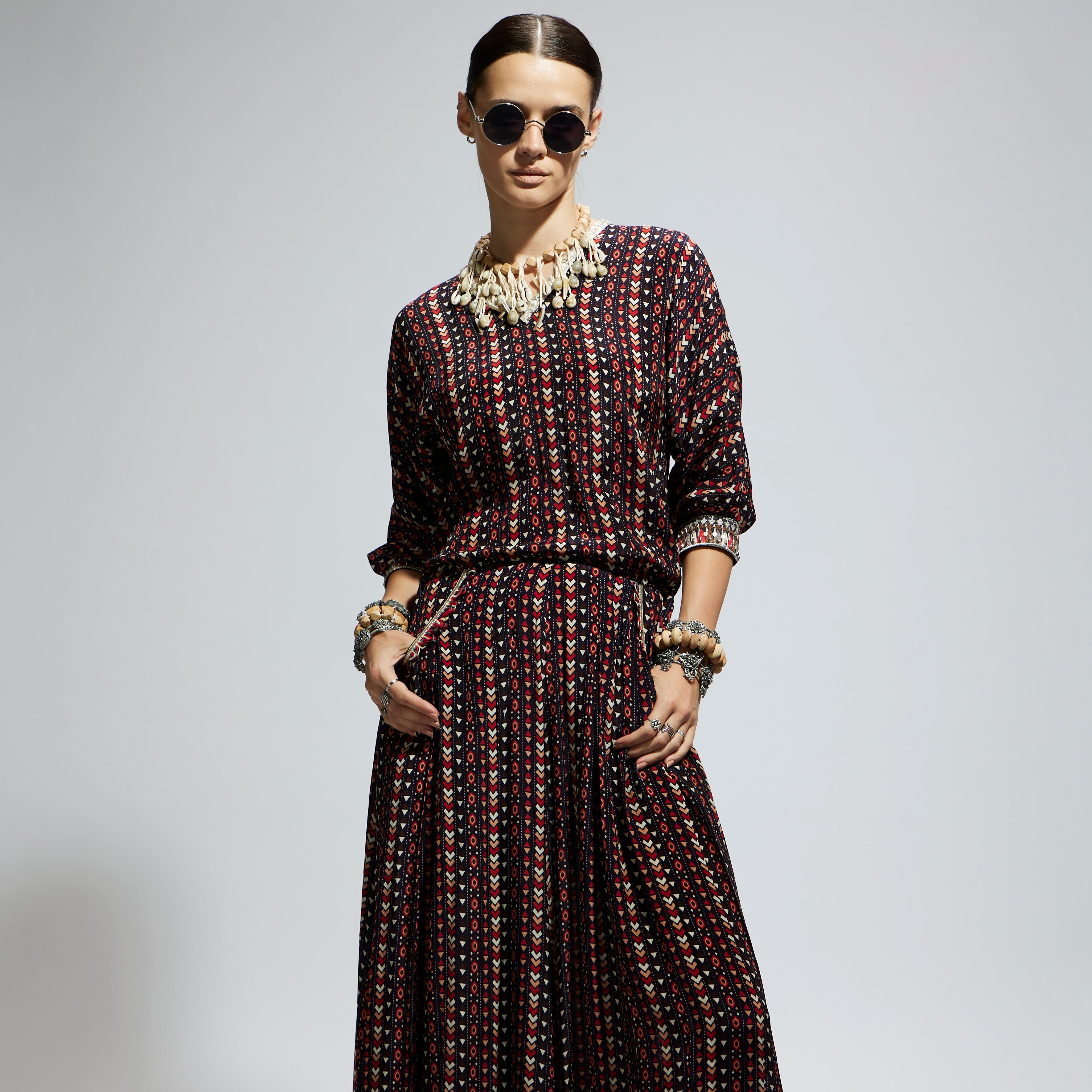 Featuring a blue printed dolman sleeves jumpsuit, crepe fabric, and component 1.