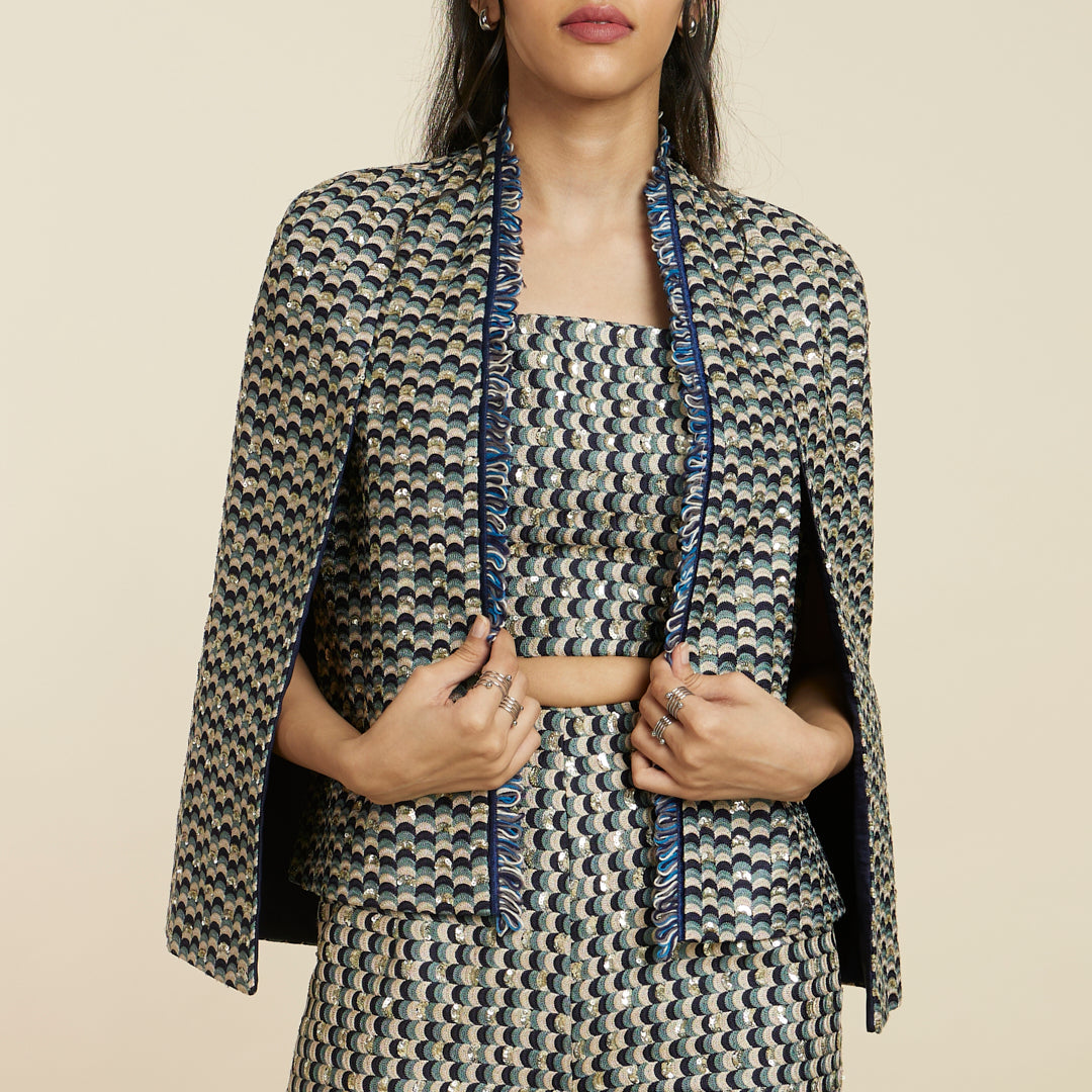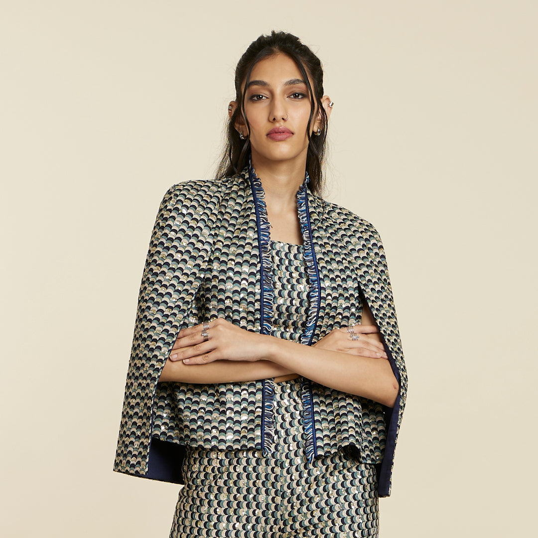 BLUE SCALLOP EMBROIDERED NOOR JACKET SET