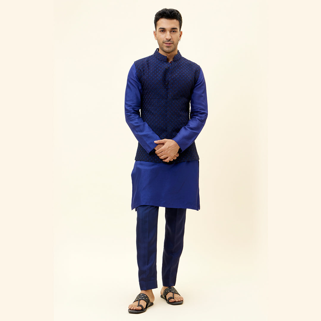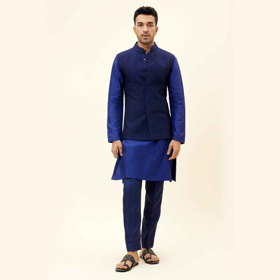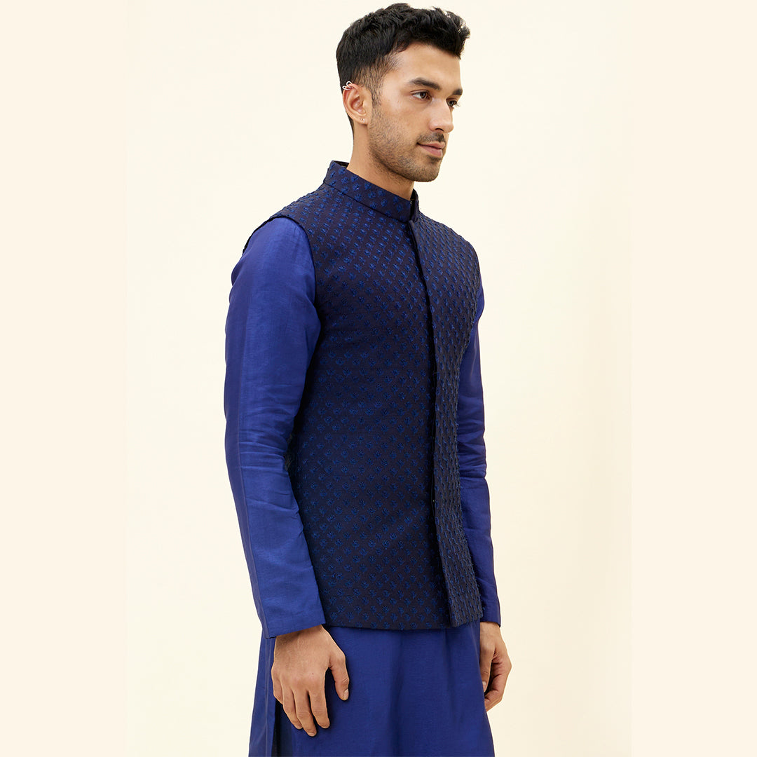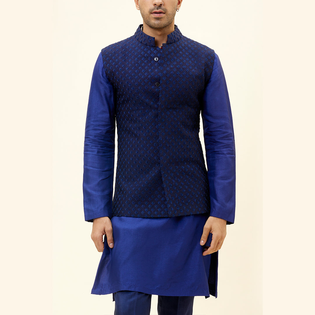 BLUE SELF THREAD EMBROIDERED BUNDI