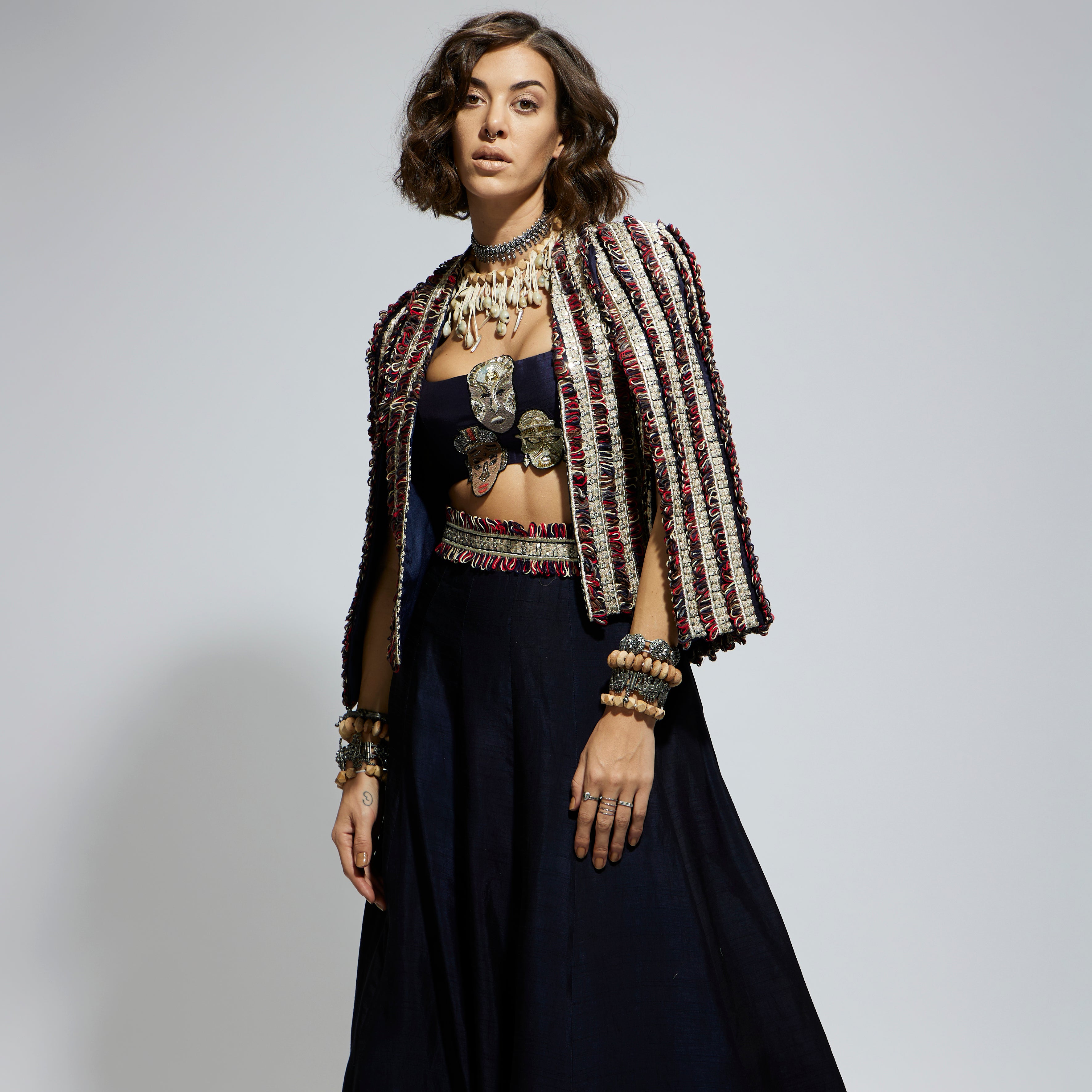 BLUE TEXTURED EMBELLISHED NOOR JACKET
