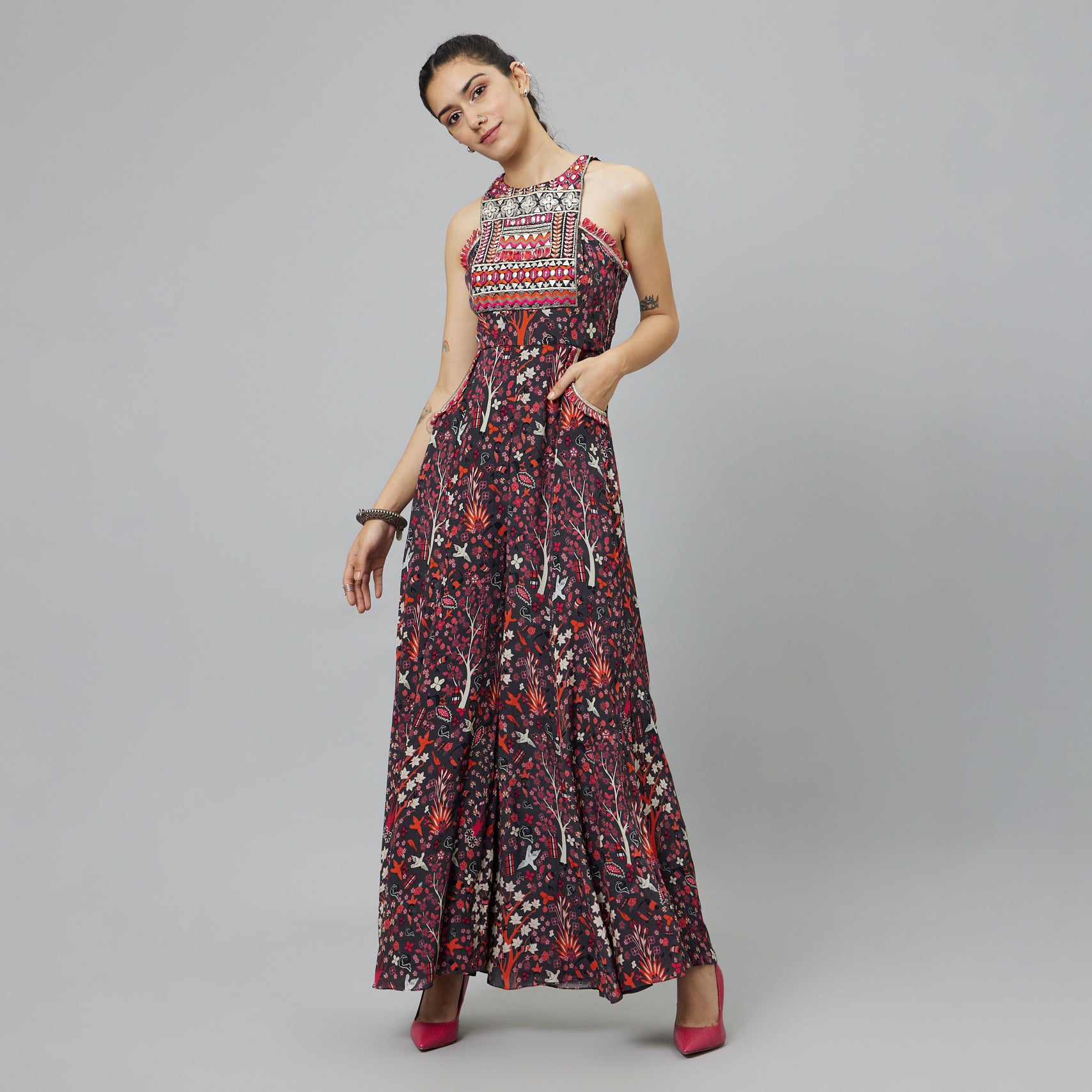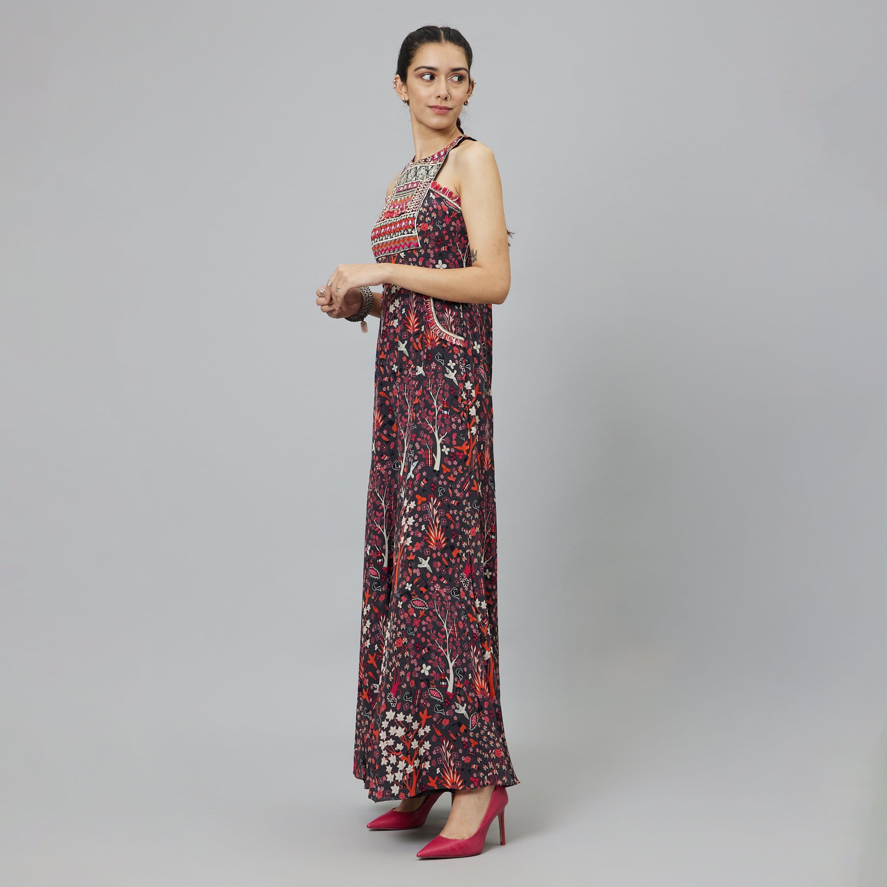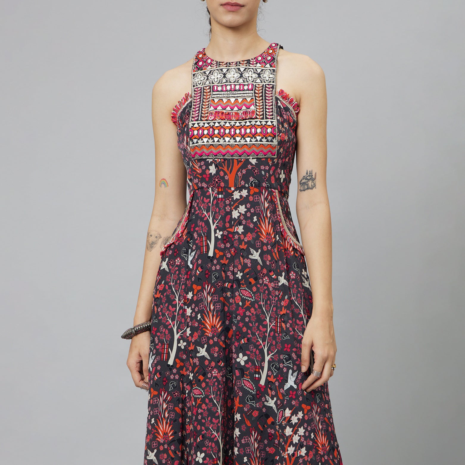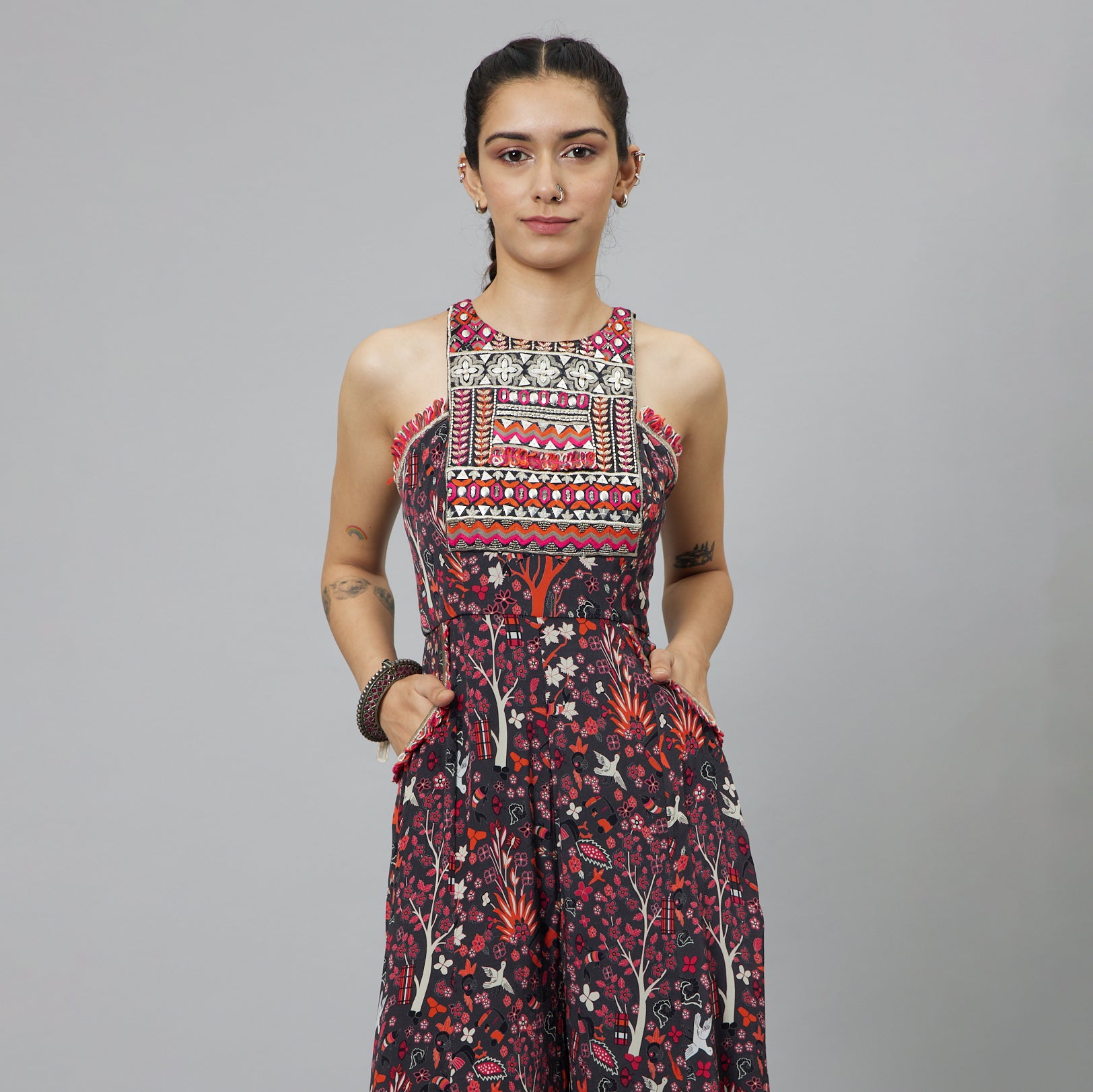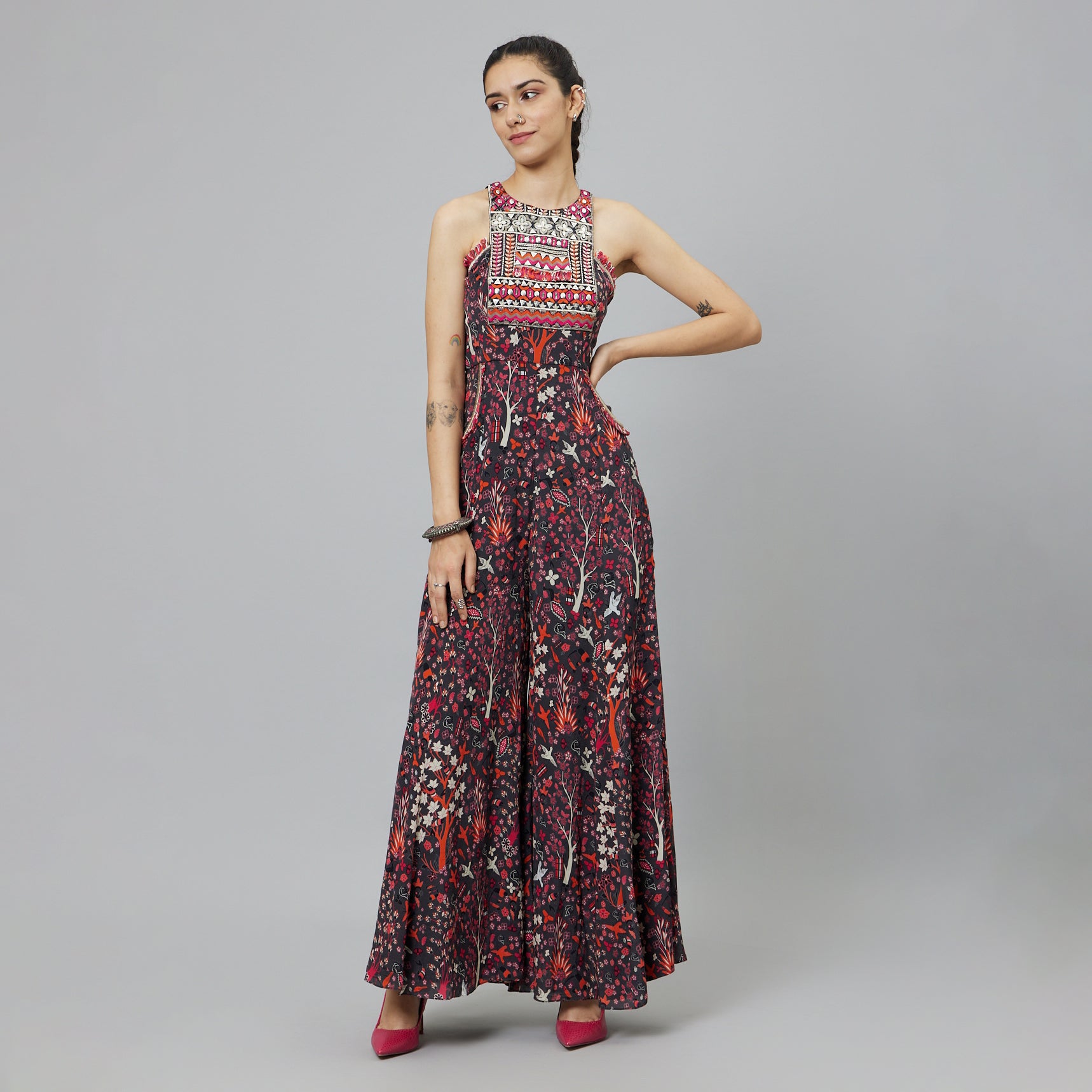 Featuring a concrete jungle print embellished yoke jumpsuit