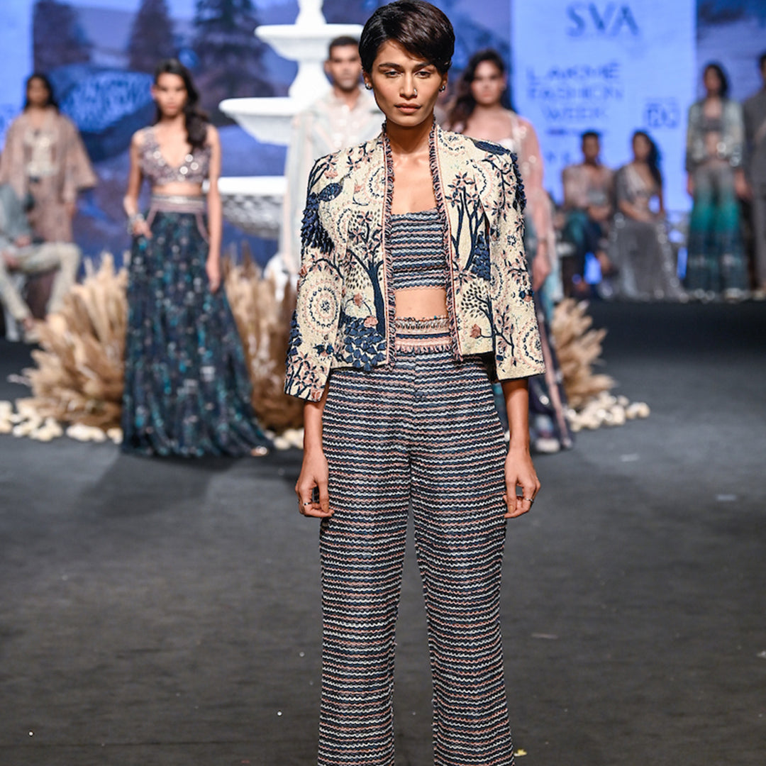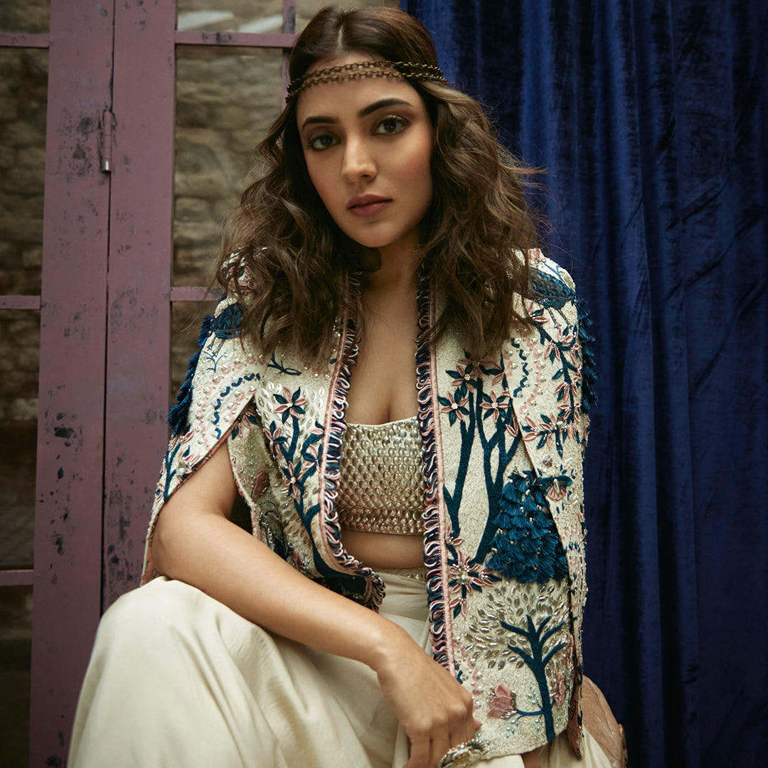 EMBROIDERED NOOR JACKET WITH SCALLOP BUSTIER AND SCALLOP PANTS