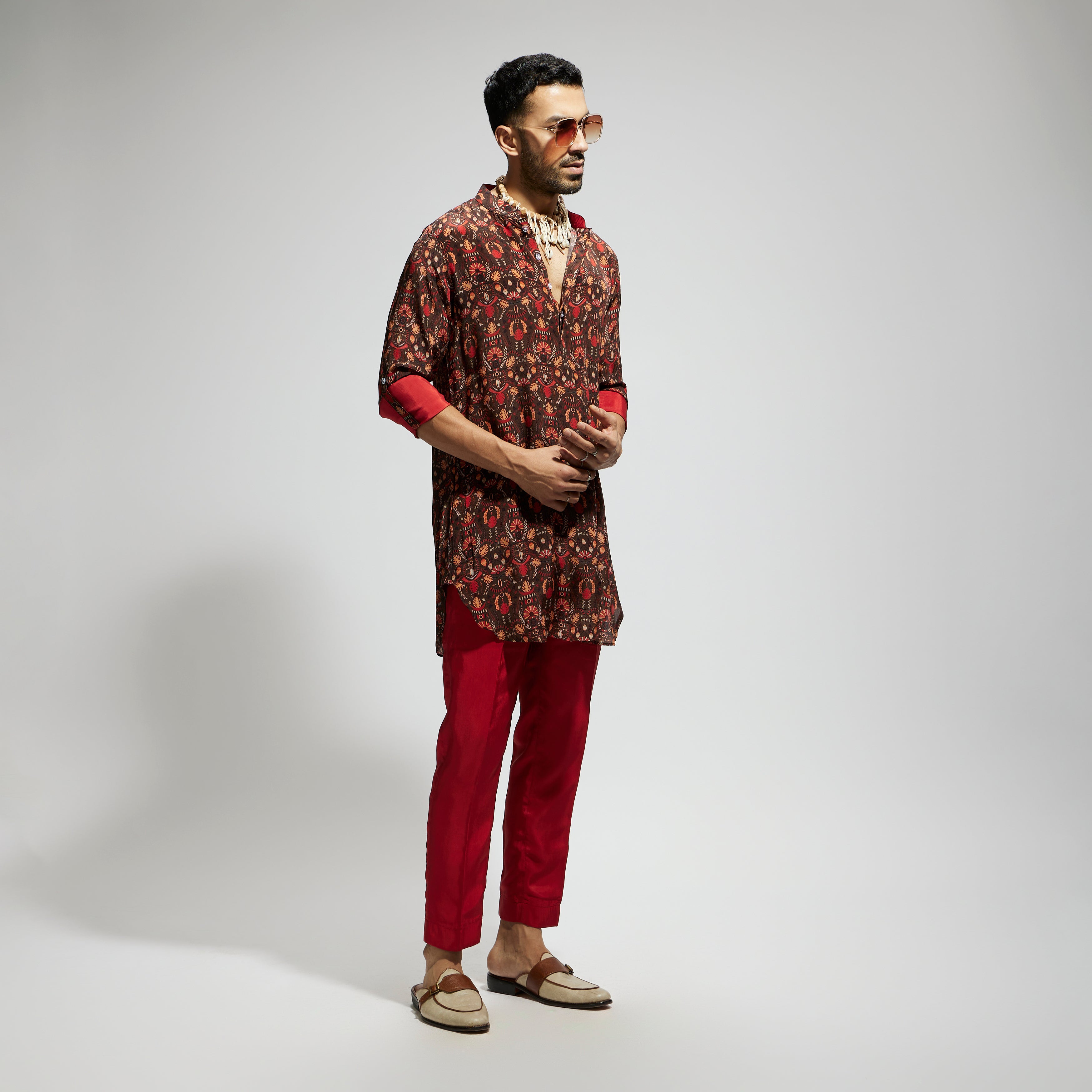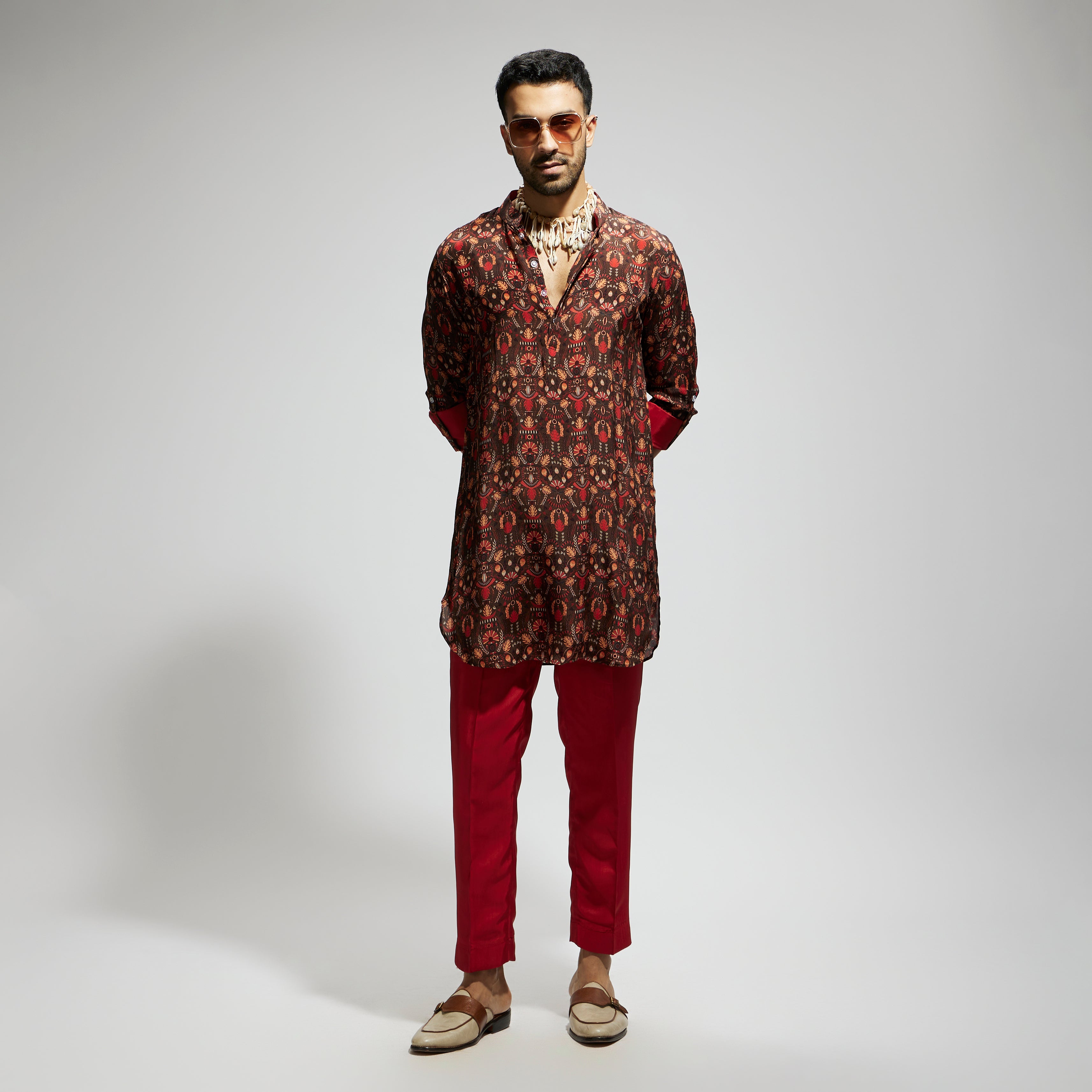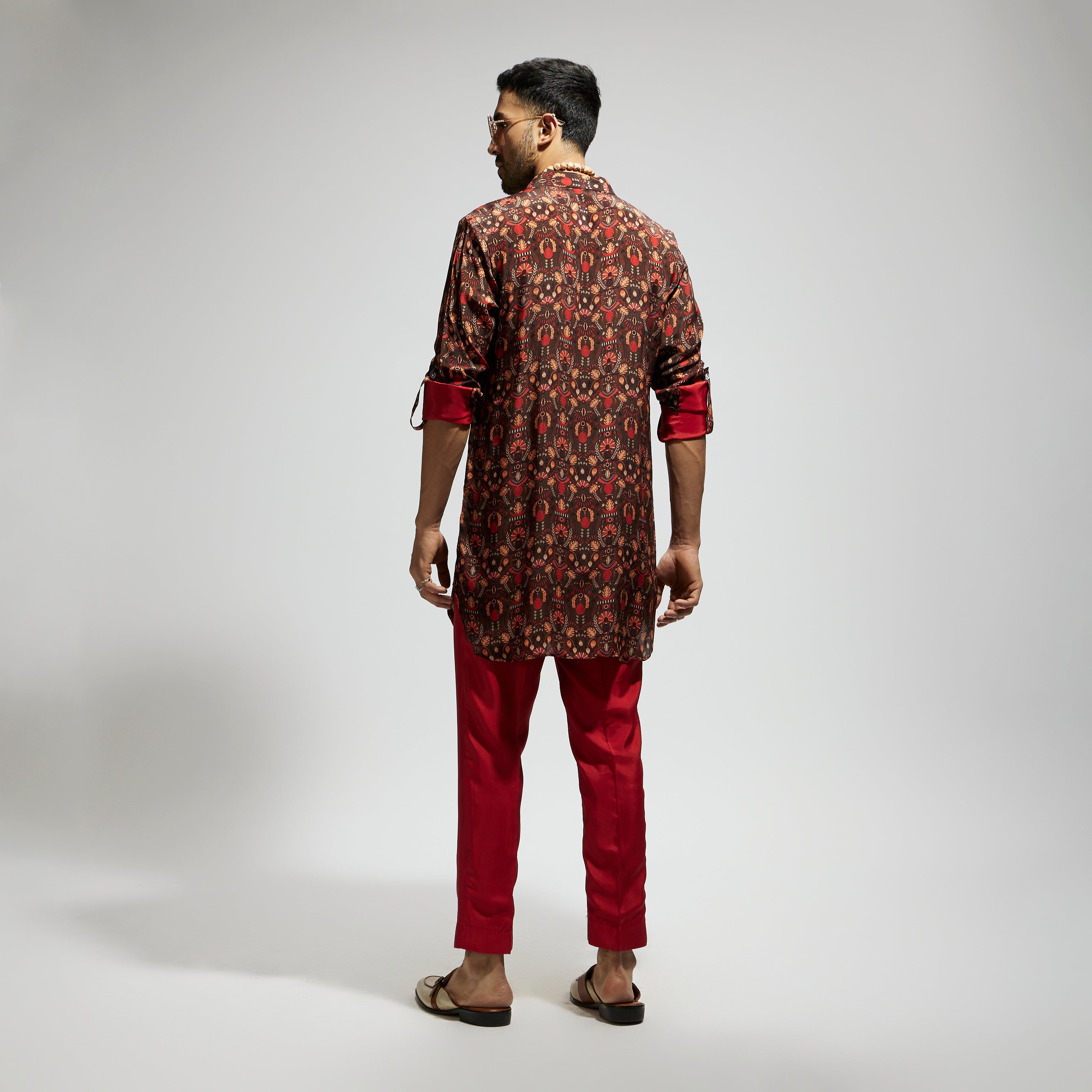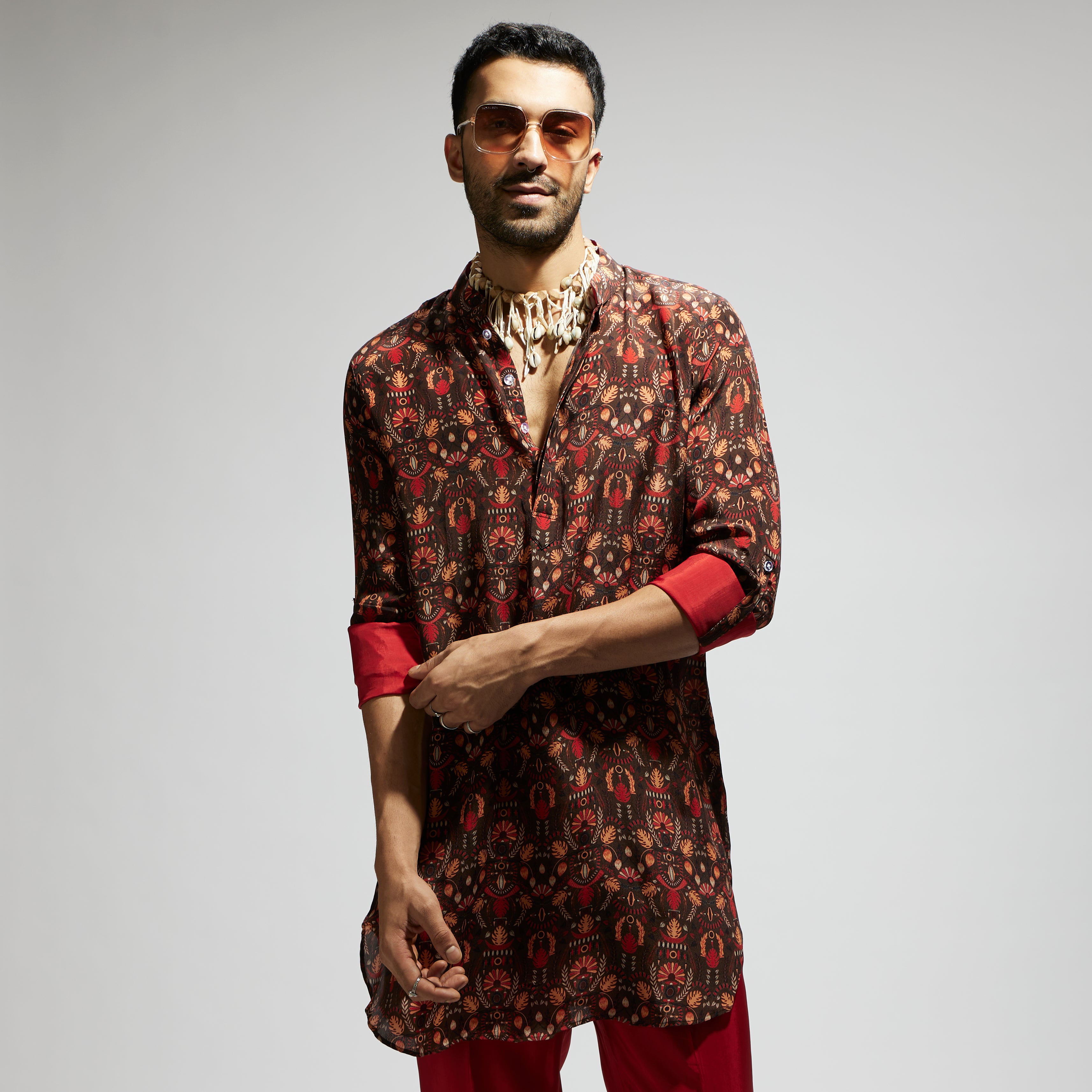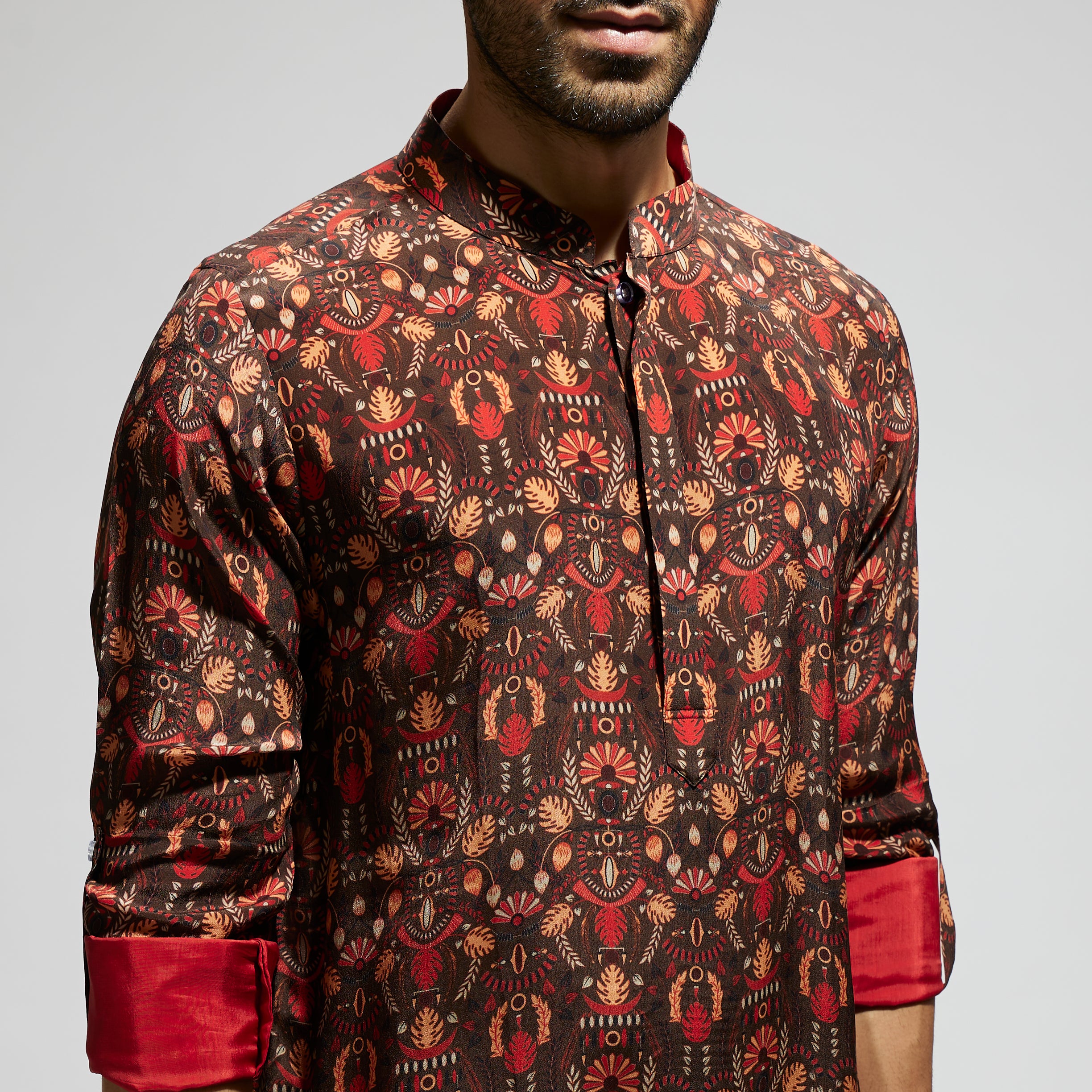 GREY JAAL PRINT ROLLED UP SLEEVES KURTA