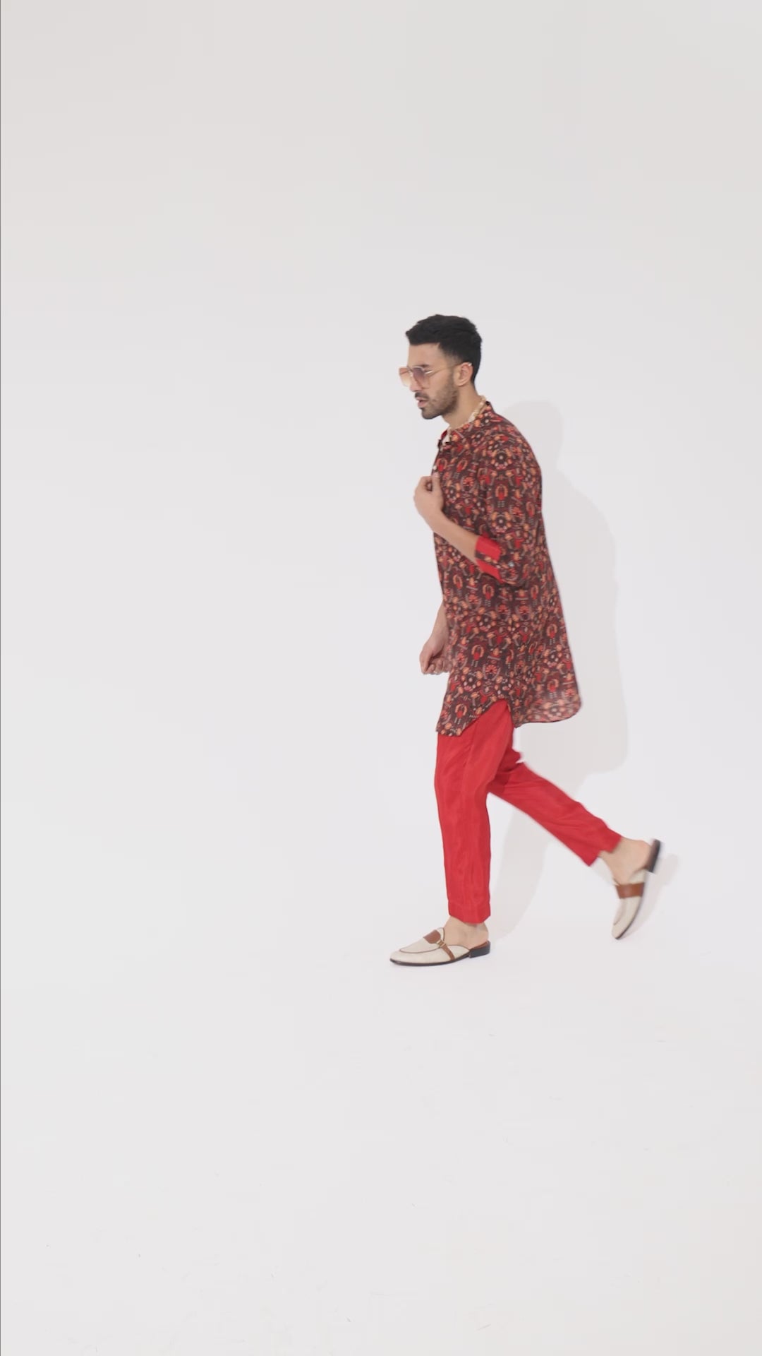Featuring a grey rolled up sleeves kurta, fabric crepe, and Component 1.