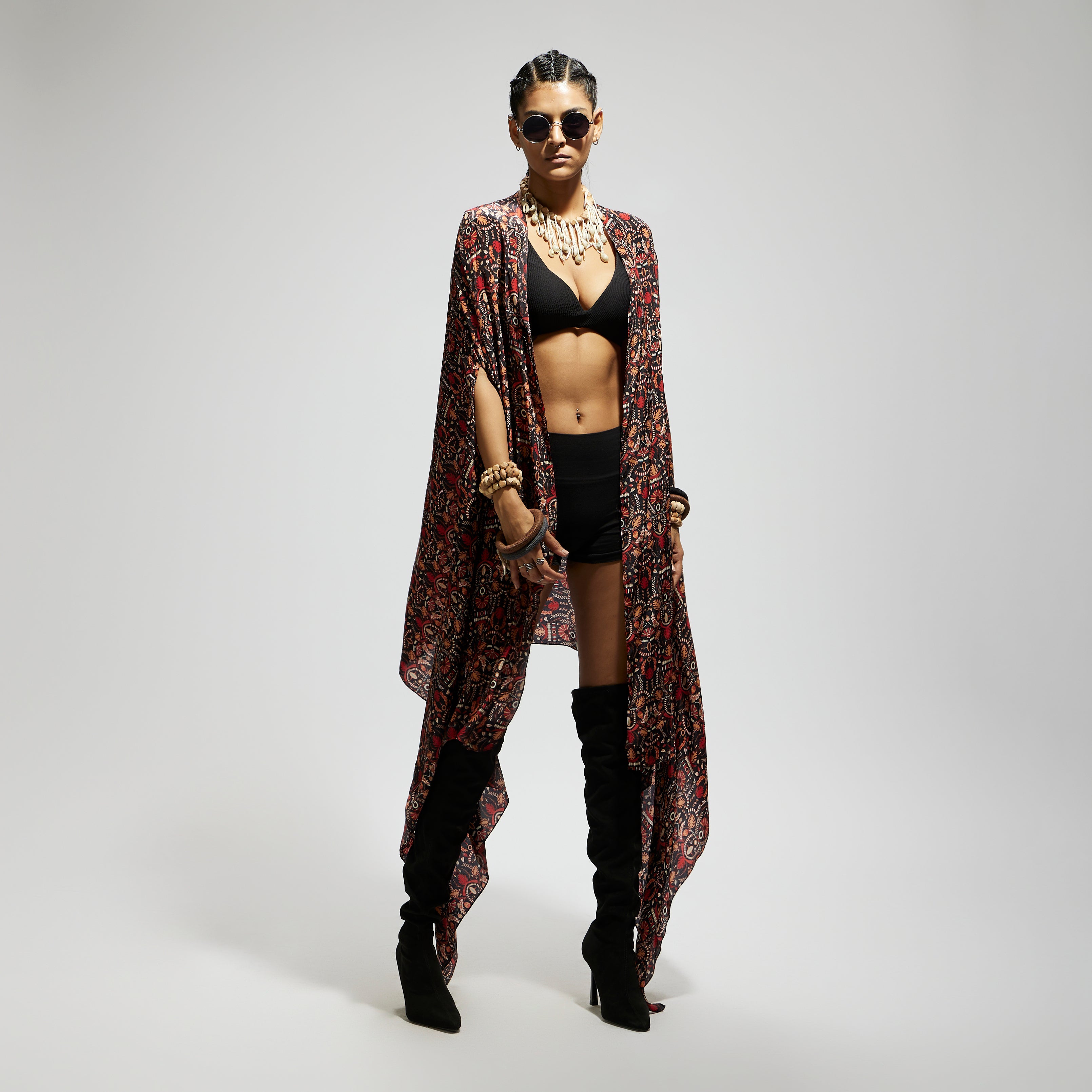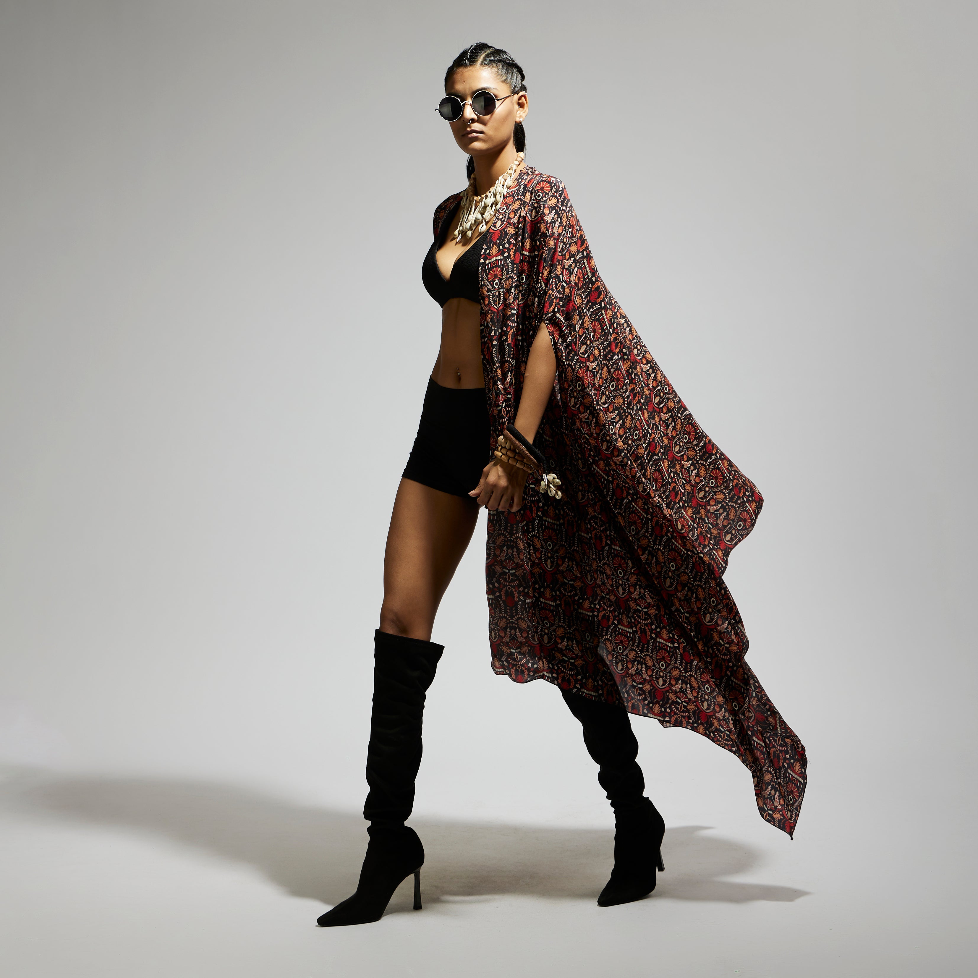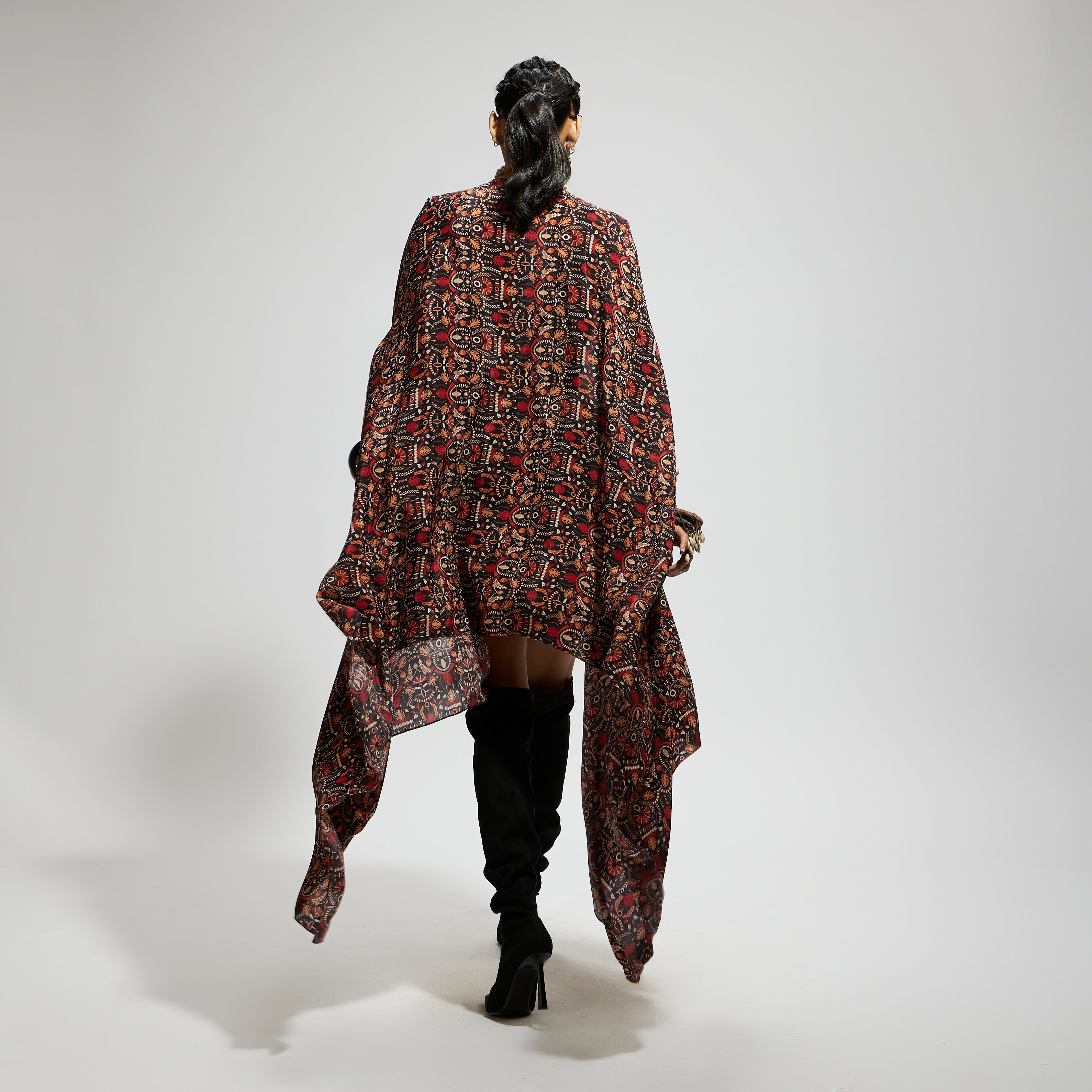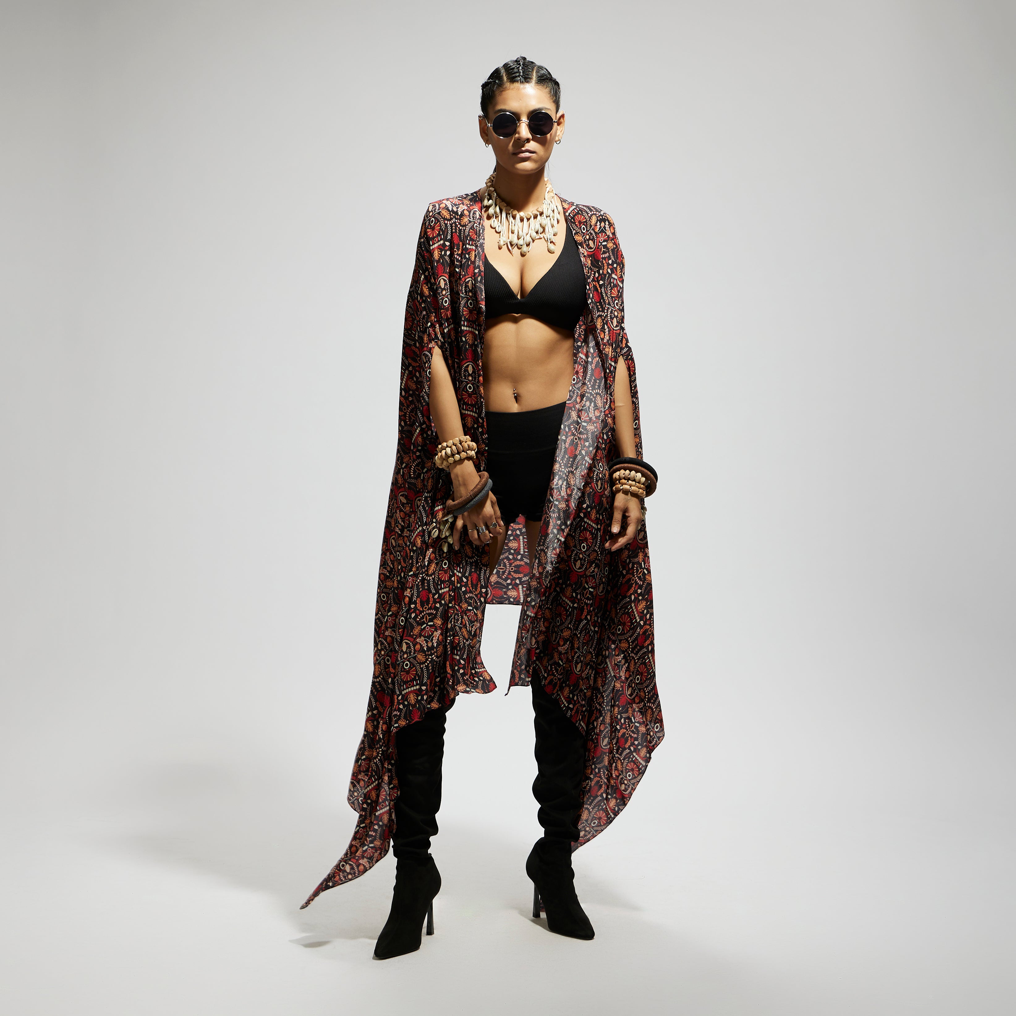 Featuring grey leaf jaal cape fabric crepe, component 1