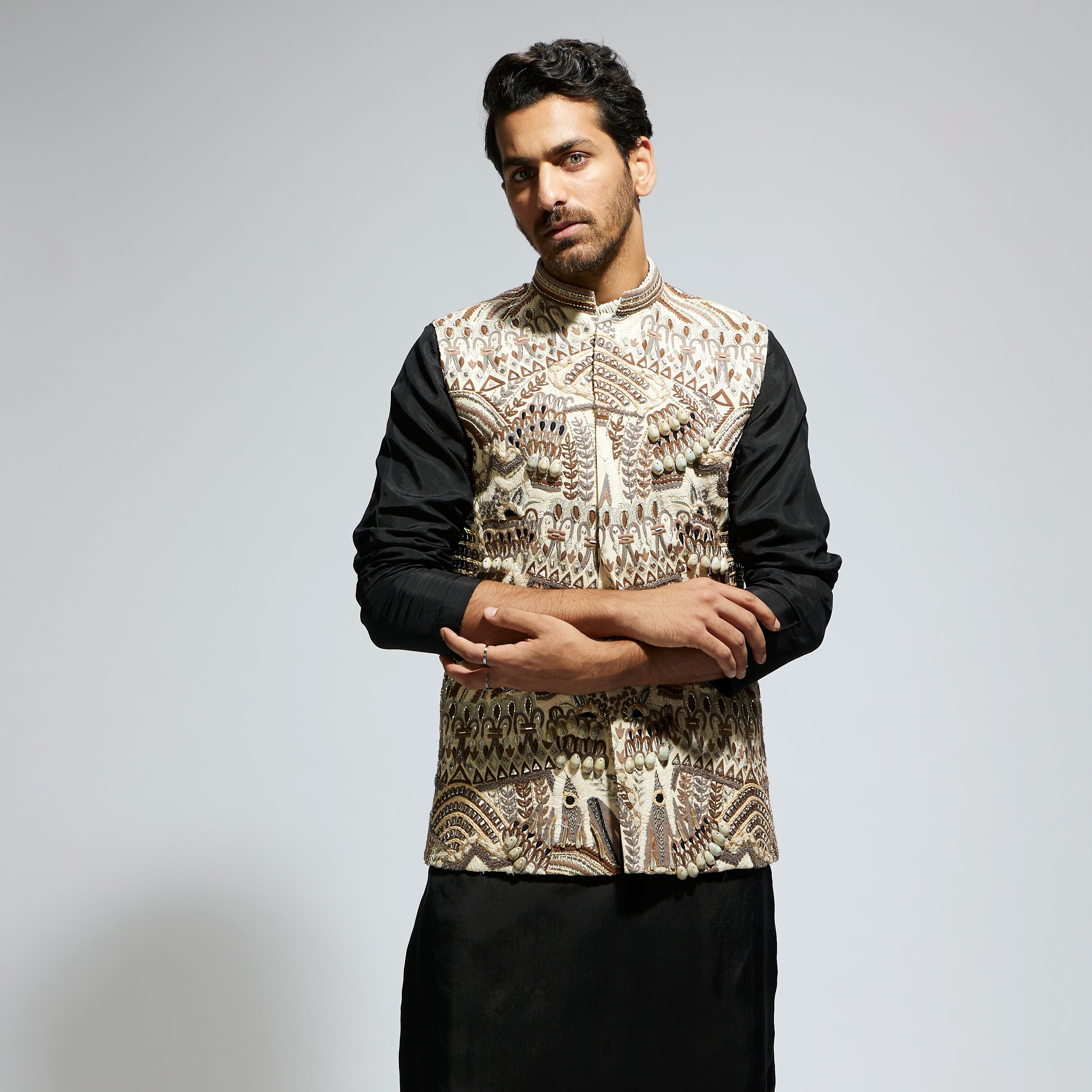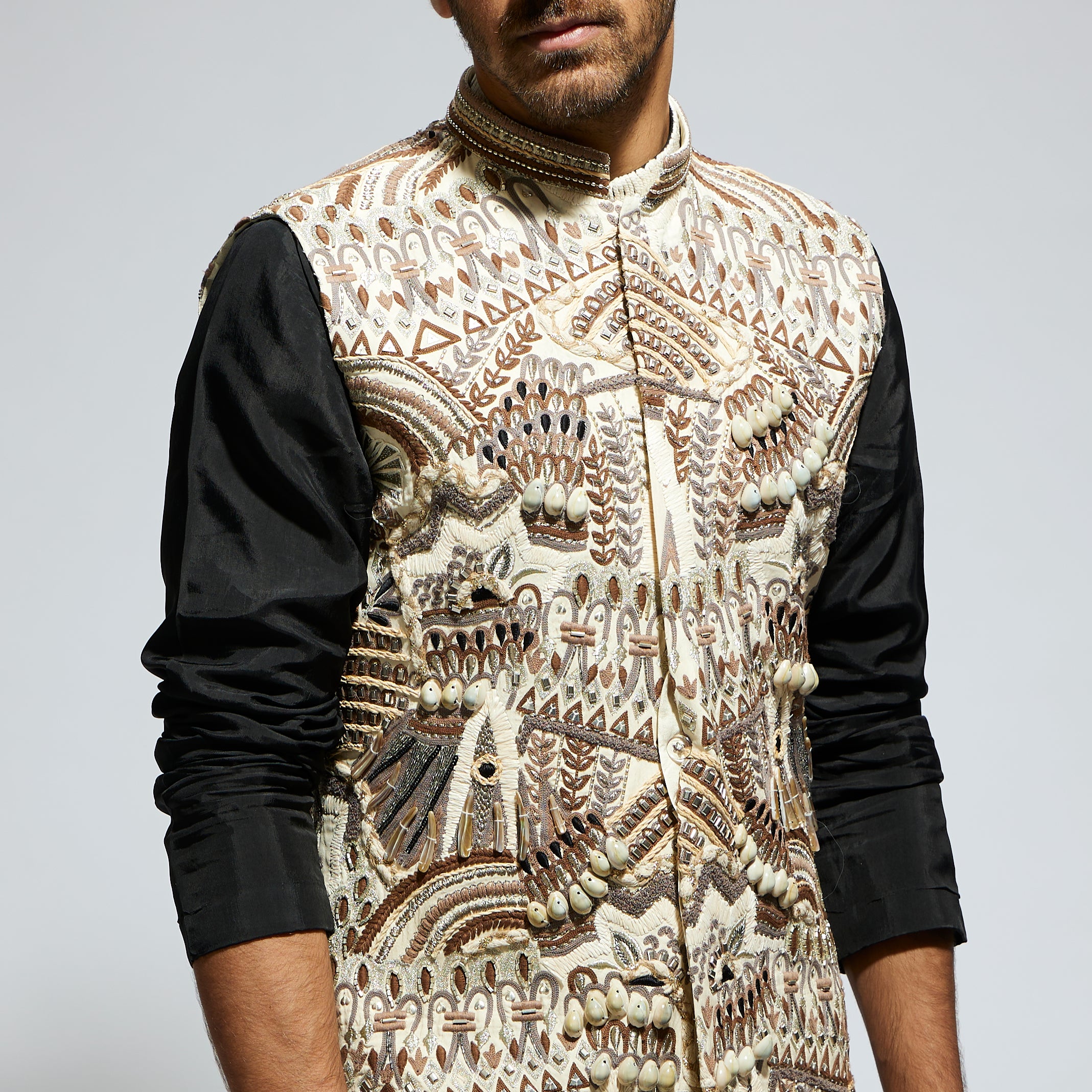 Featuring an Ivory abstract embroidered bundi, fabric habutai component 1.