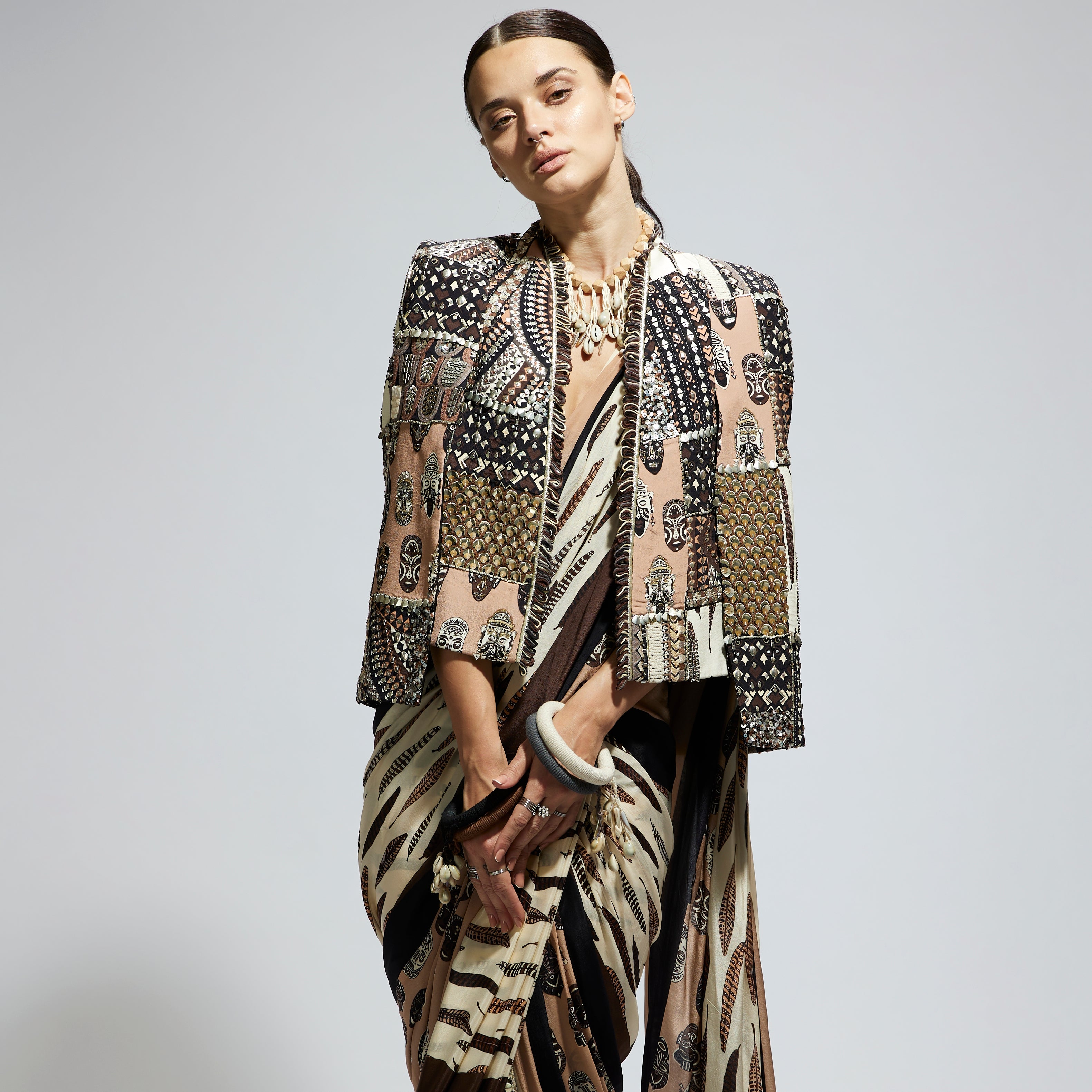 IVORY & BLACK PATCHWORK CAPE JACKET