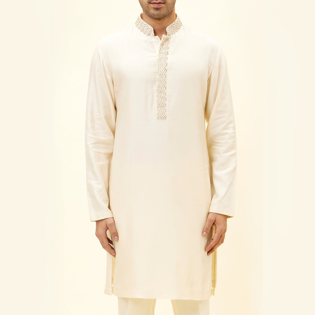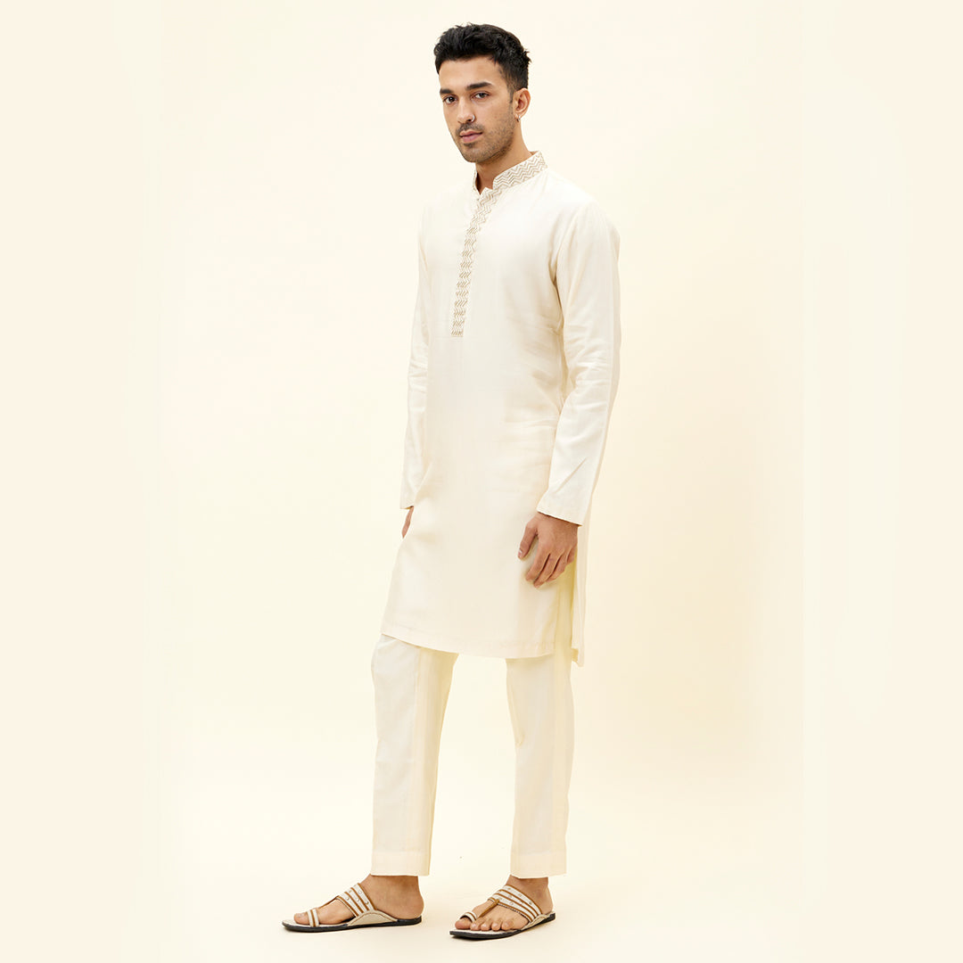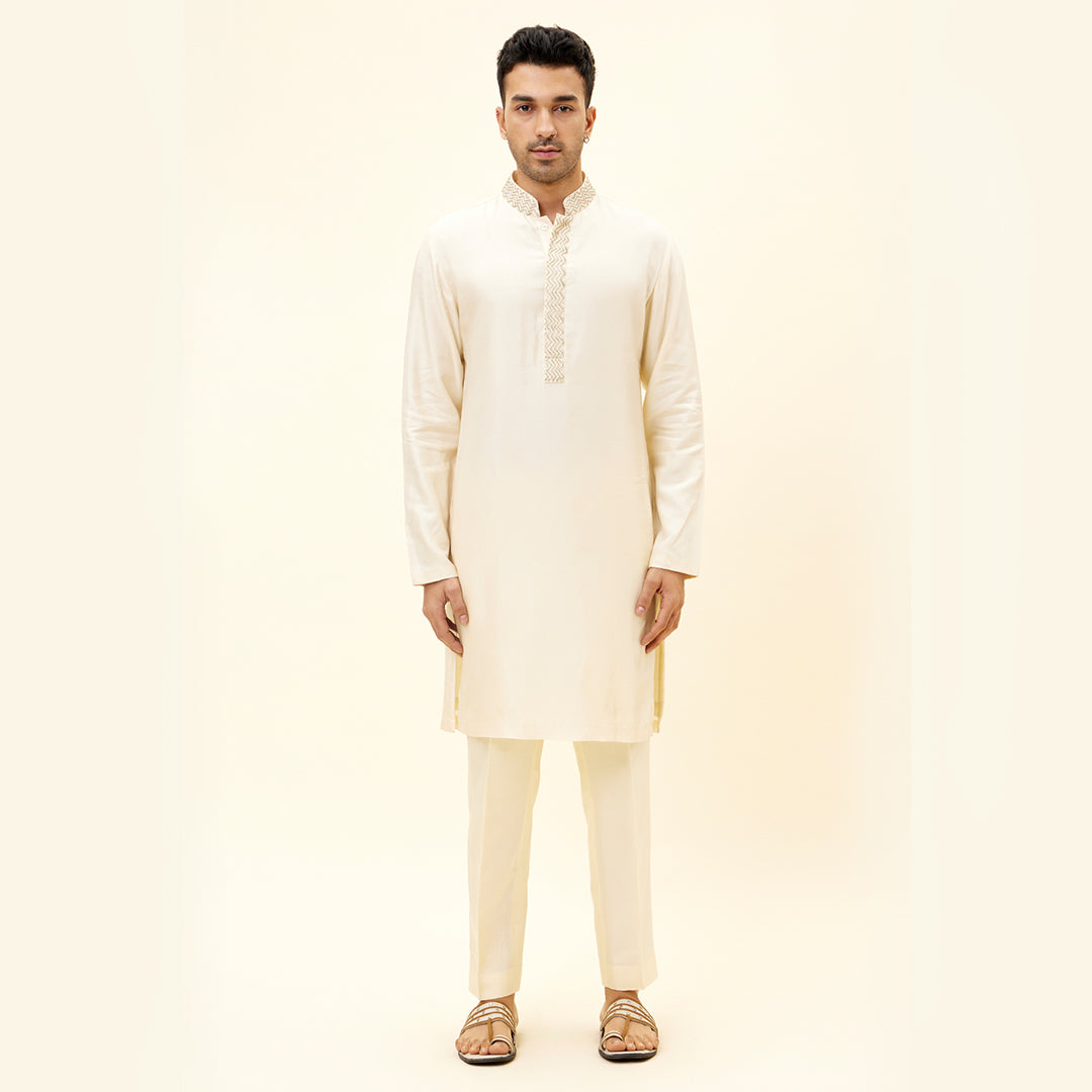 IVORY KURTA WITH EMBROIDERED NECKLINE AND PANTS