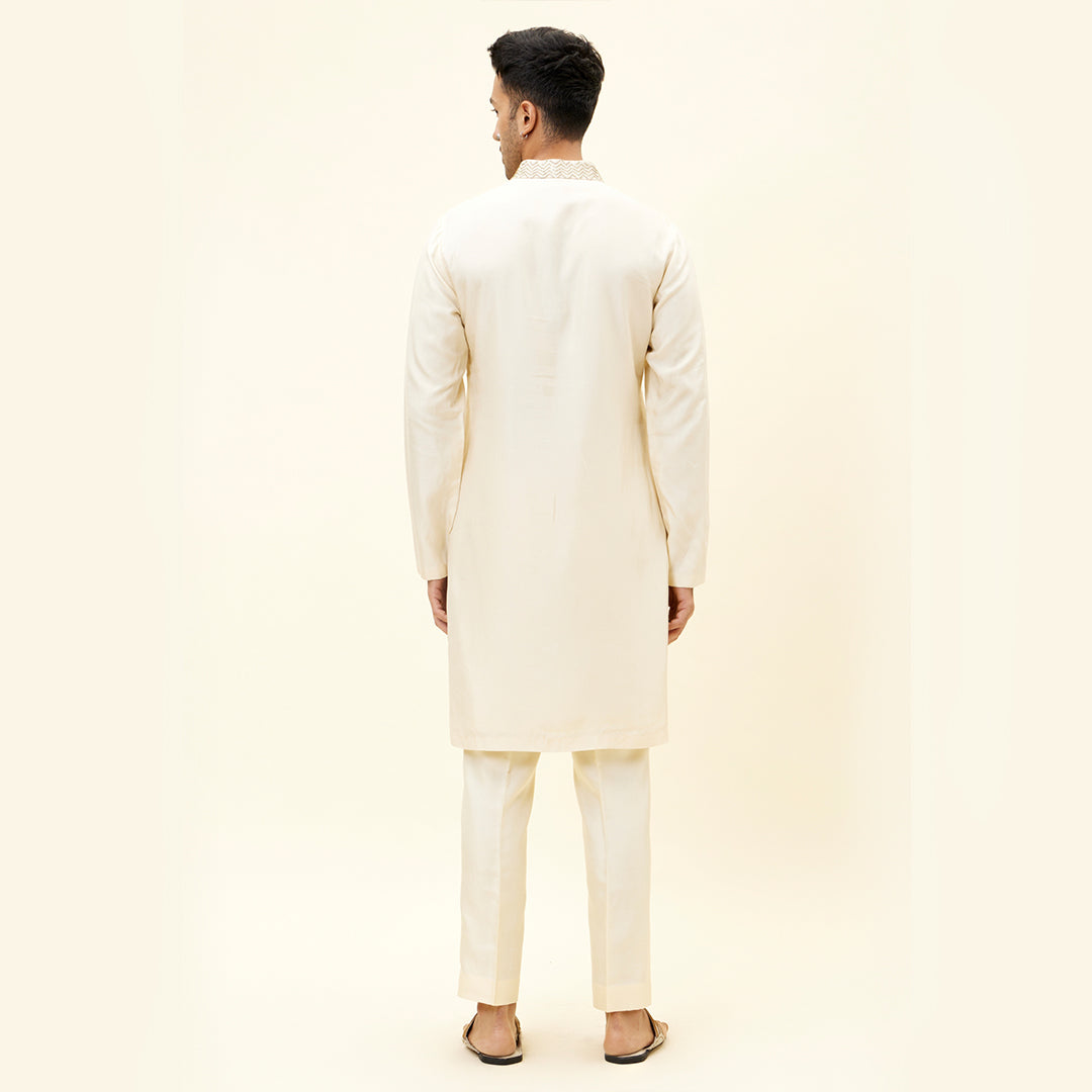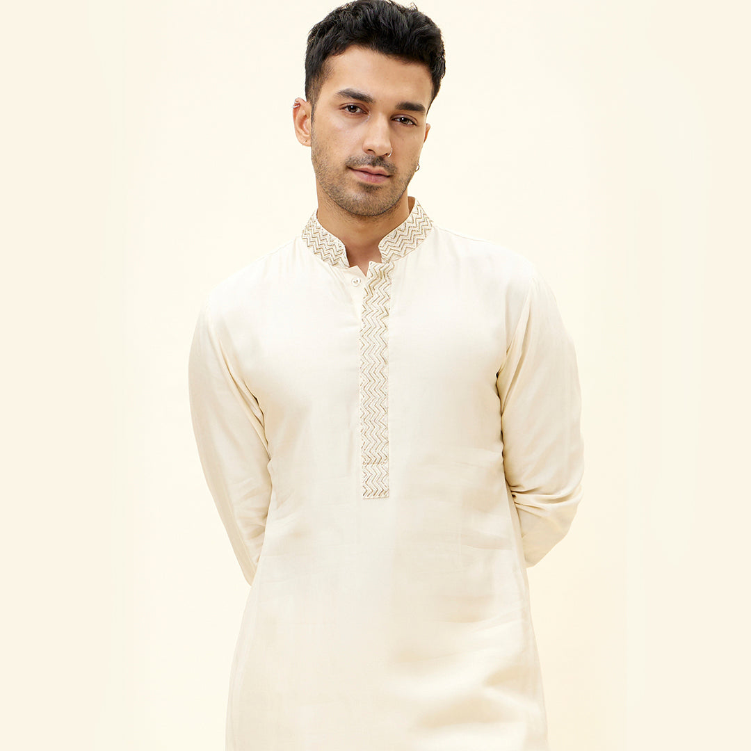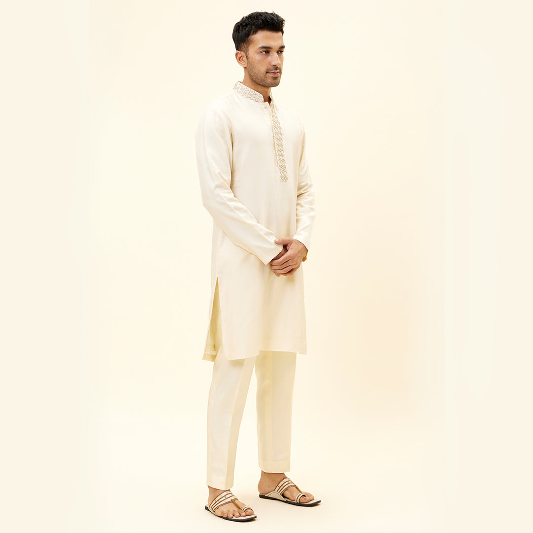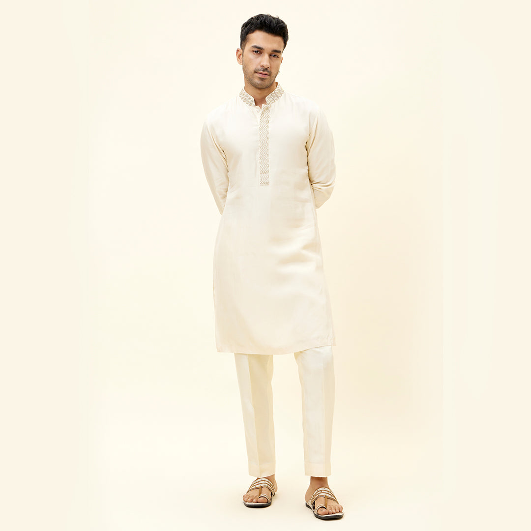 IVORY KURTA WITH EMBROIDERED NECKLINE AND PANTS