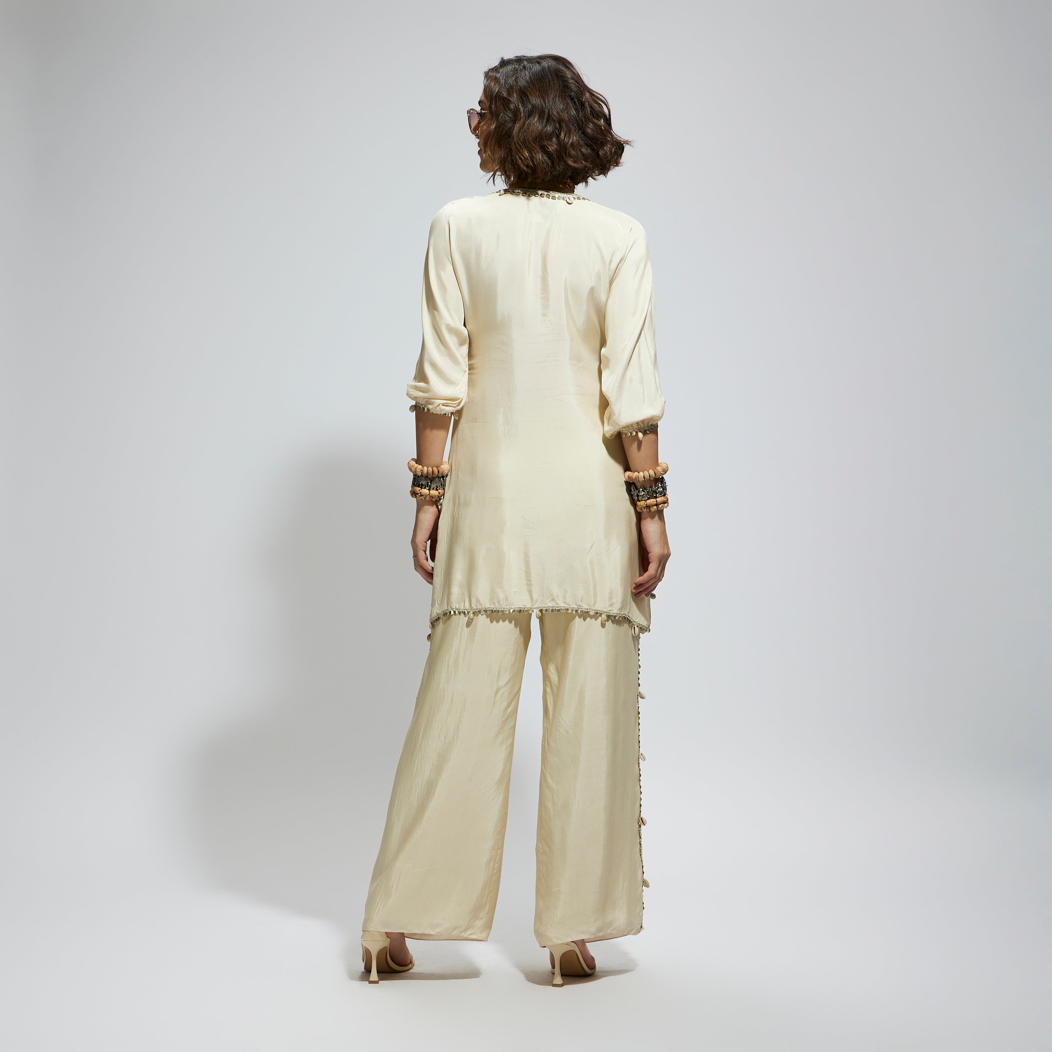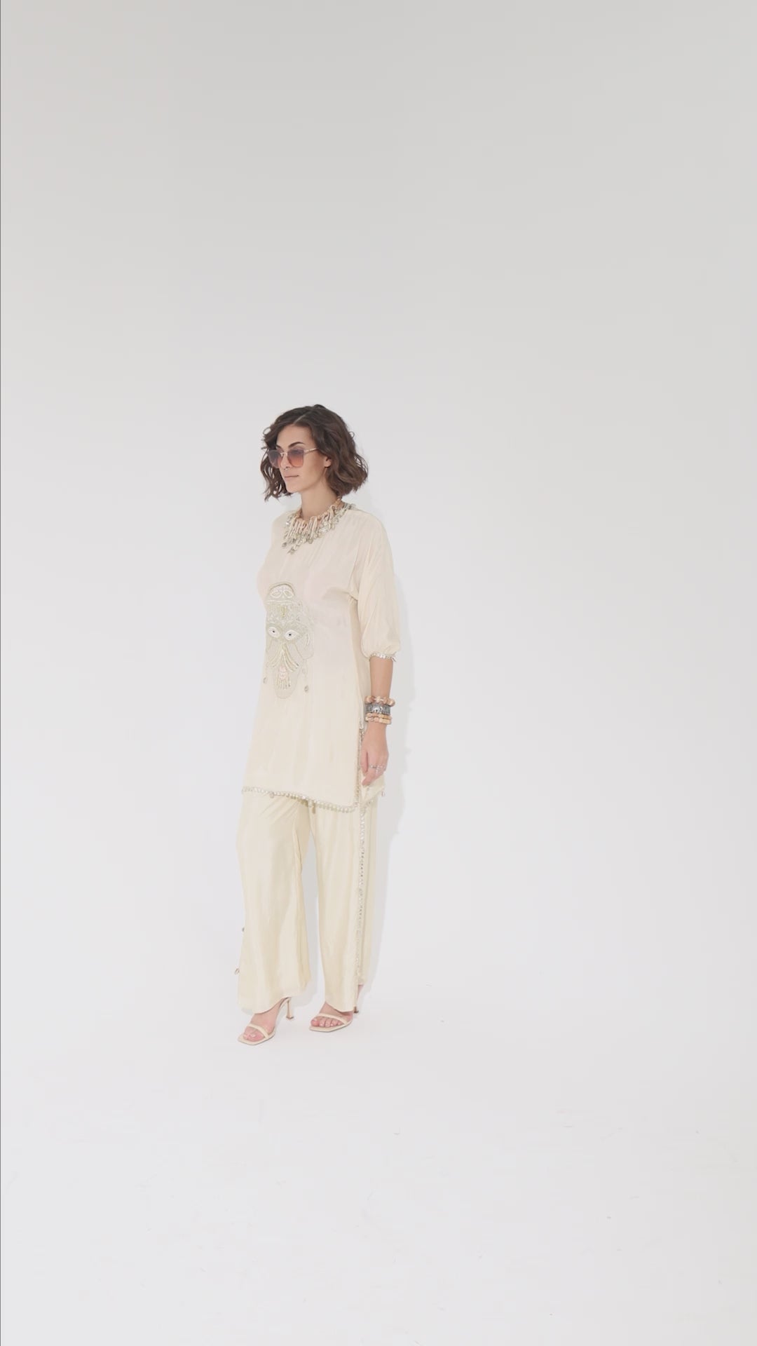 IVORY METAL EMBELLISHED MASK TUNIC SET