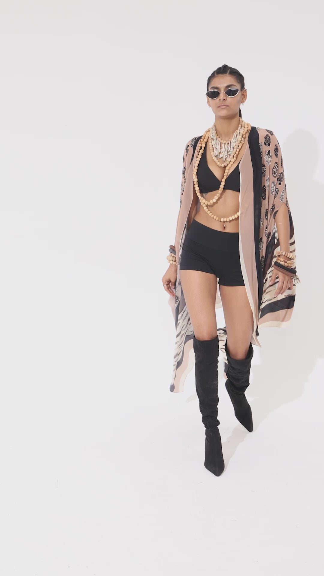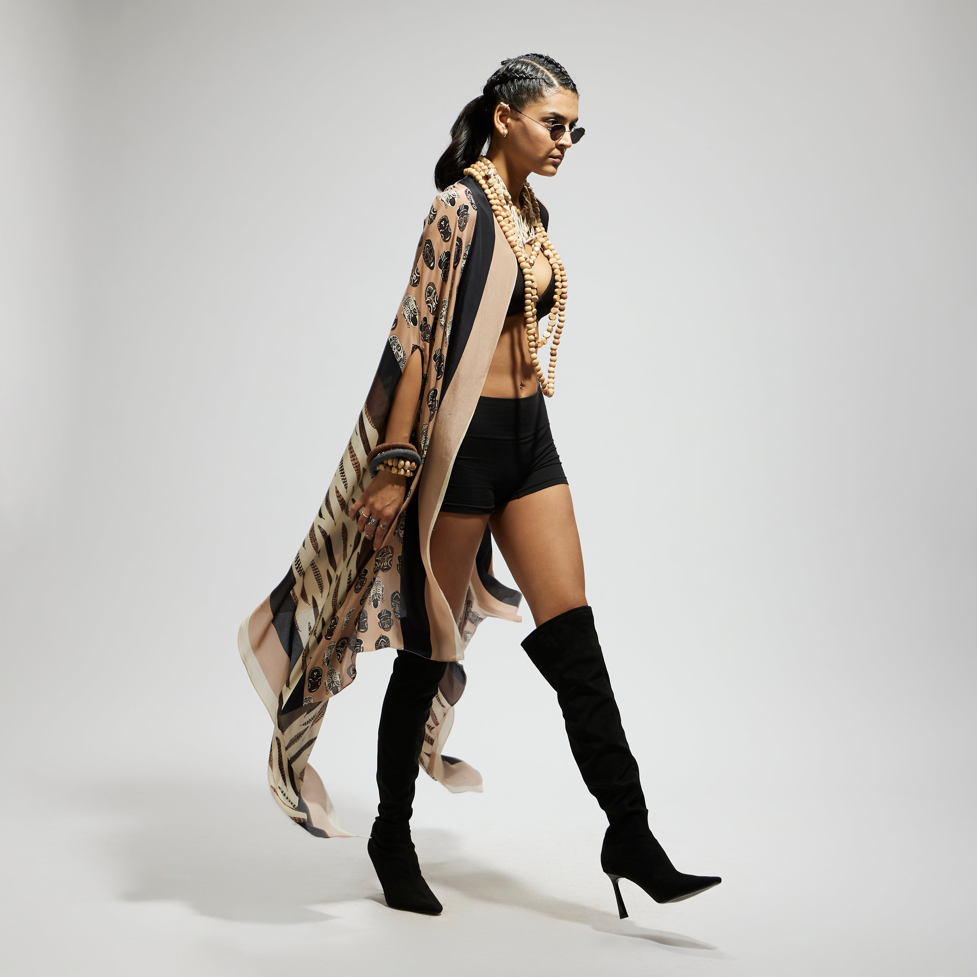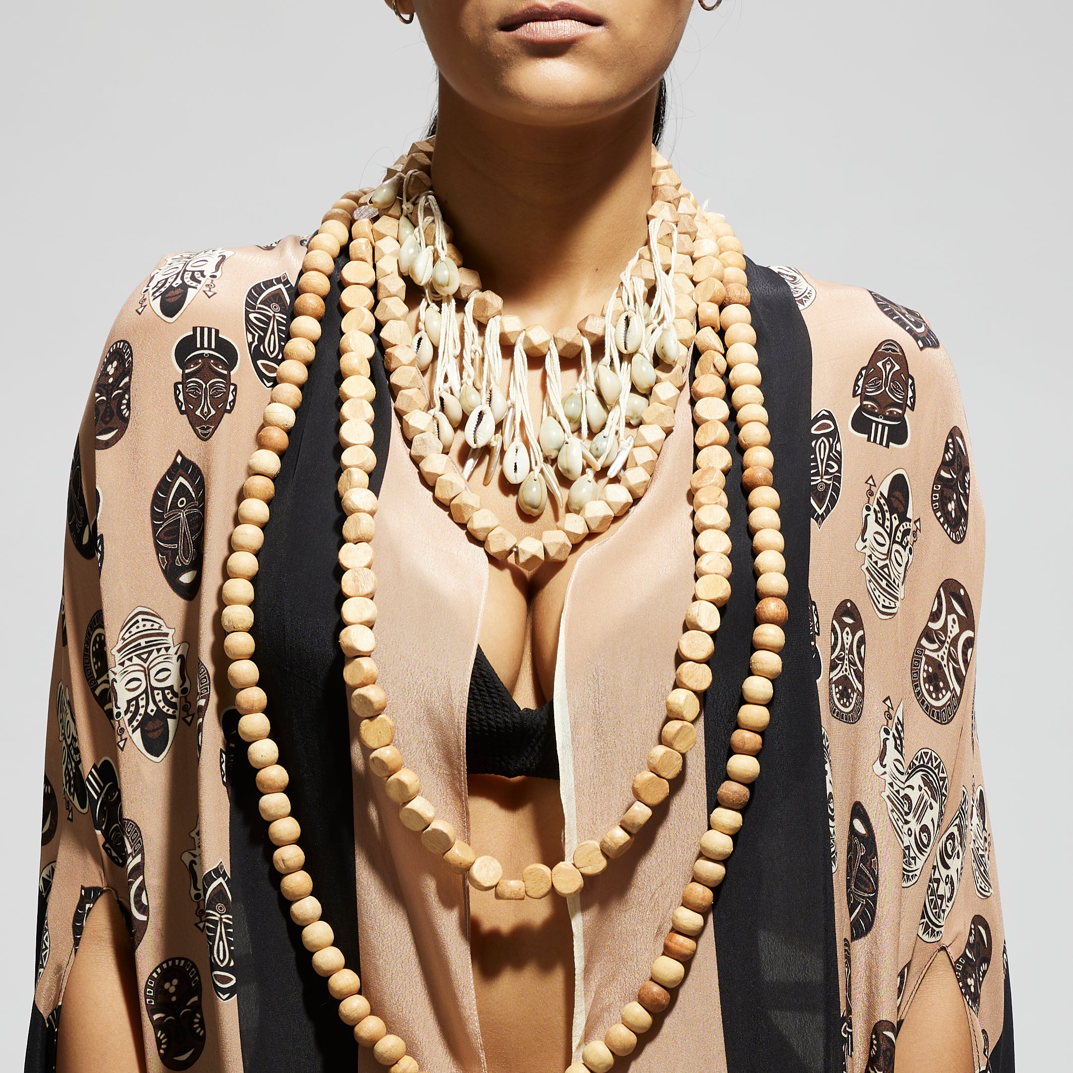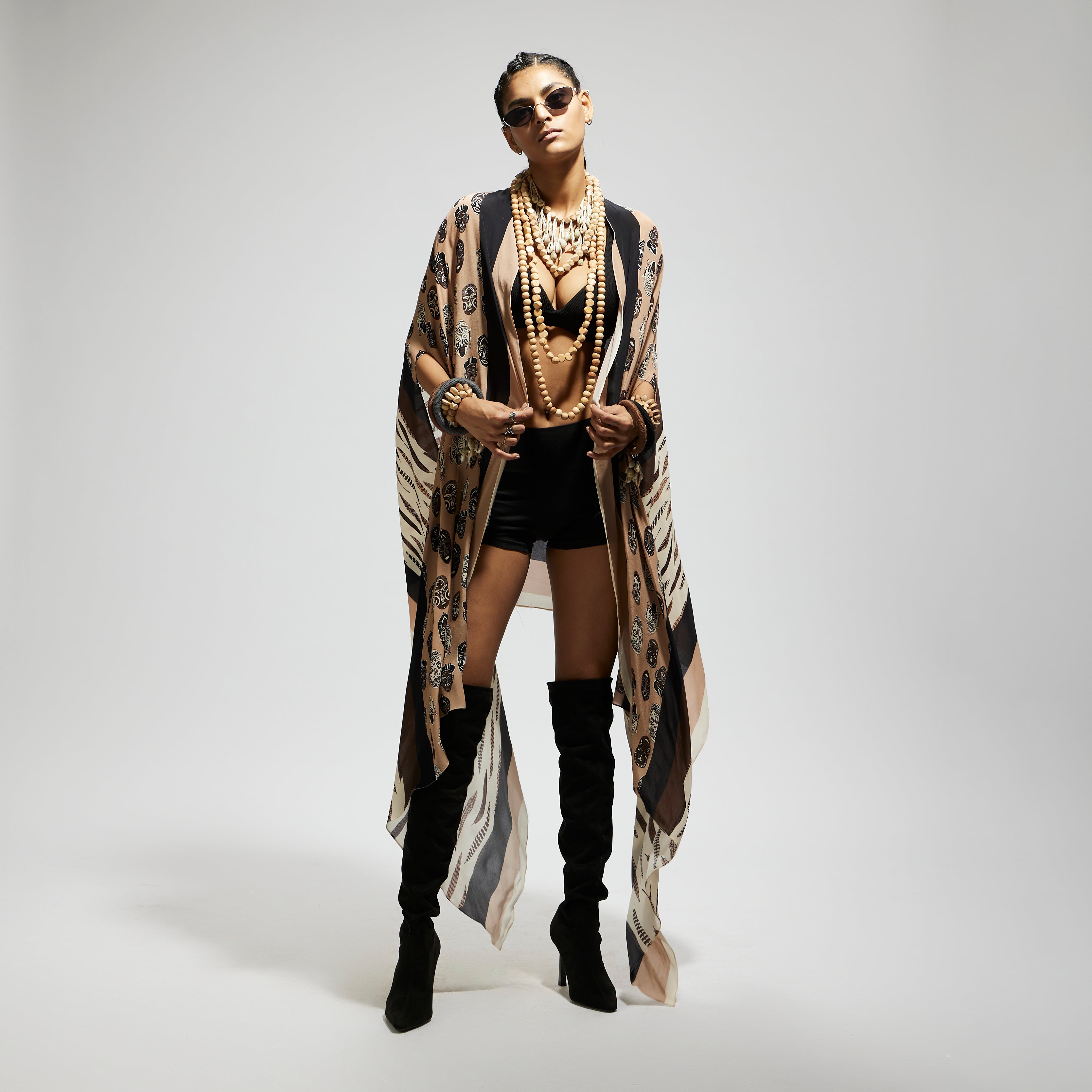 Featuring a mask and feather cape, fabric Crepe, Component 1