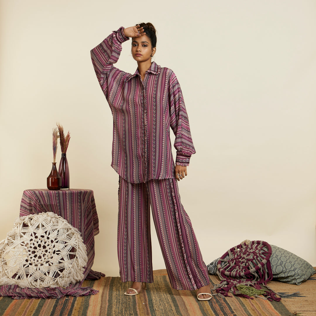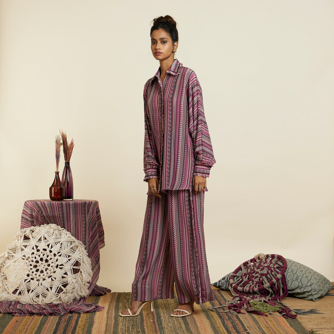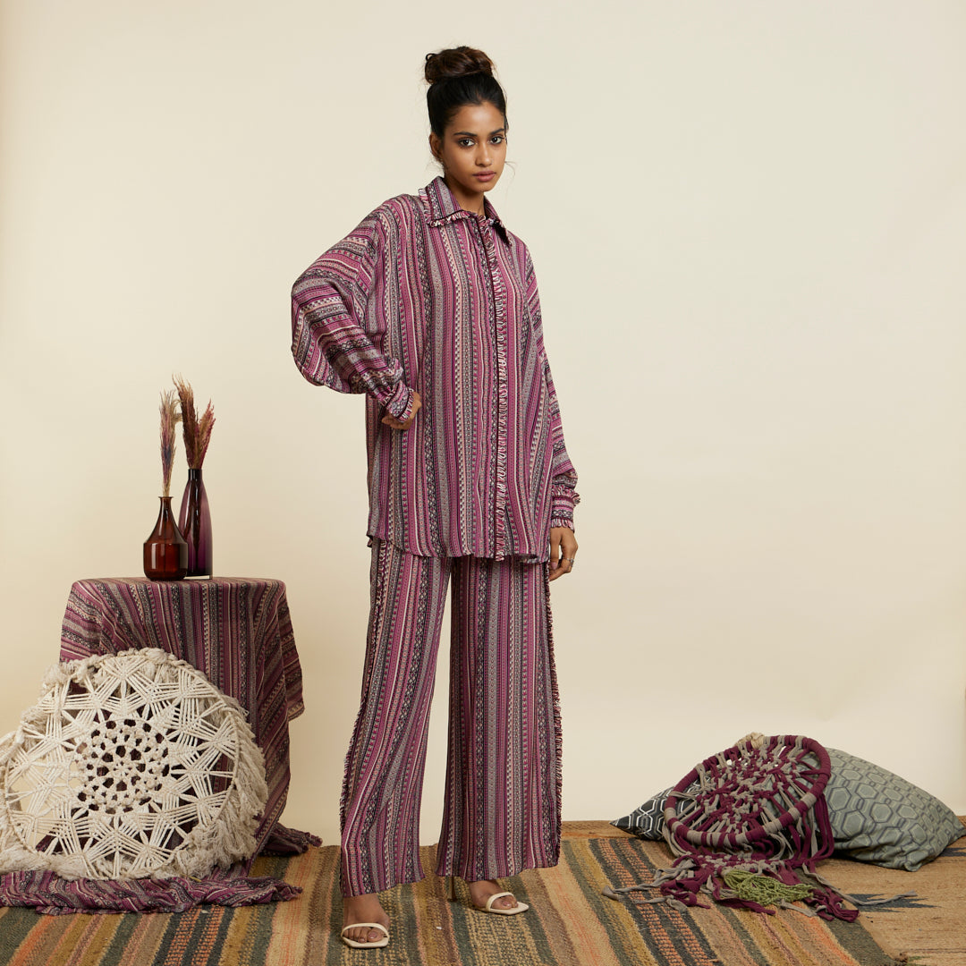 MERLOT BOHO STRIPE PRINT OVERSIZED COORD SET