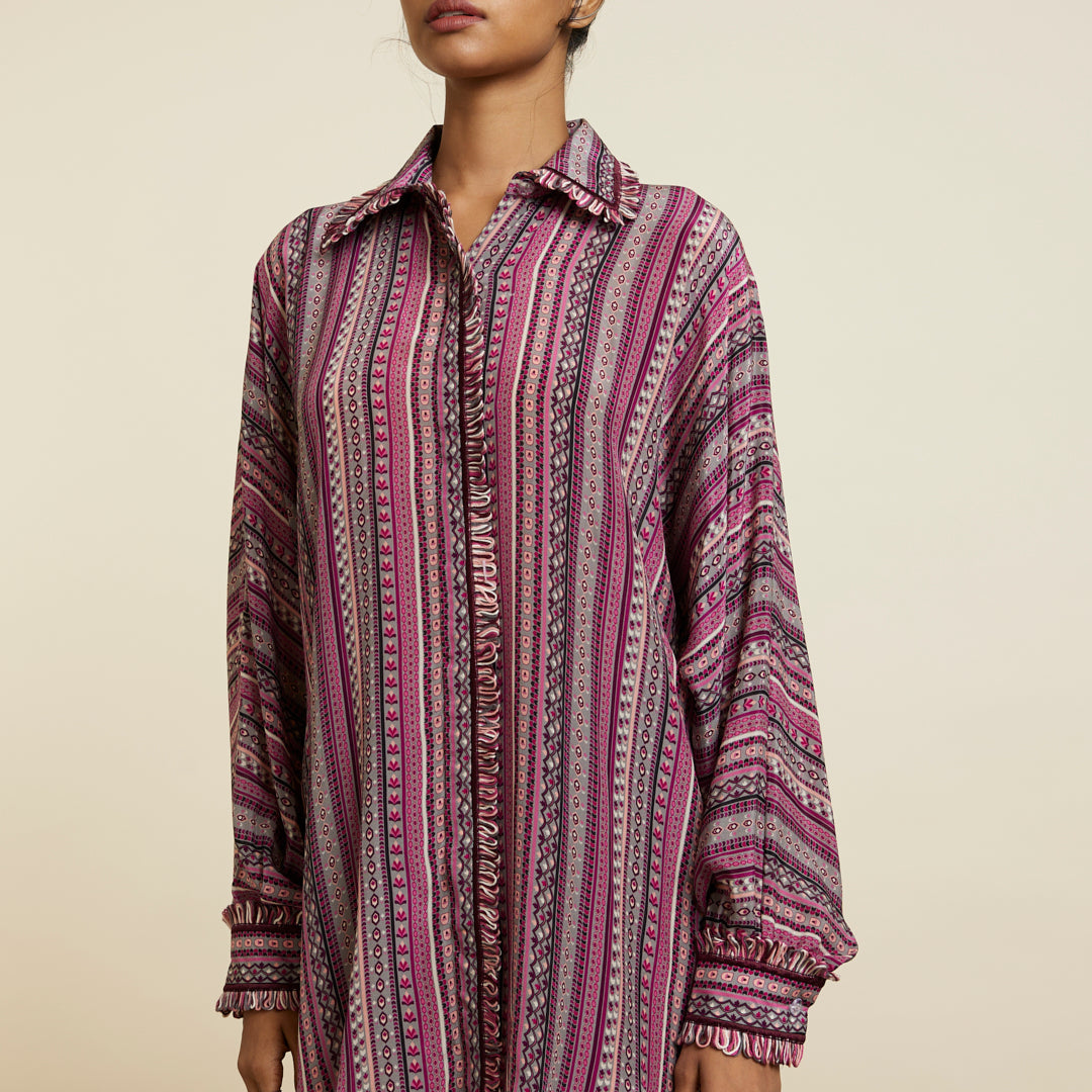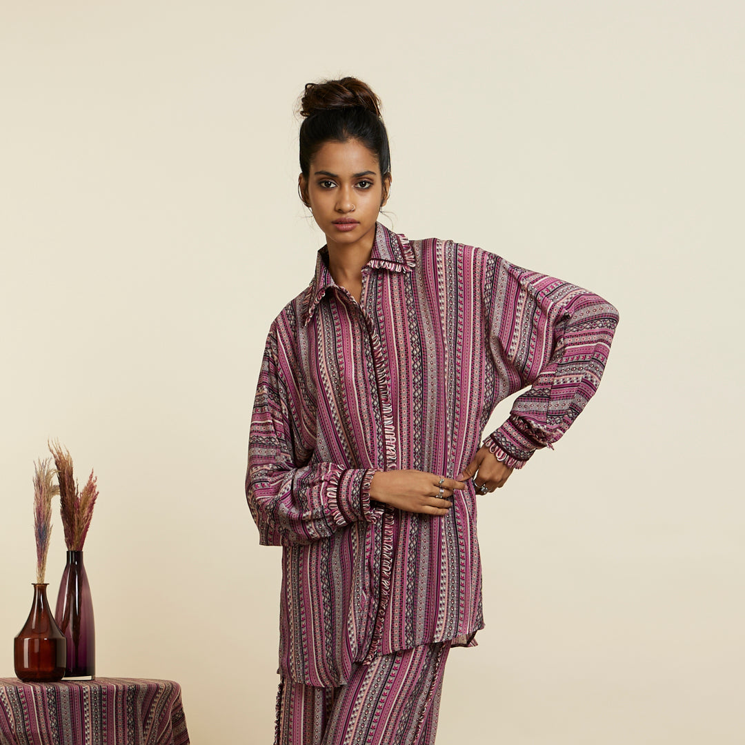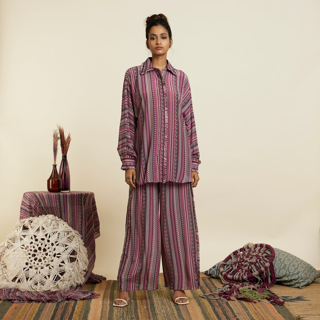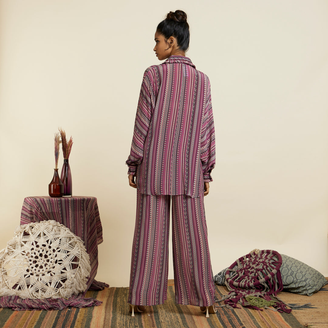 MERLOT BOHO STRIPE PRINT OVERSIZED COORD SET