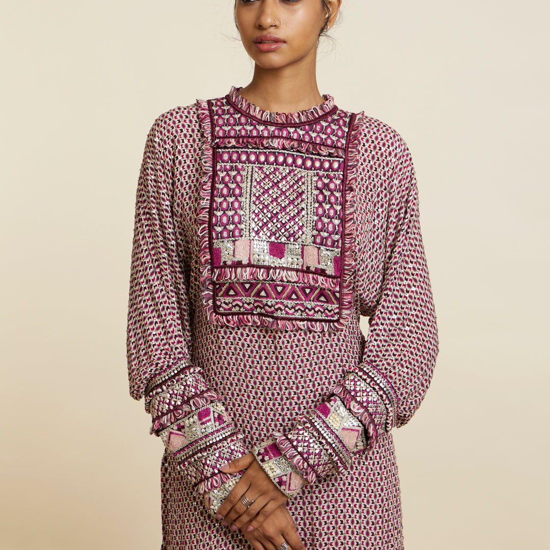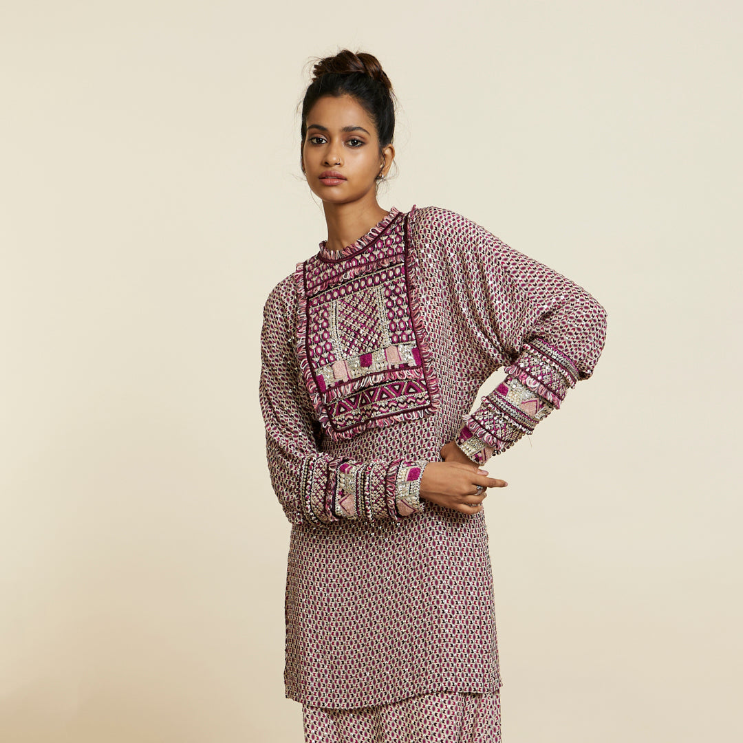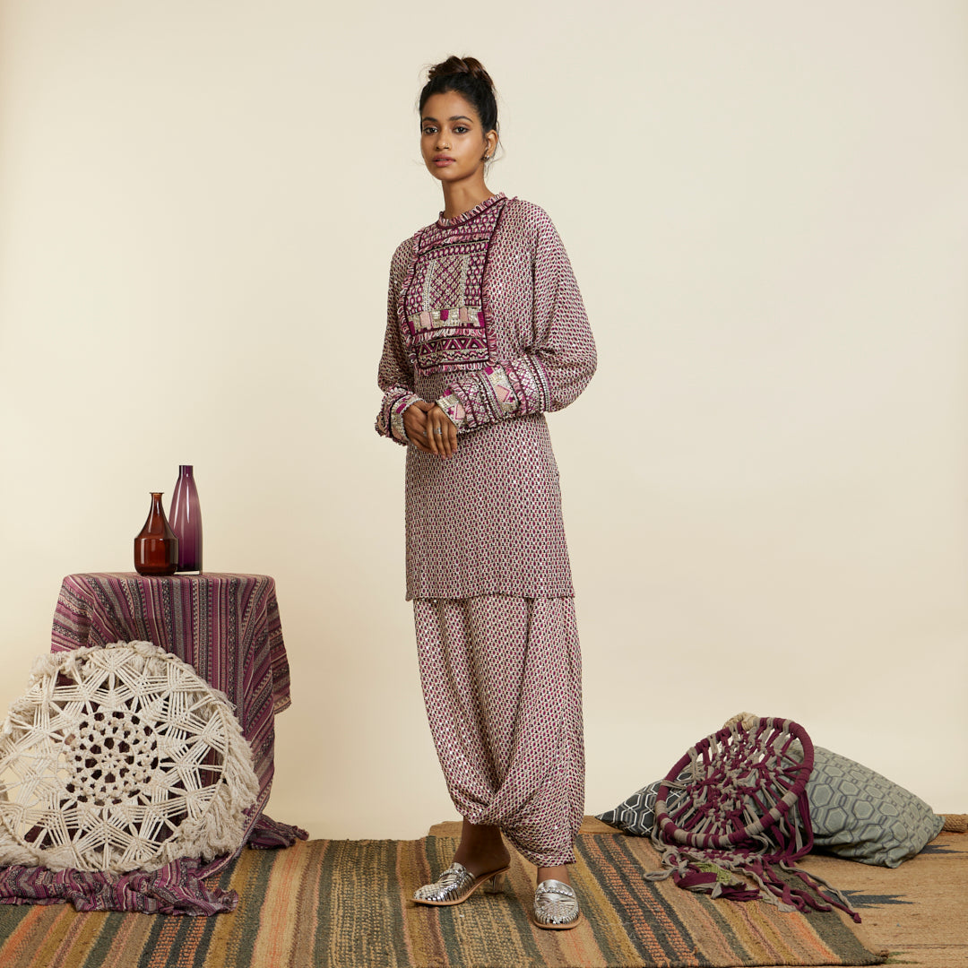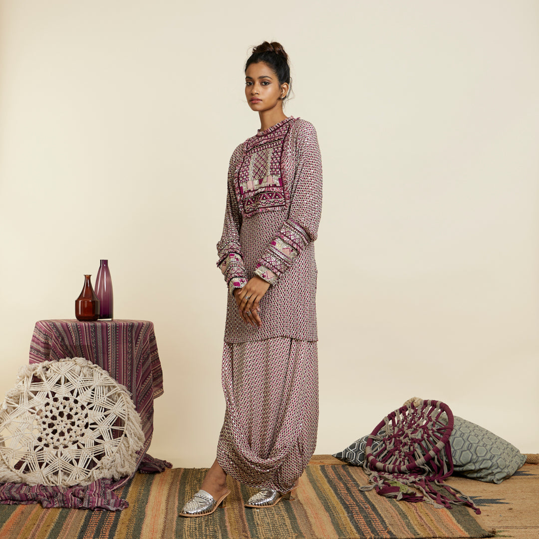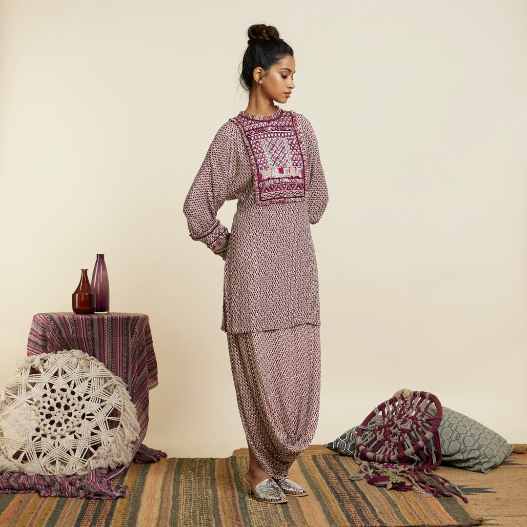 MERLOT GEOMETRIC PRINTED TUNIC SET