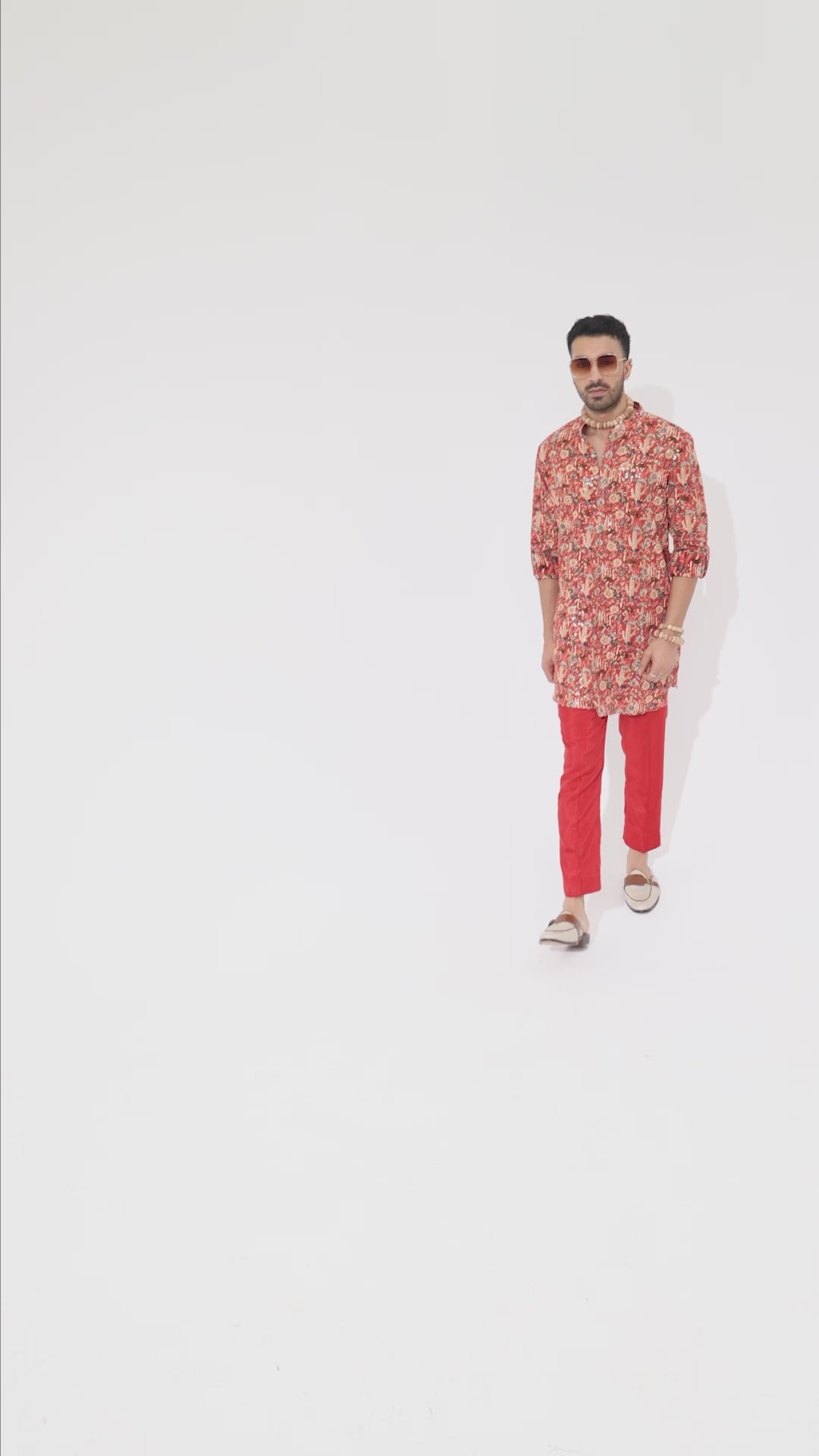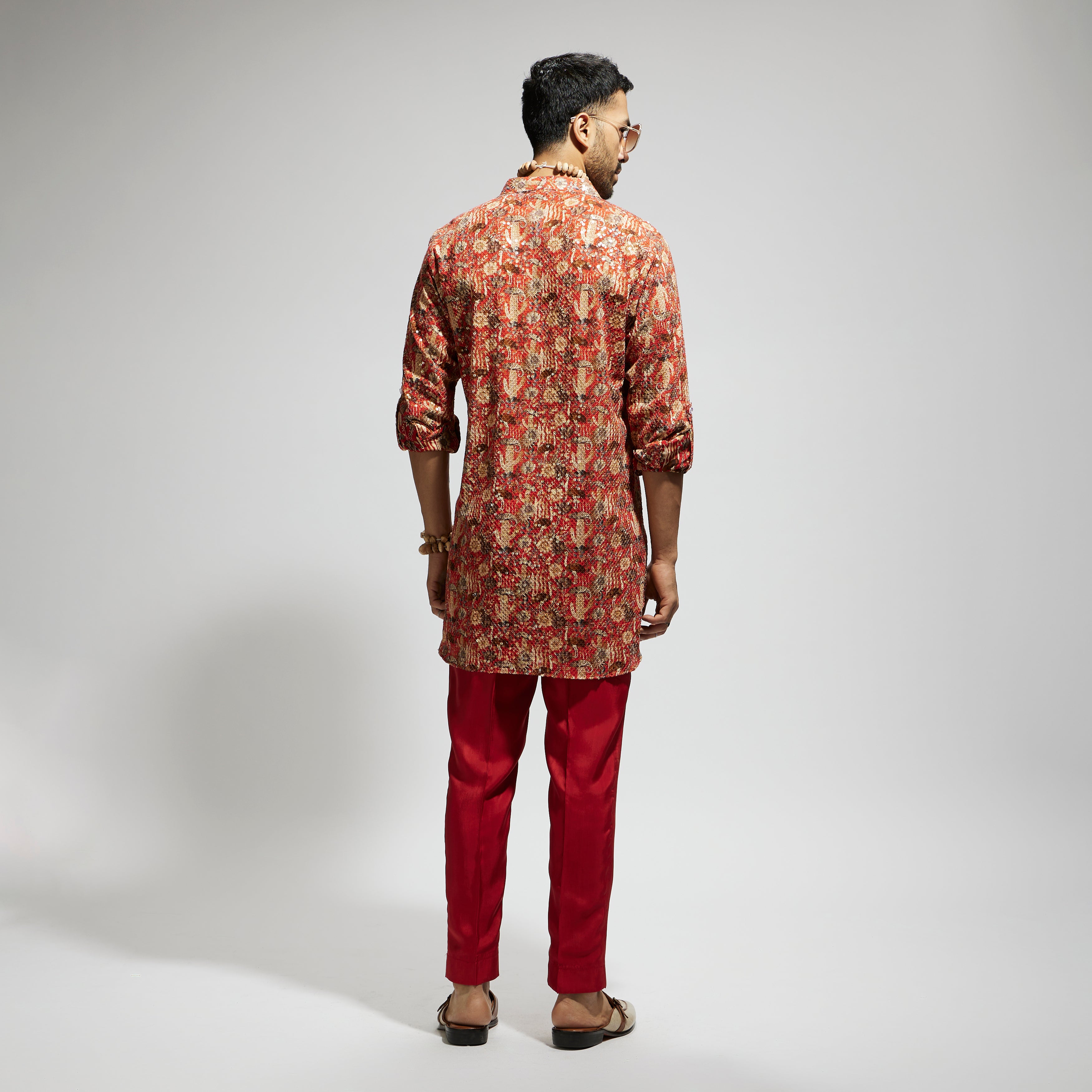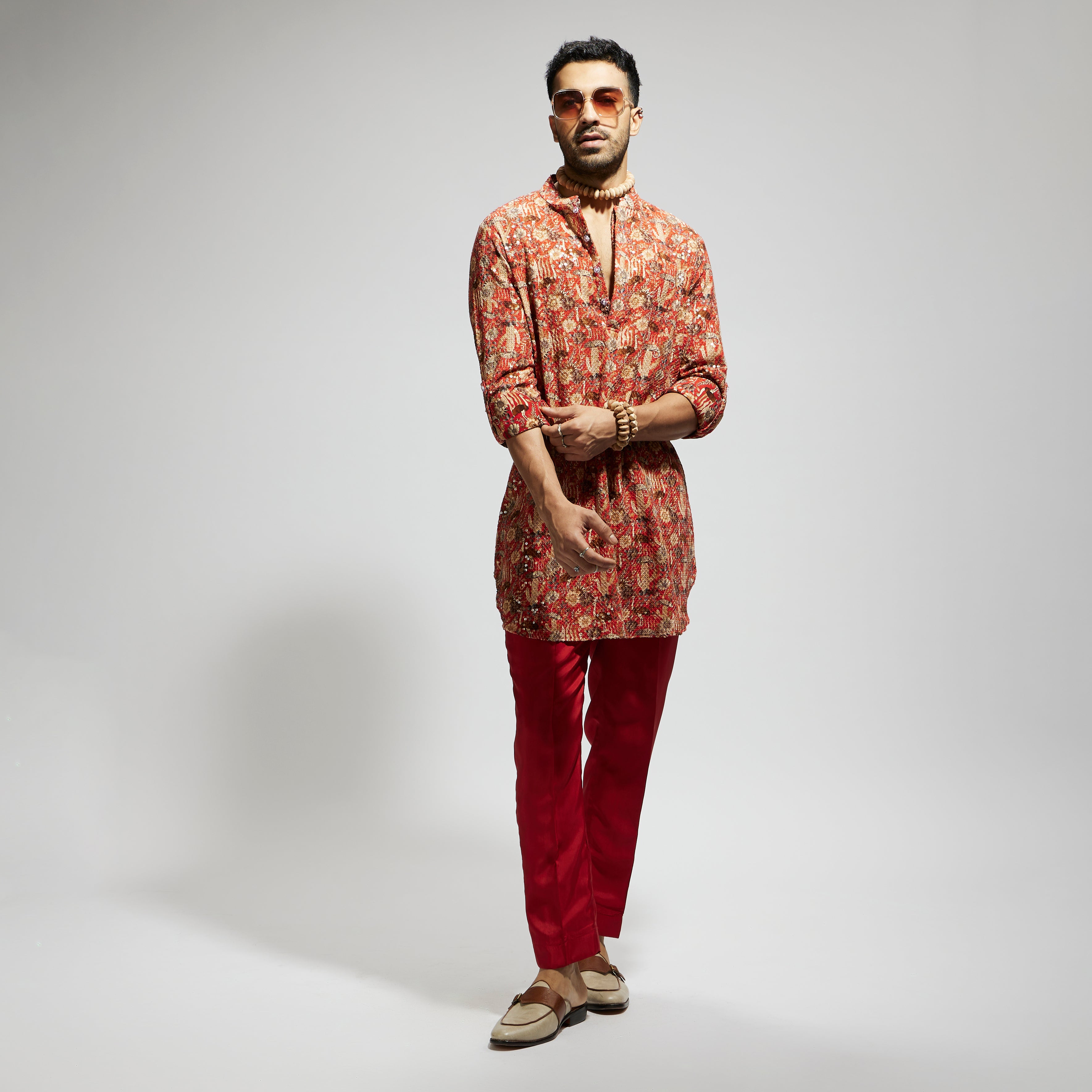 Featuring a orange jaal embellished rolled up sleeves kurta, fabric crepe, and Component 1.