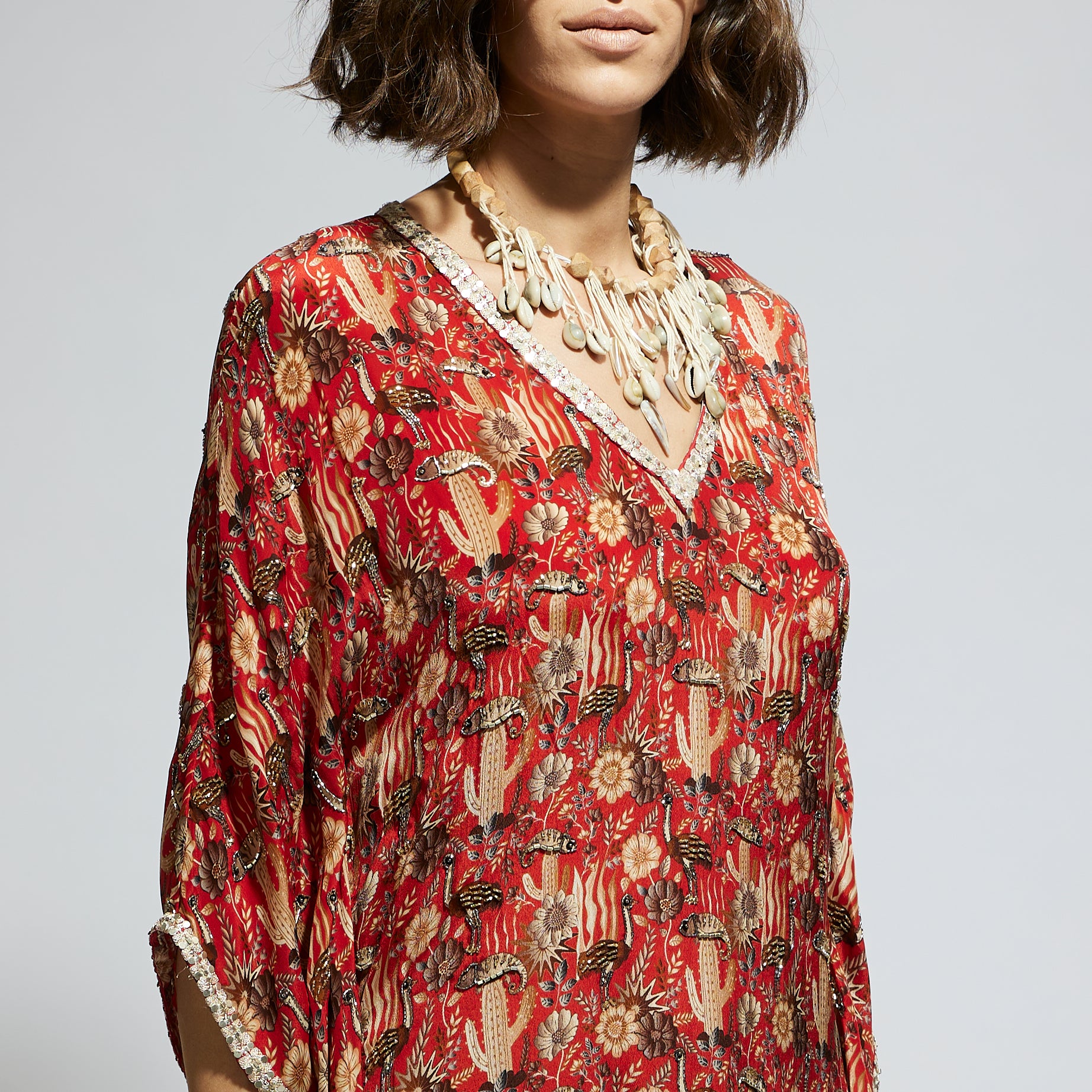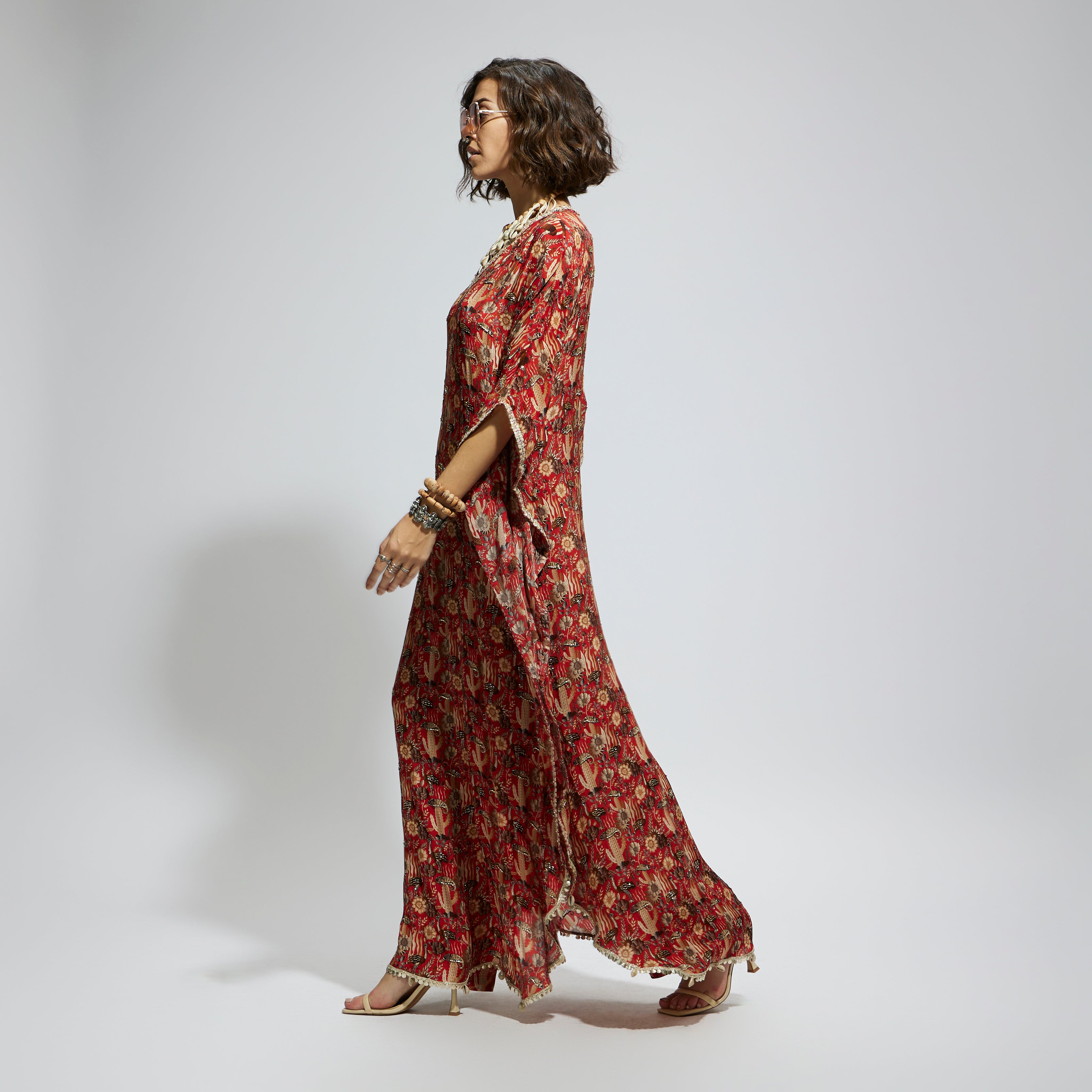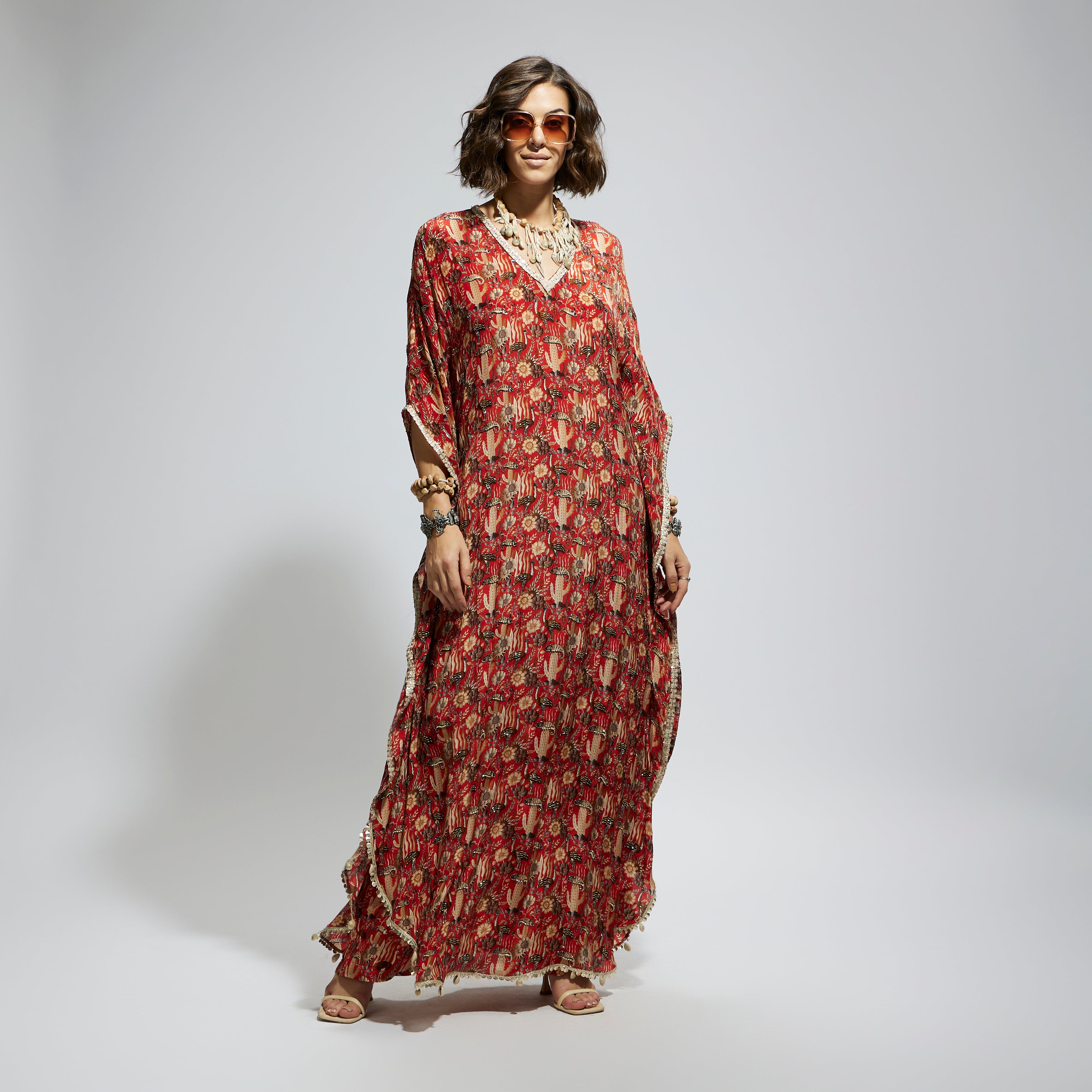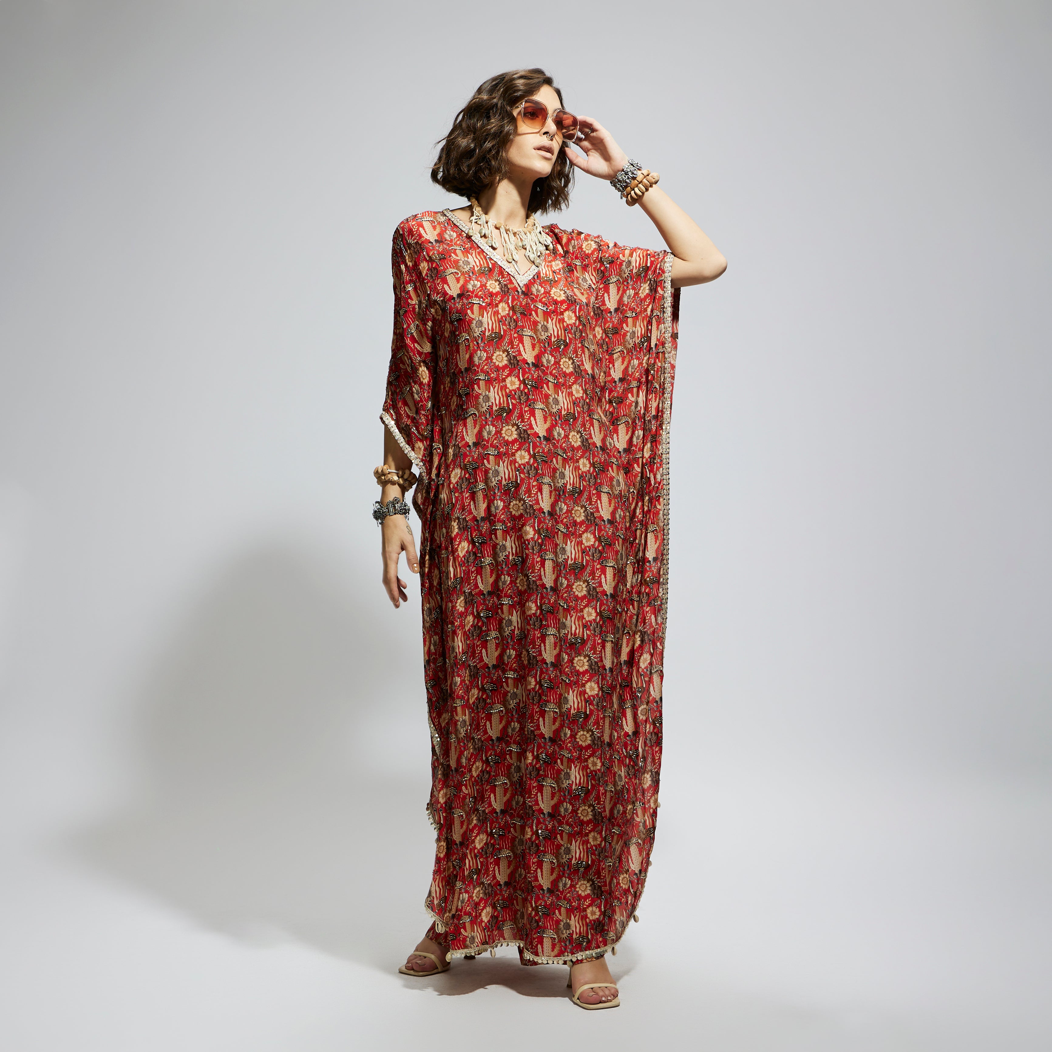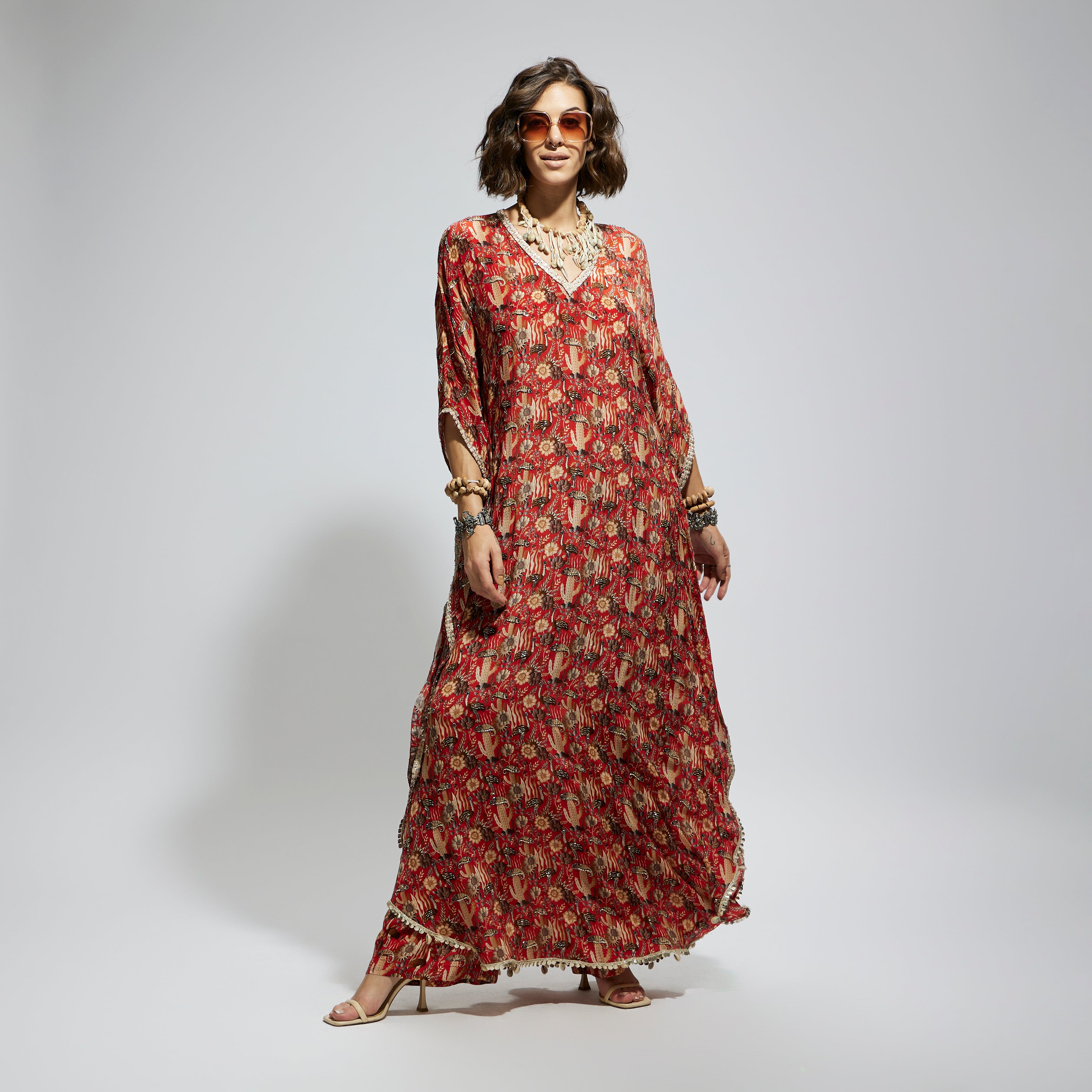 ORANGE JAAL V NECK HEAVILY EMBELLISHED KURTA SET