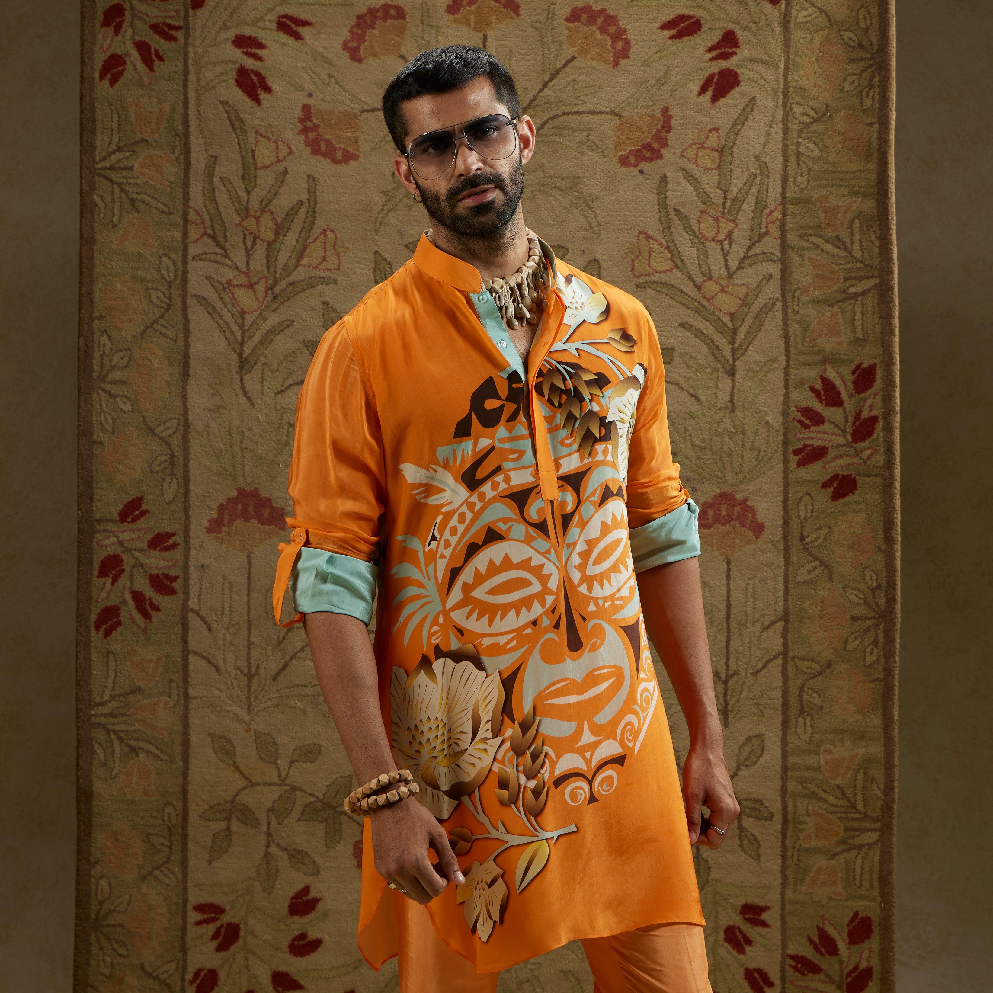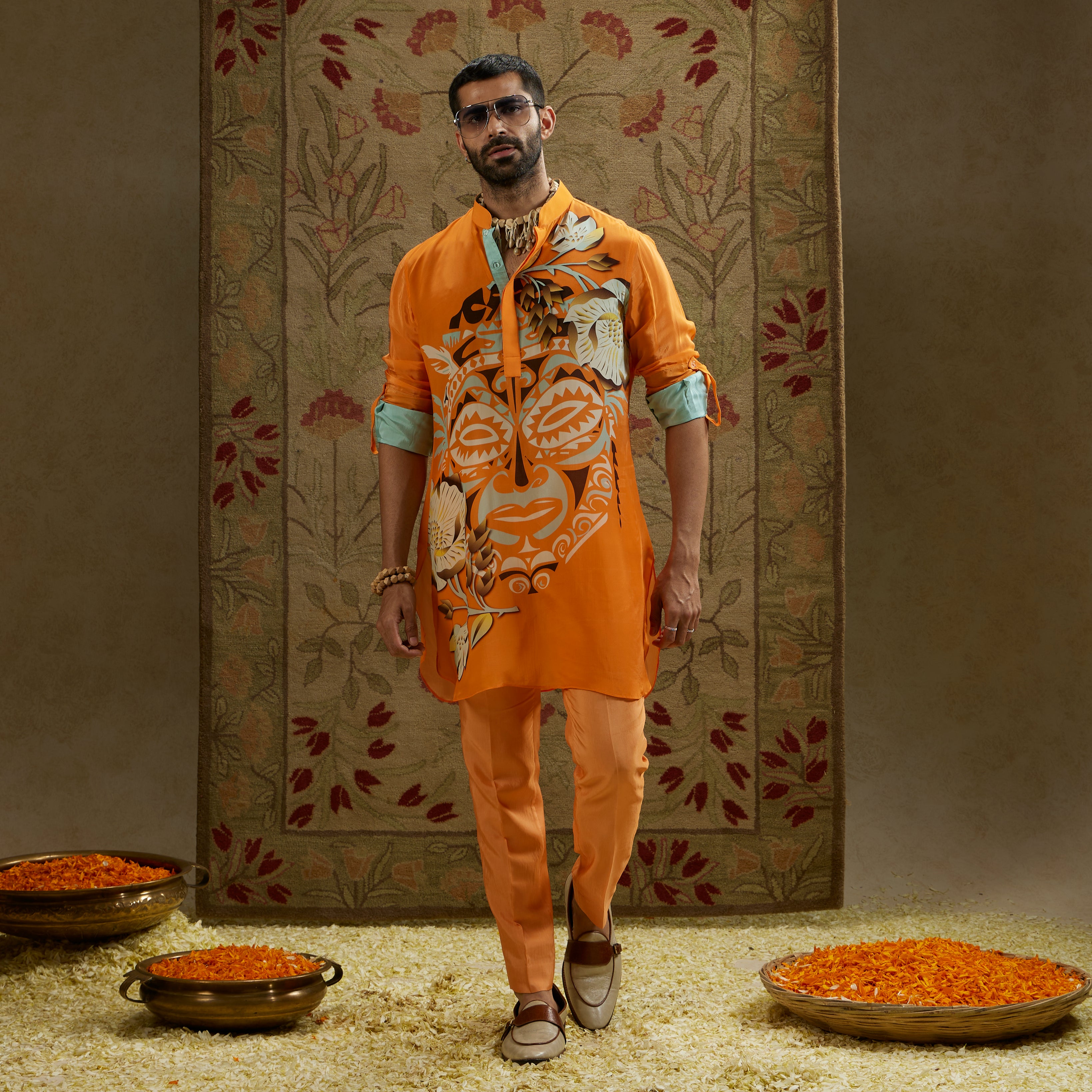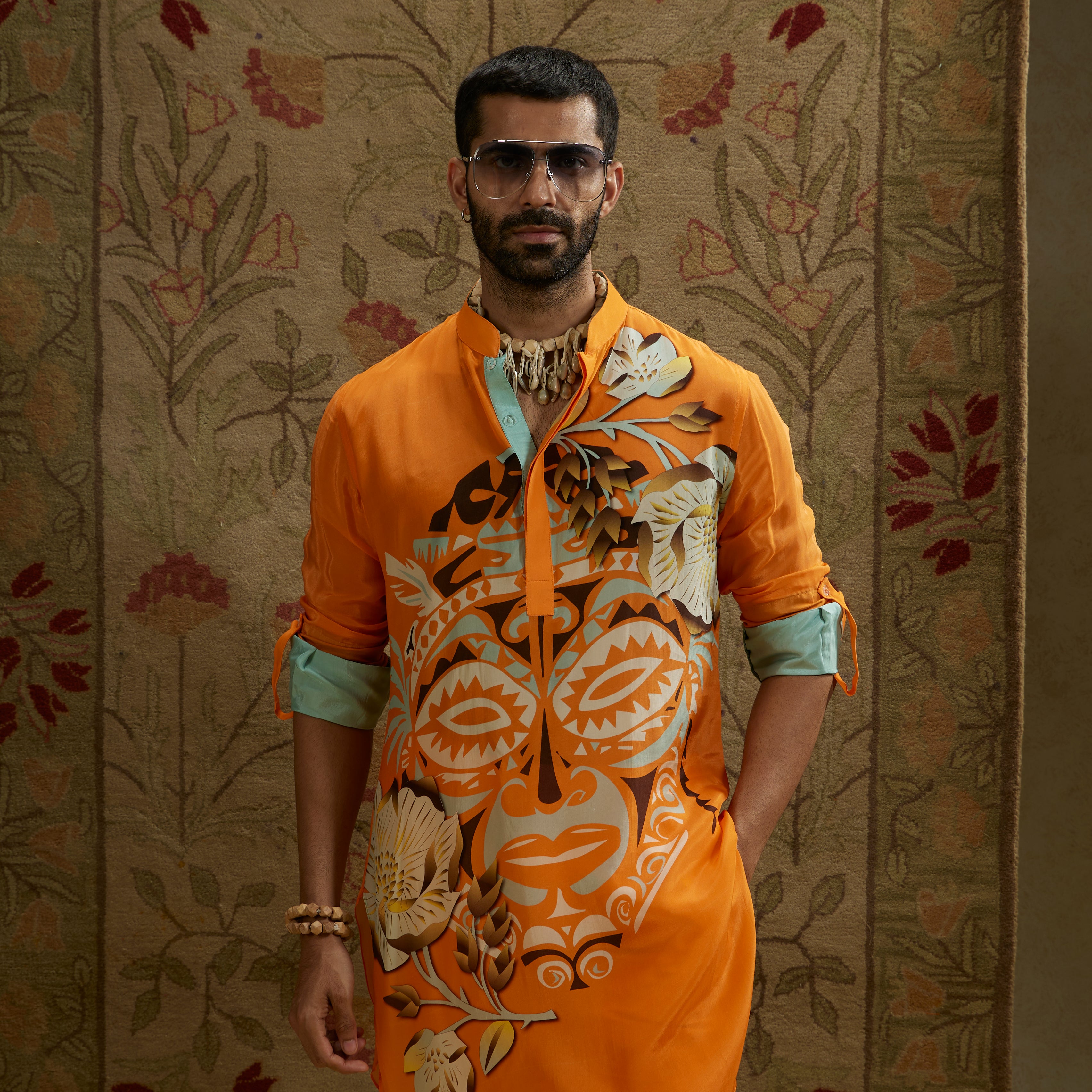ORANGE MASK PRINT ROLLED UP SLEEVES