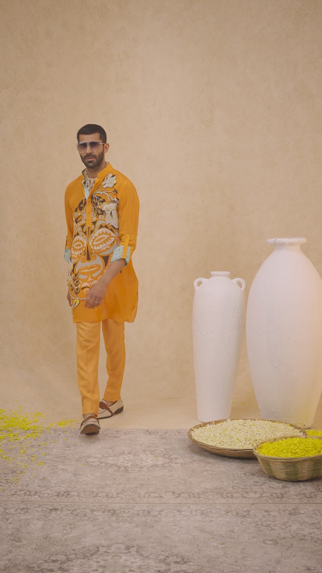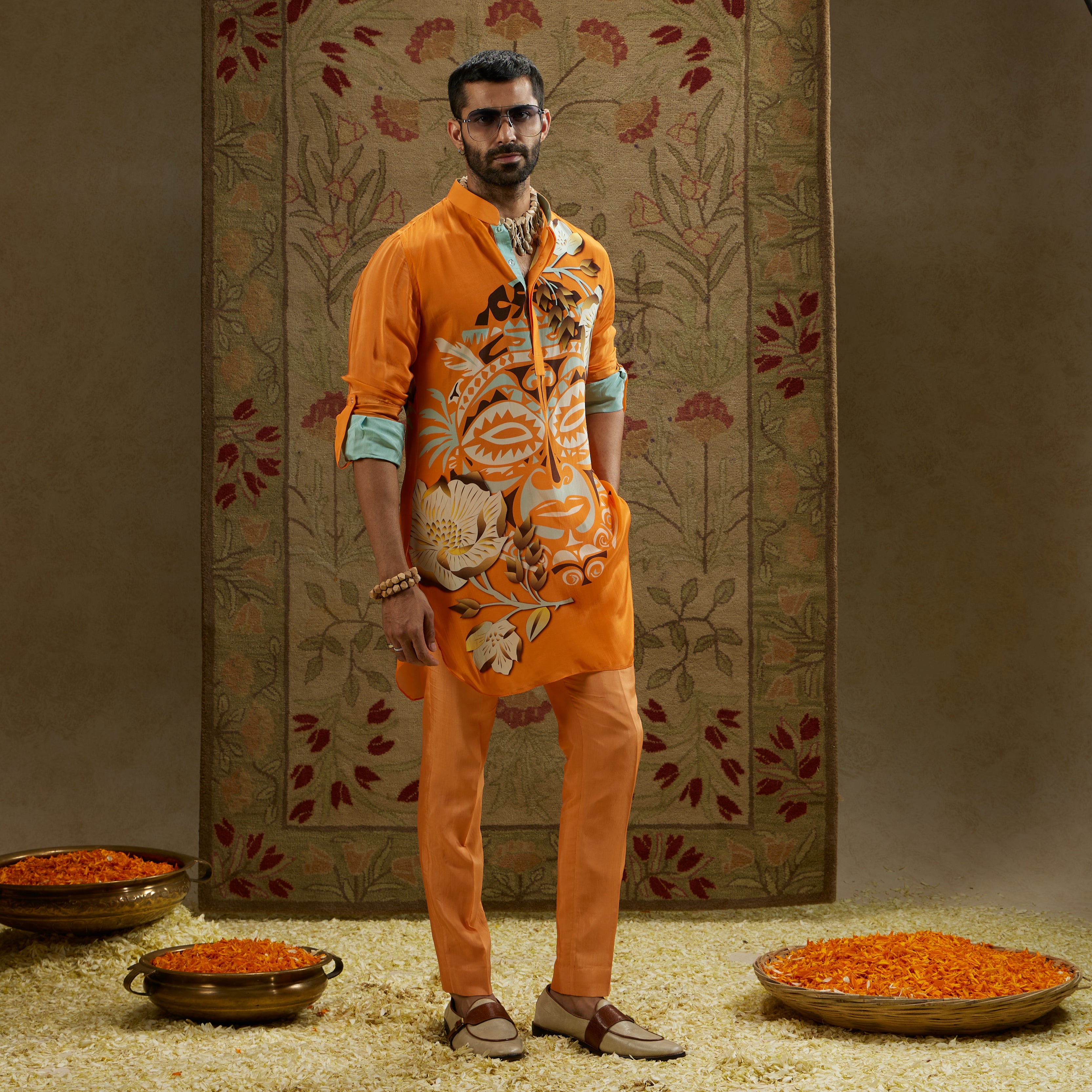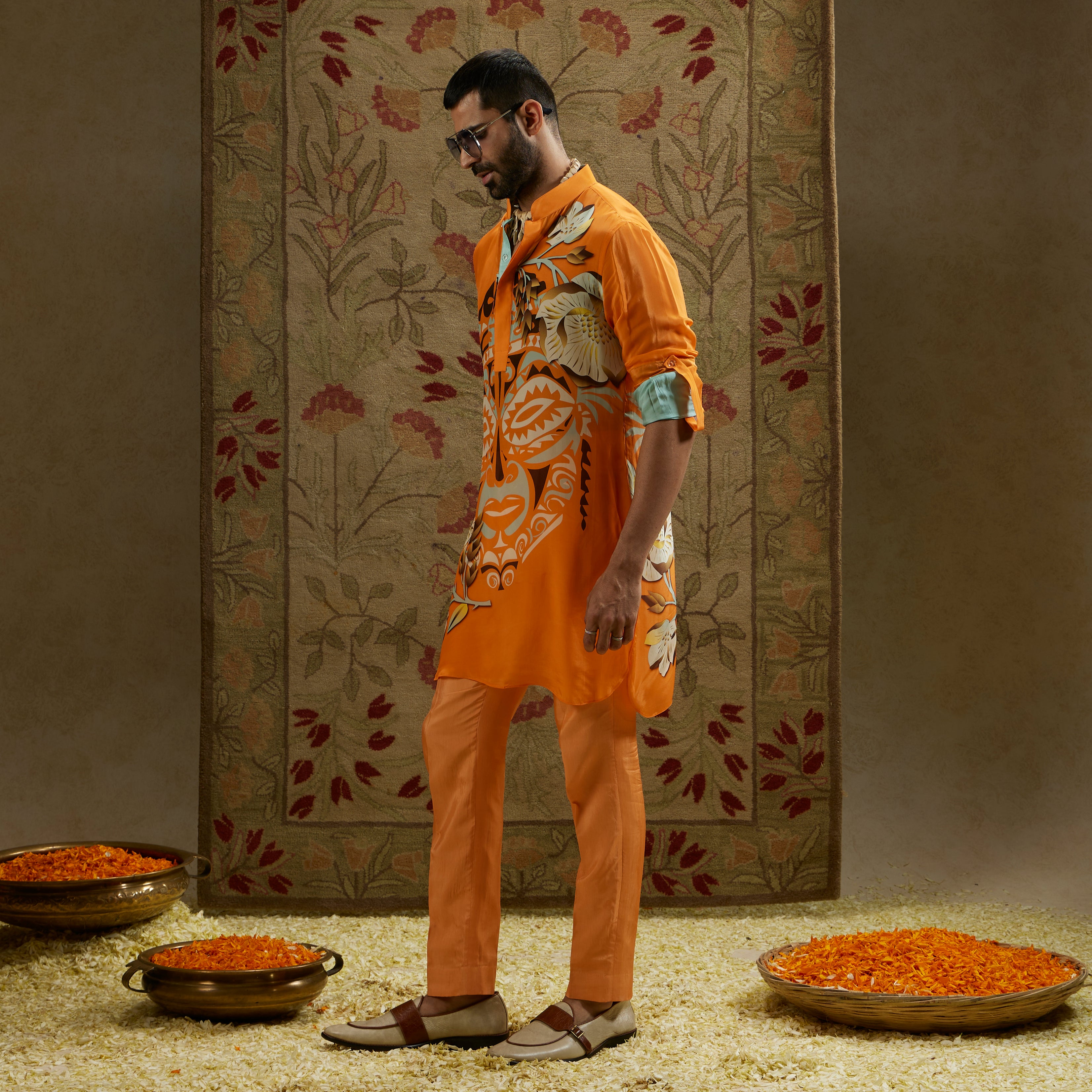 ORANGE MASK PRINT ROLLED UP SLEEVES