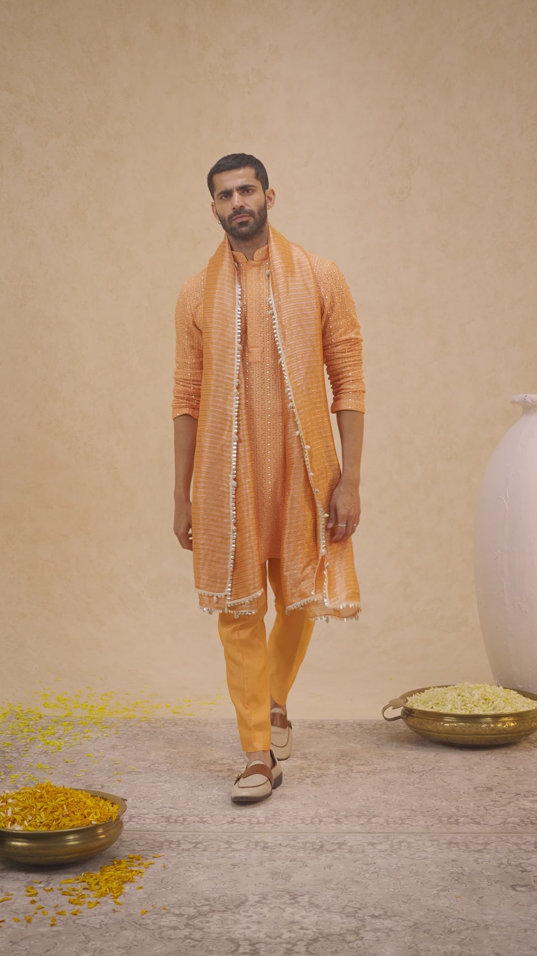 ORANGE METAL EMBELLISHED LUCKNOWI KURTA WITH PANTS