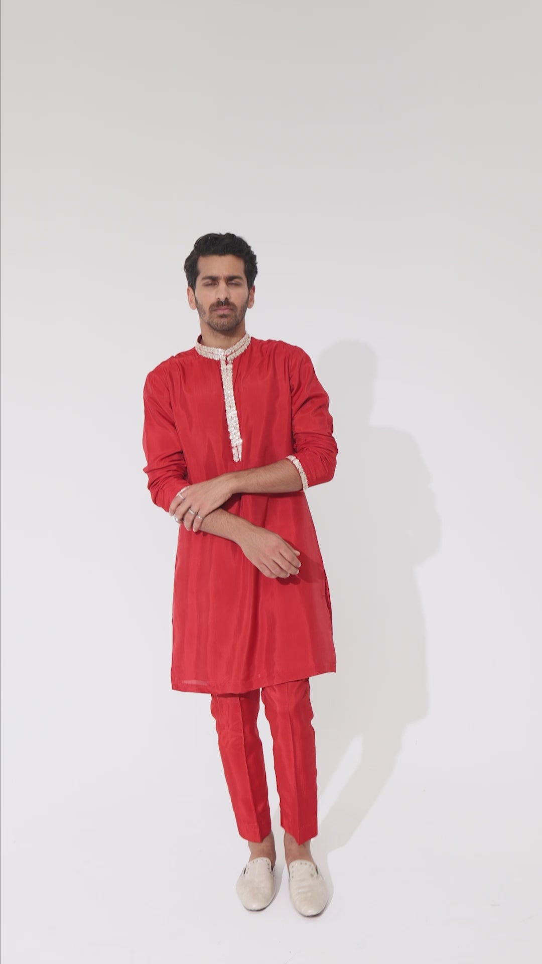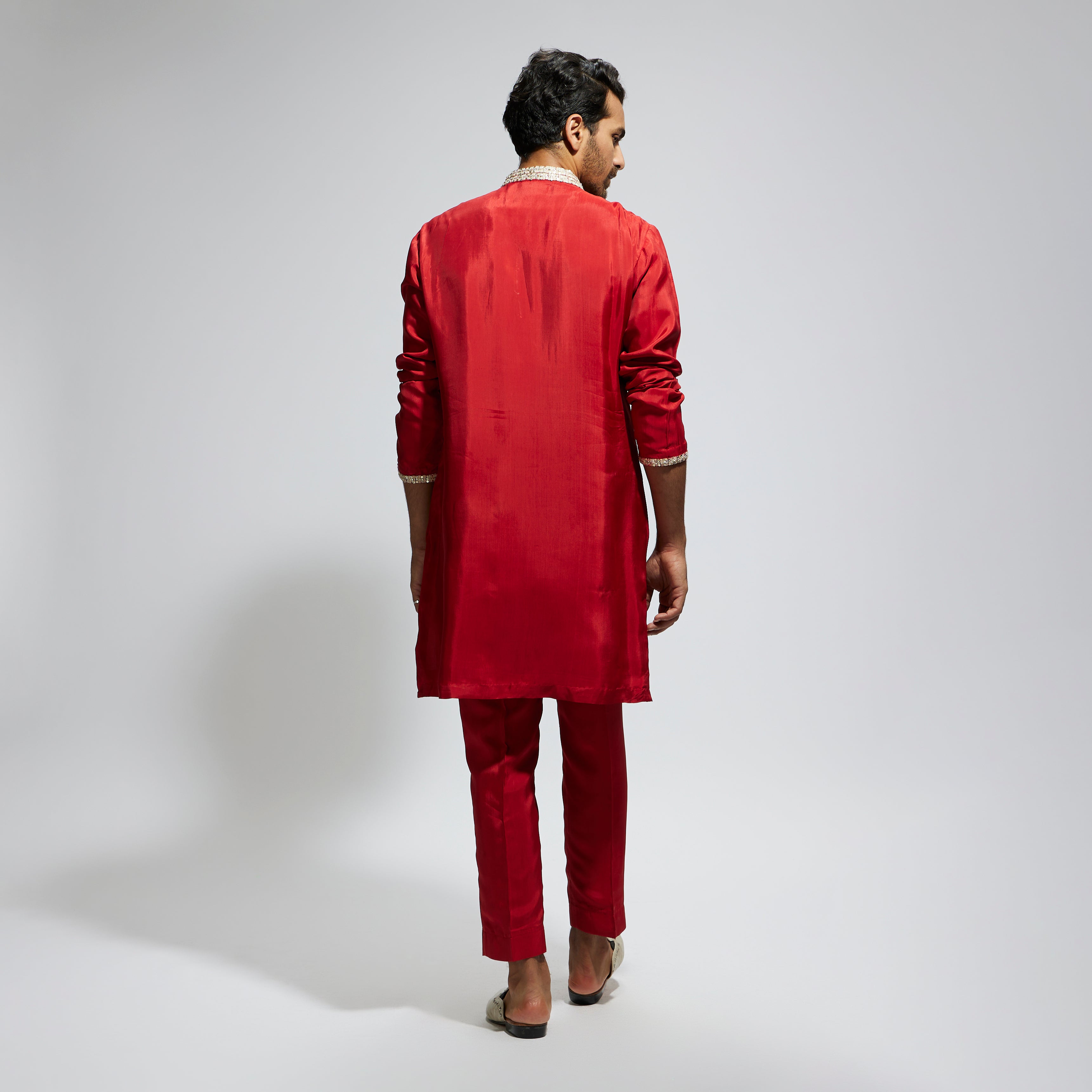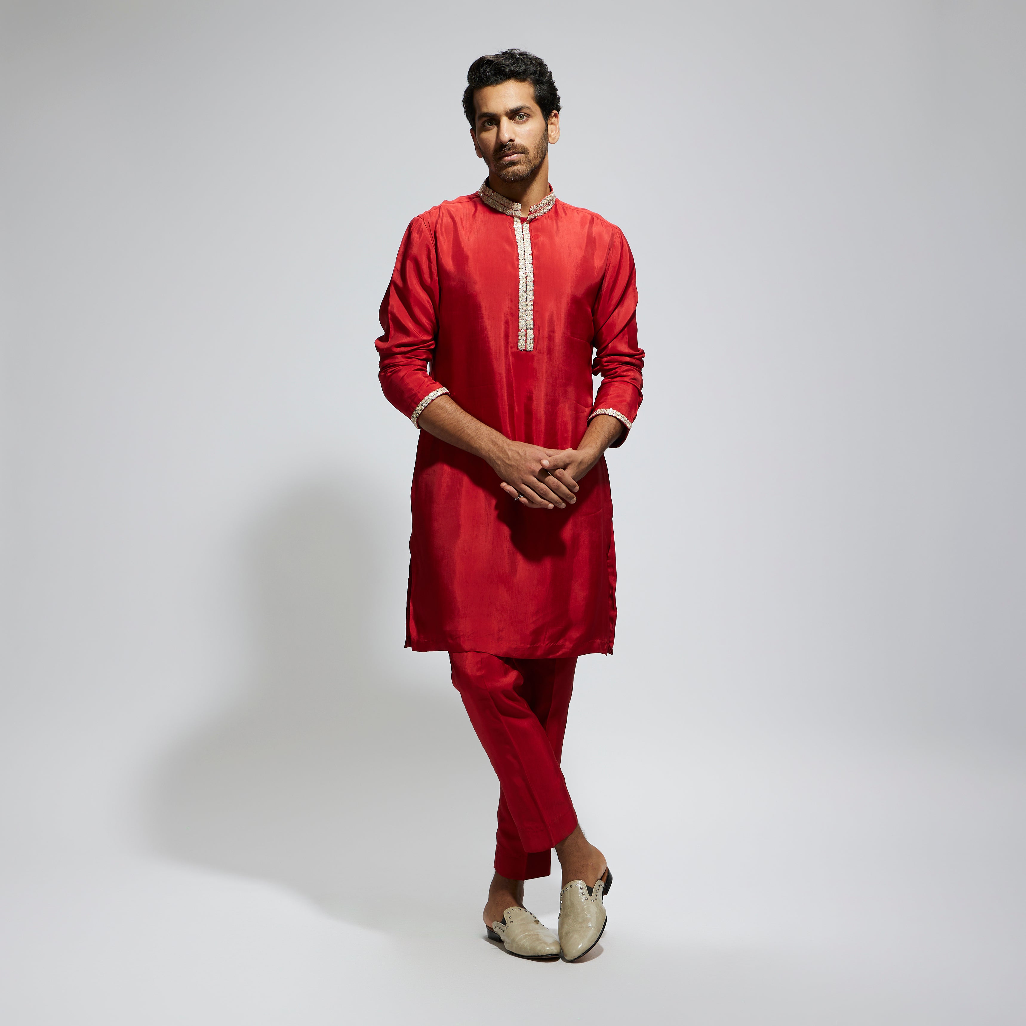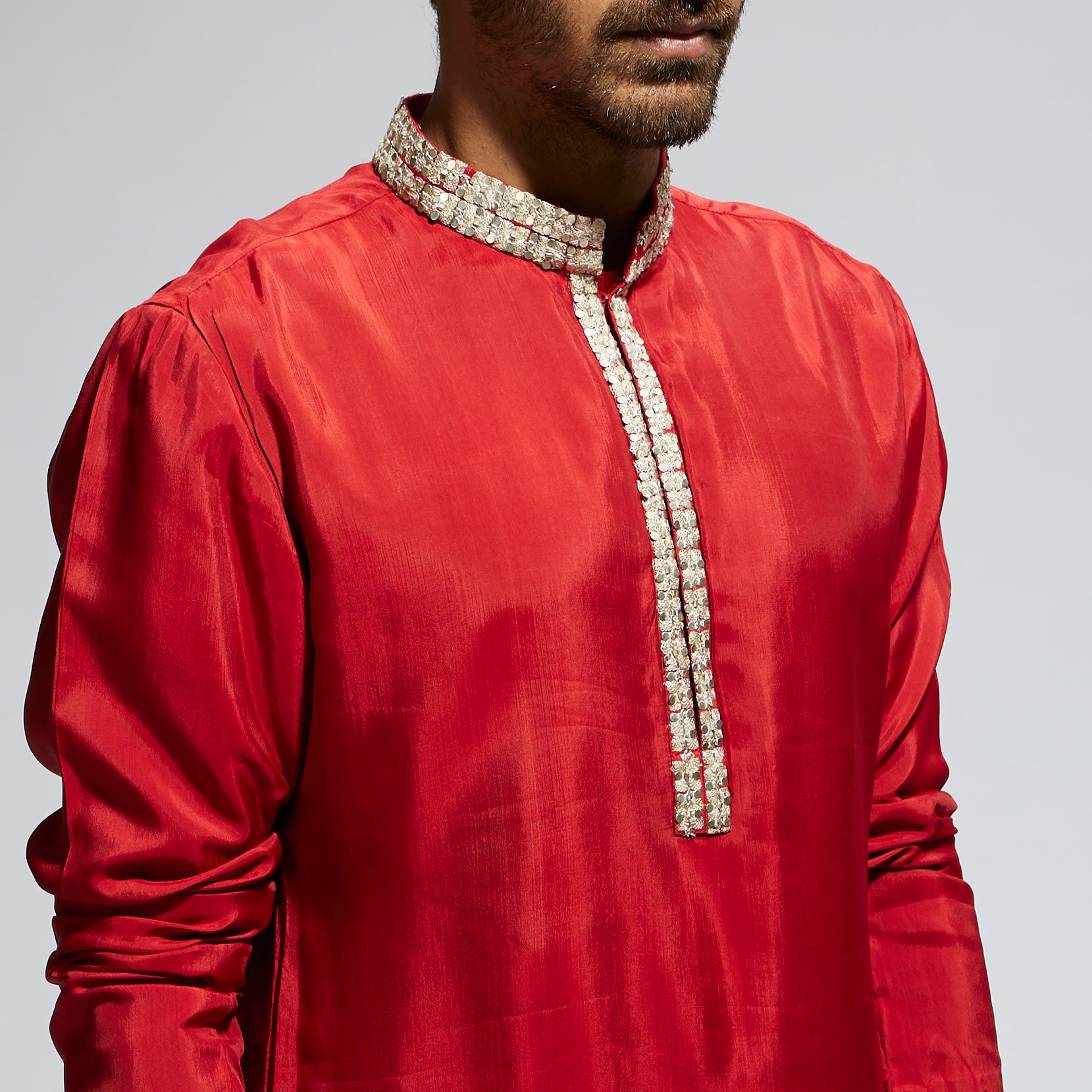 Featuring a orange solid kurta with embellished collar and pant, fabric habutai, and Component 2.