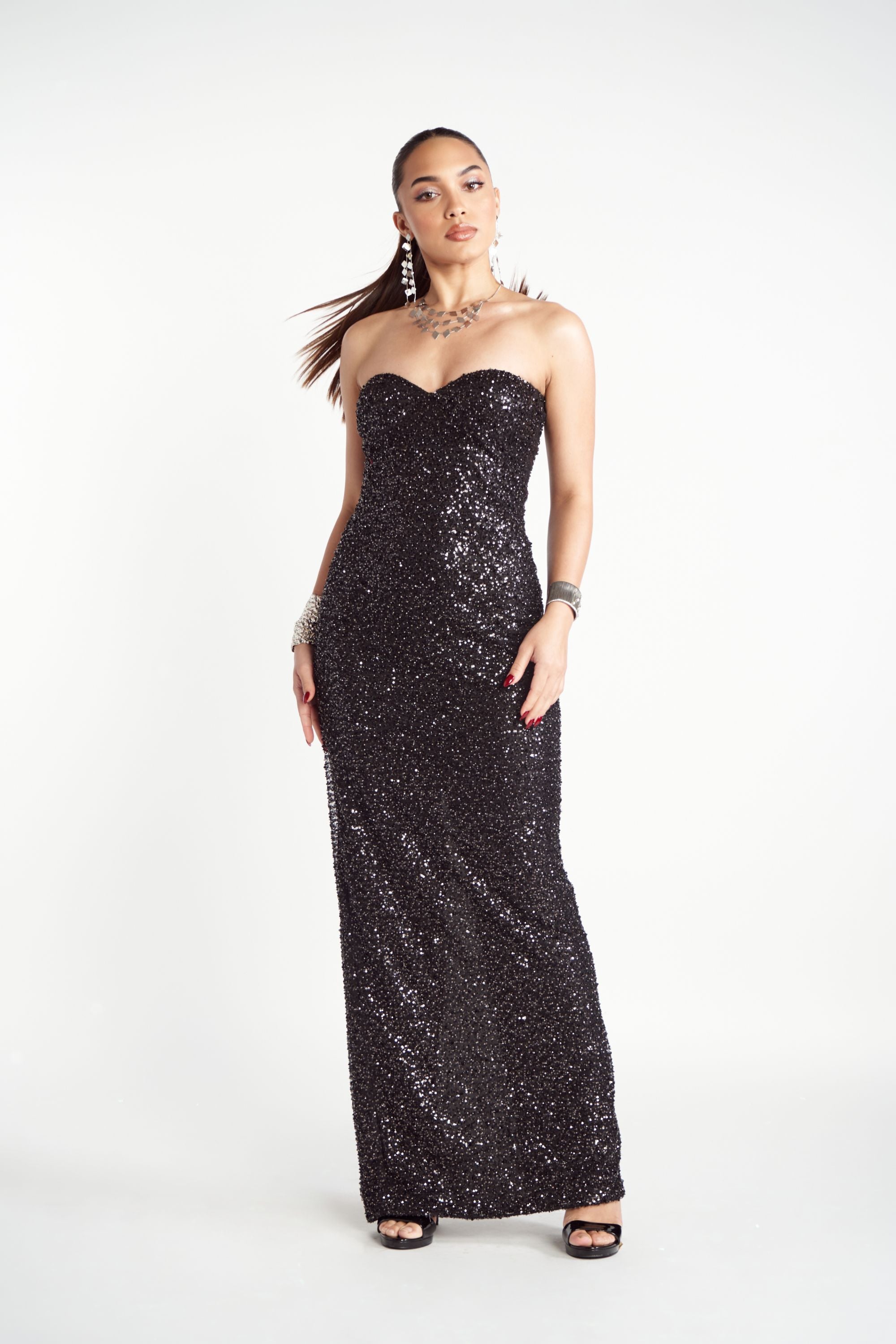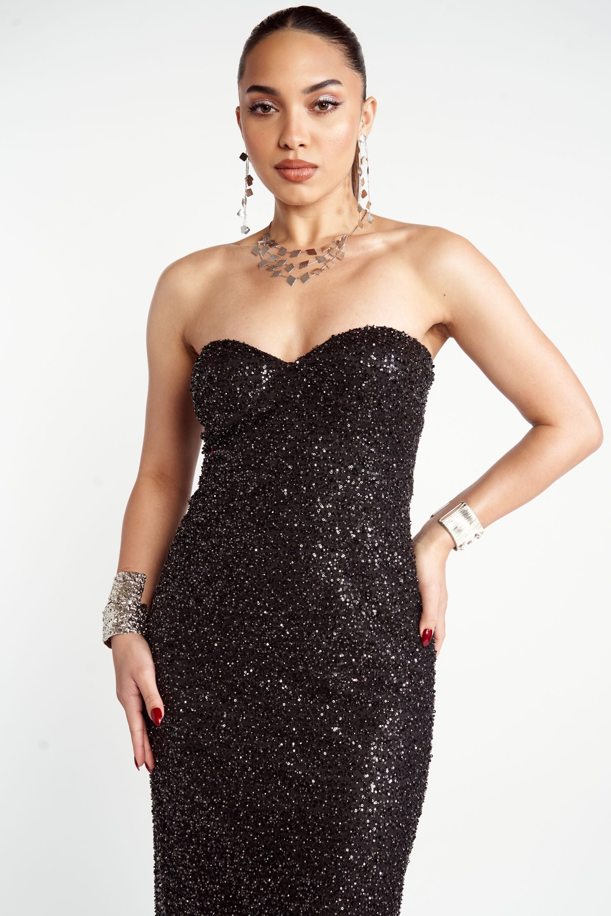 This Bodycon Dress is a stunning combination of sleek design and dazzling sparkle. Made from luxurious sequinned fabric, it hugs the body beautifully, creating a flattering and confident silhouette.
