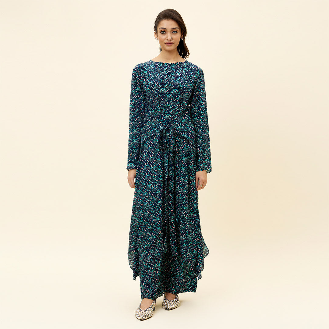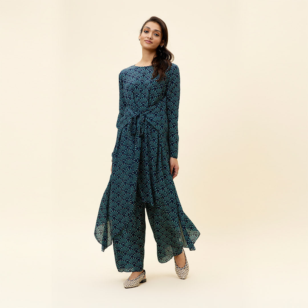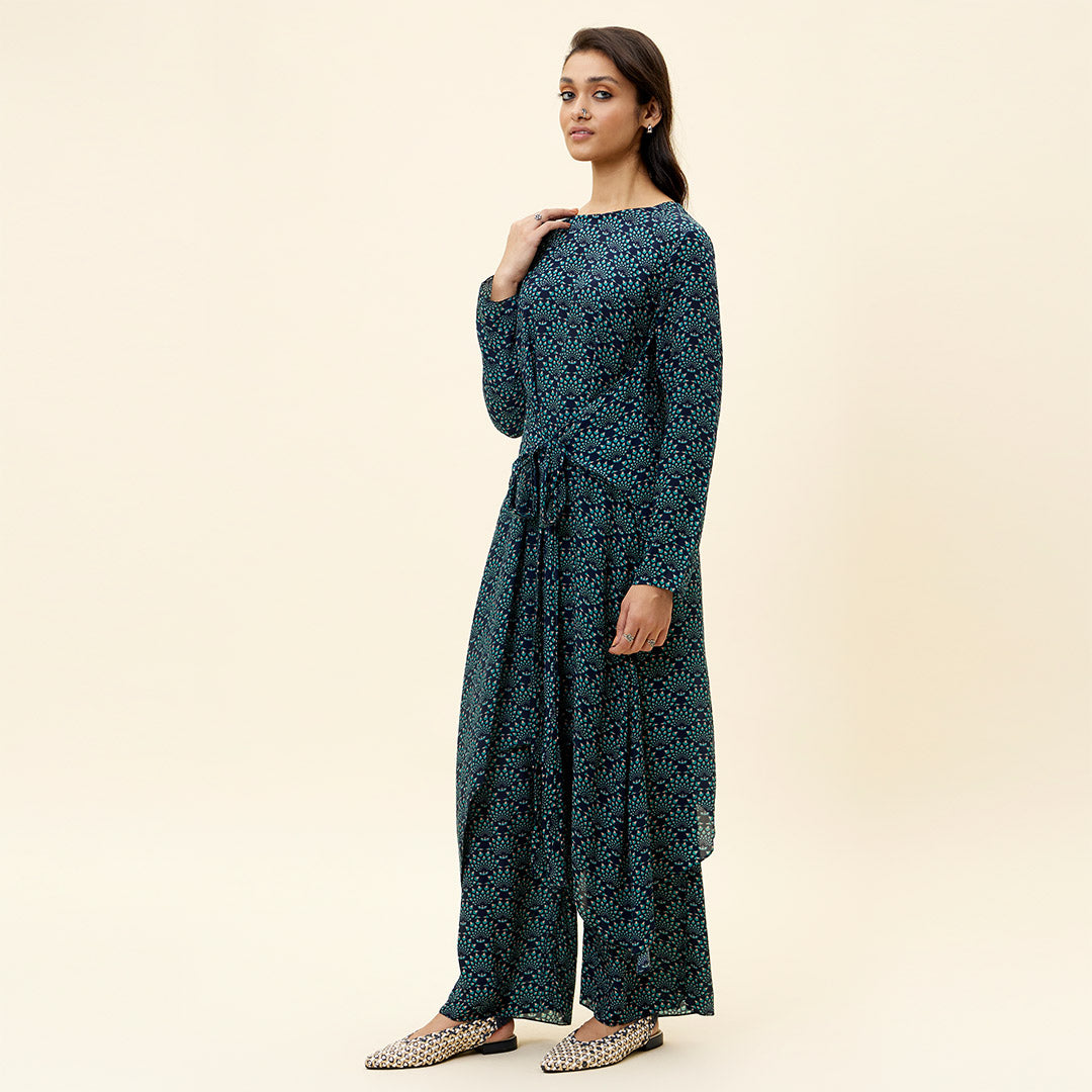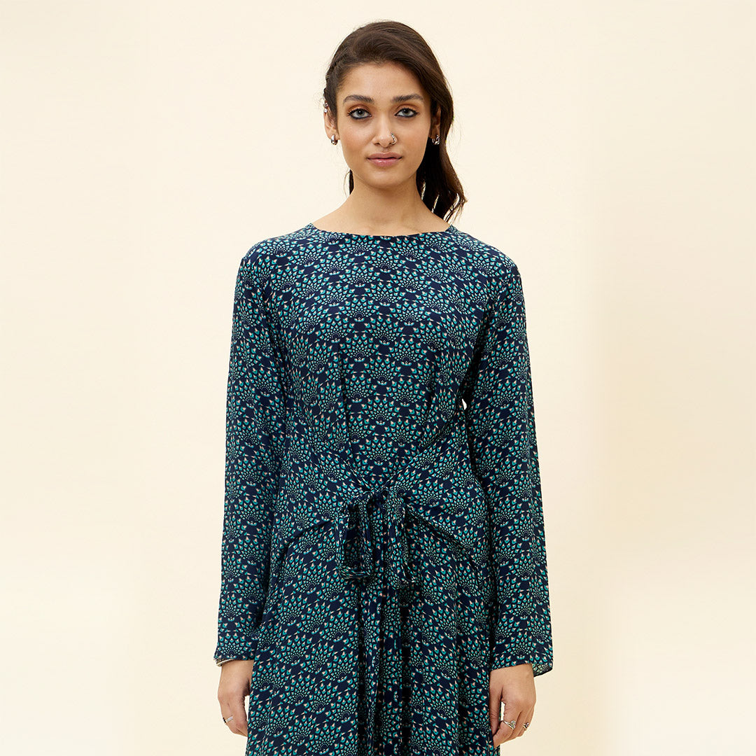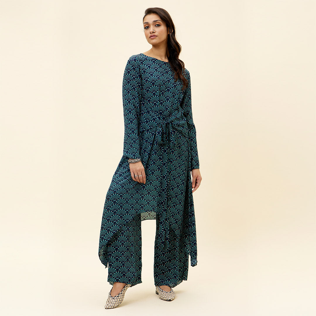 MAF FEATHER PRINT FRONT TIE-UP TUNIC SET