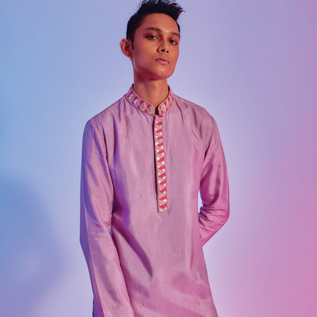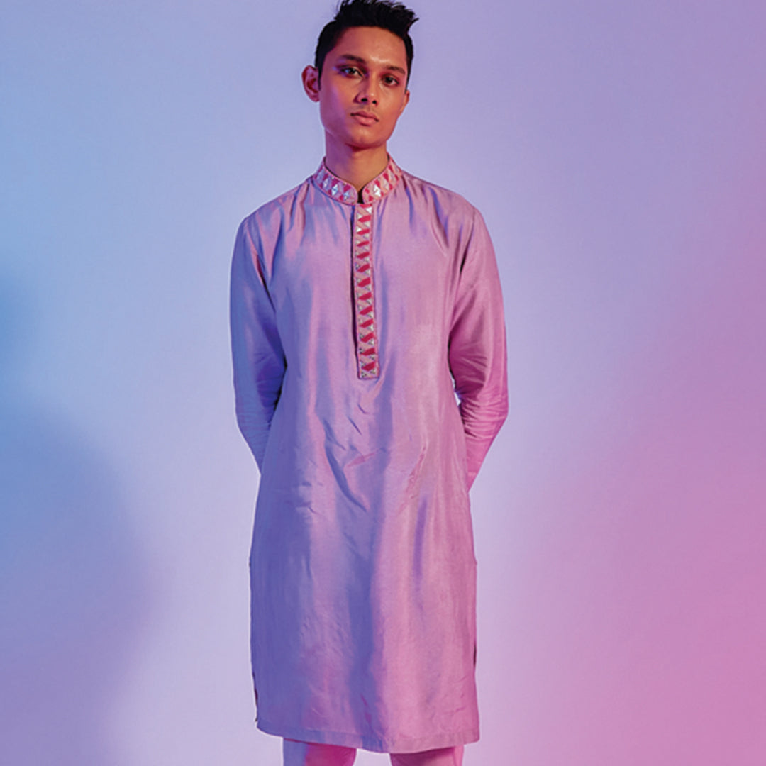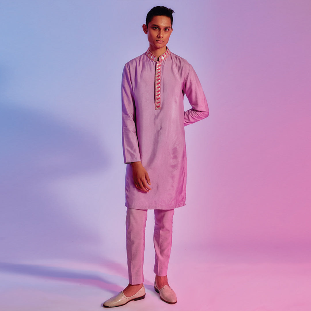 LILAC KURTA WITH EMBELLISHED COLLAR
