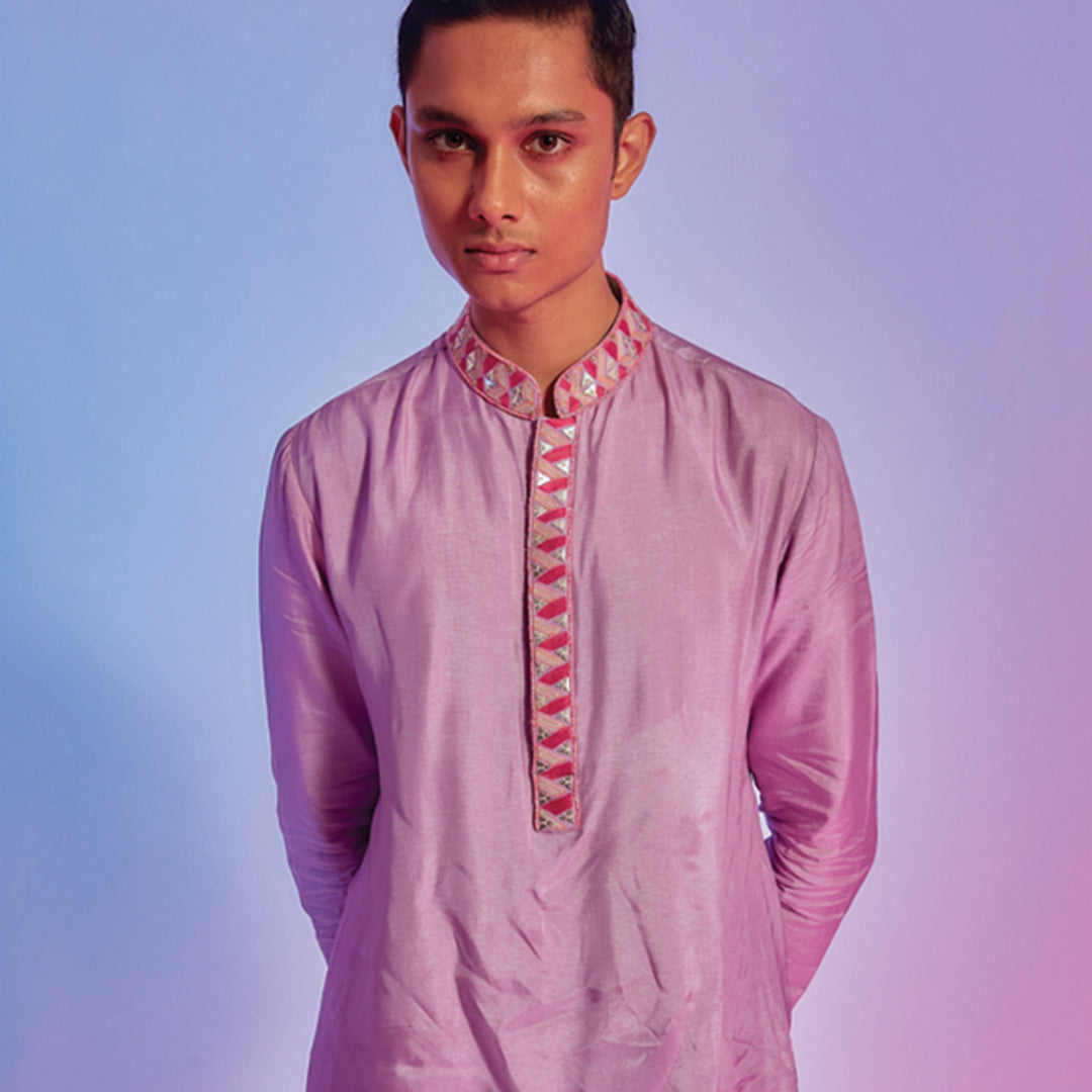 LILAC KURTA WITH EMBELLISHED COLLAR AND KURTA PATTI