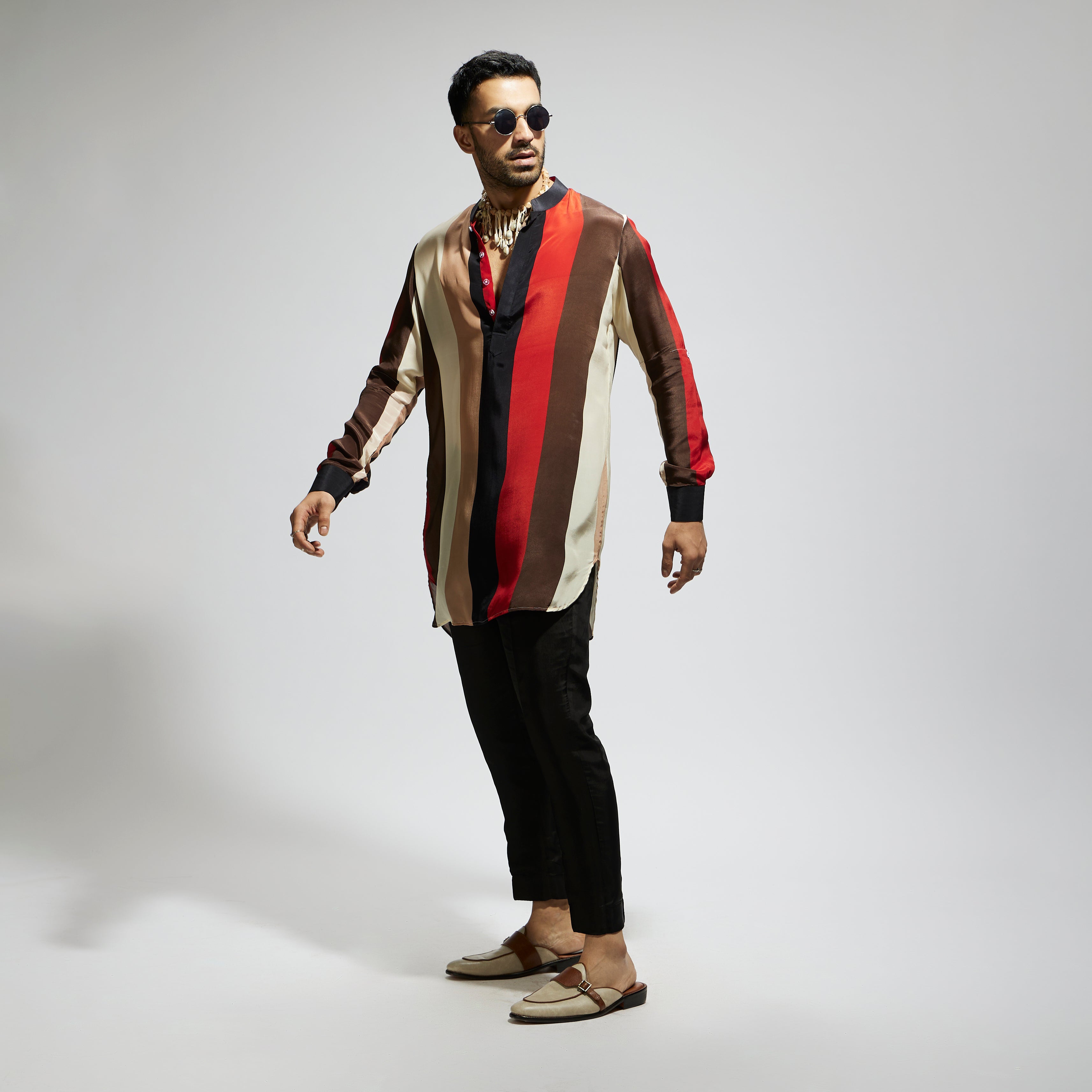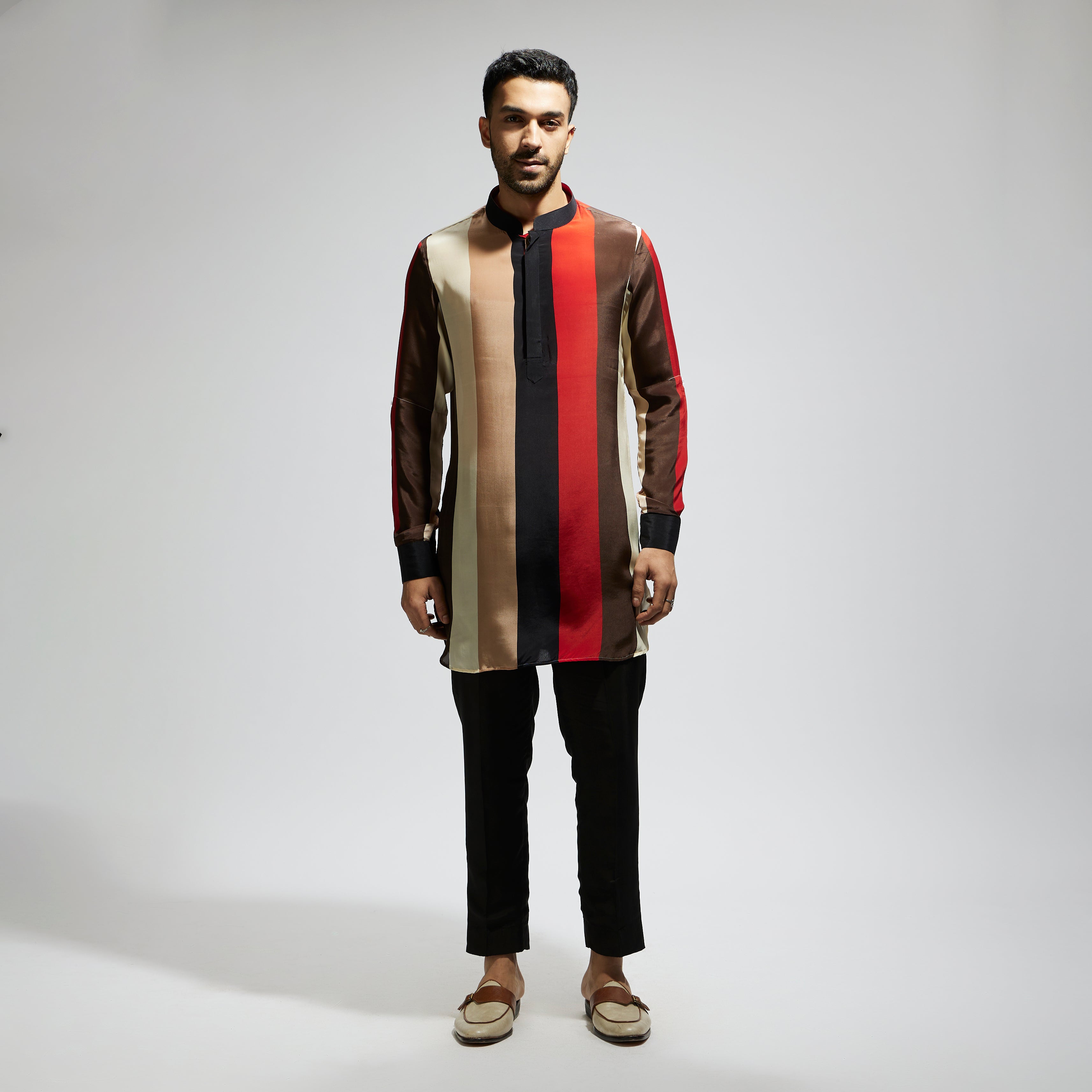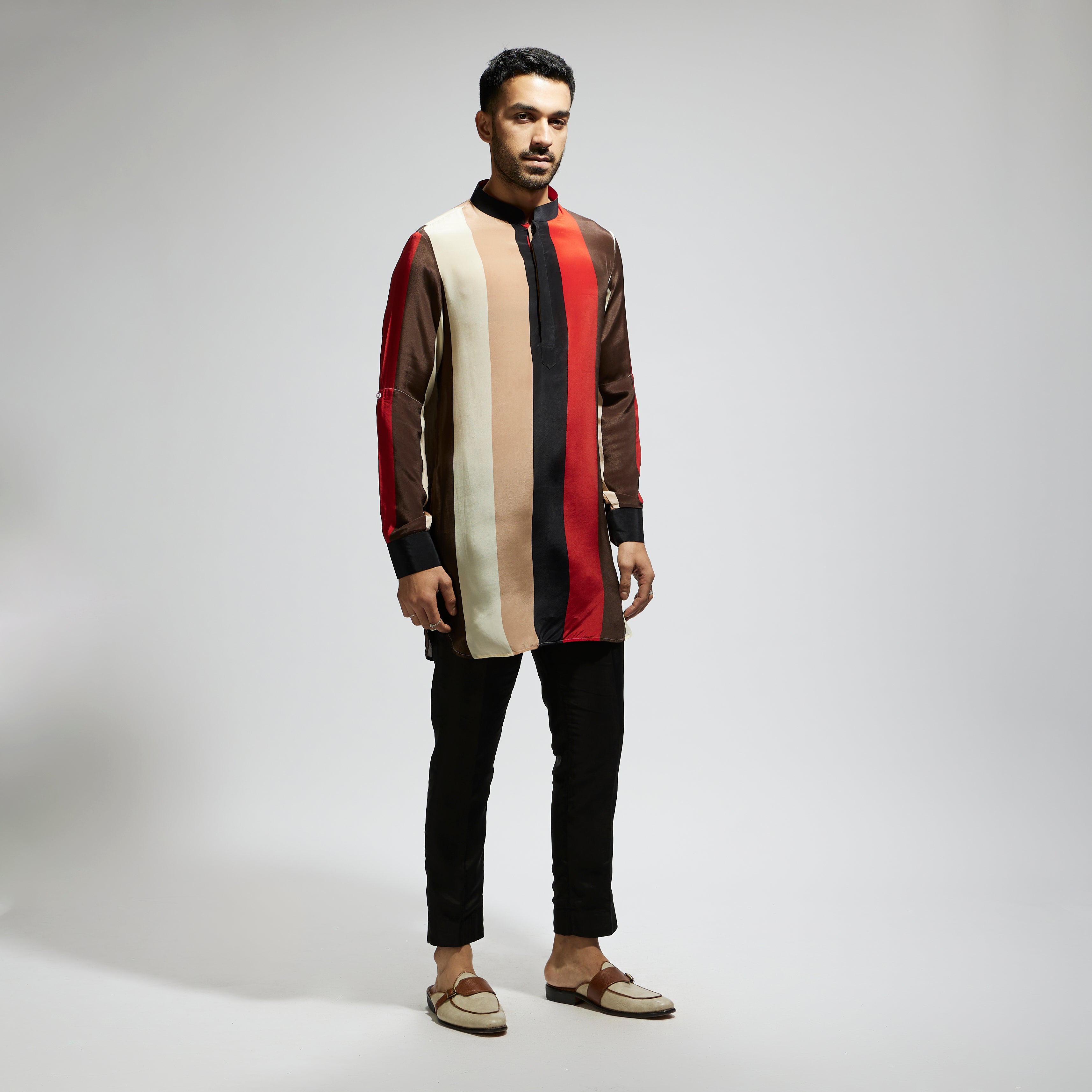 SAMSARA: STRIPE ROLLED UP SLEEVES KURTA