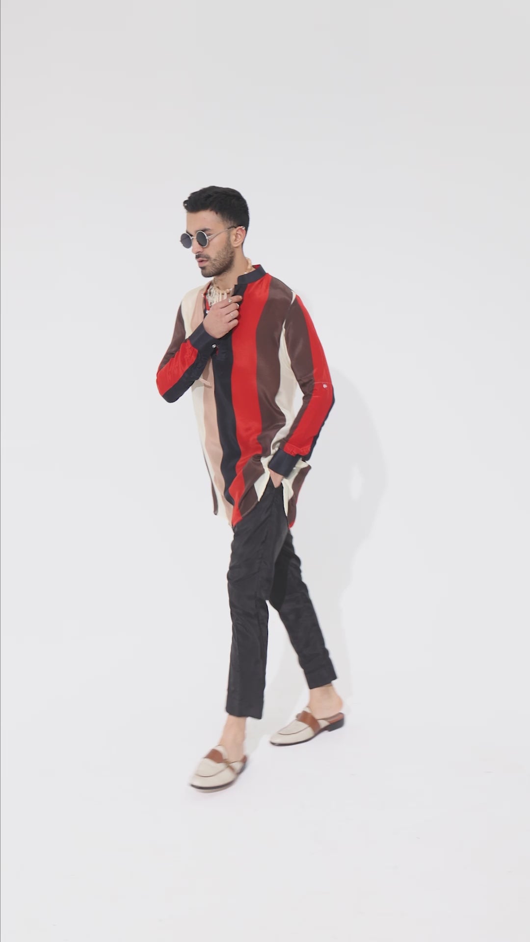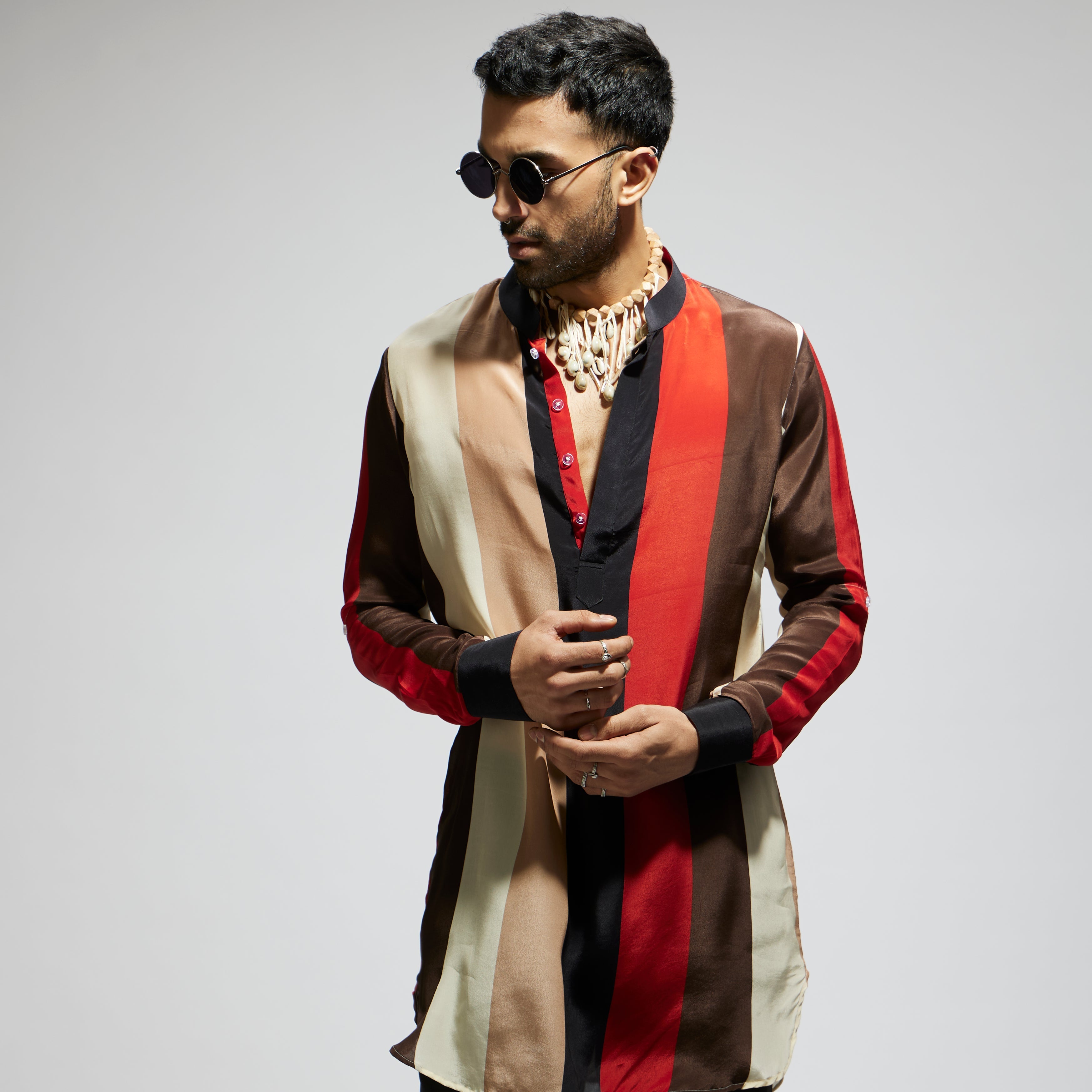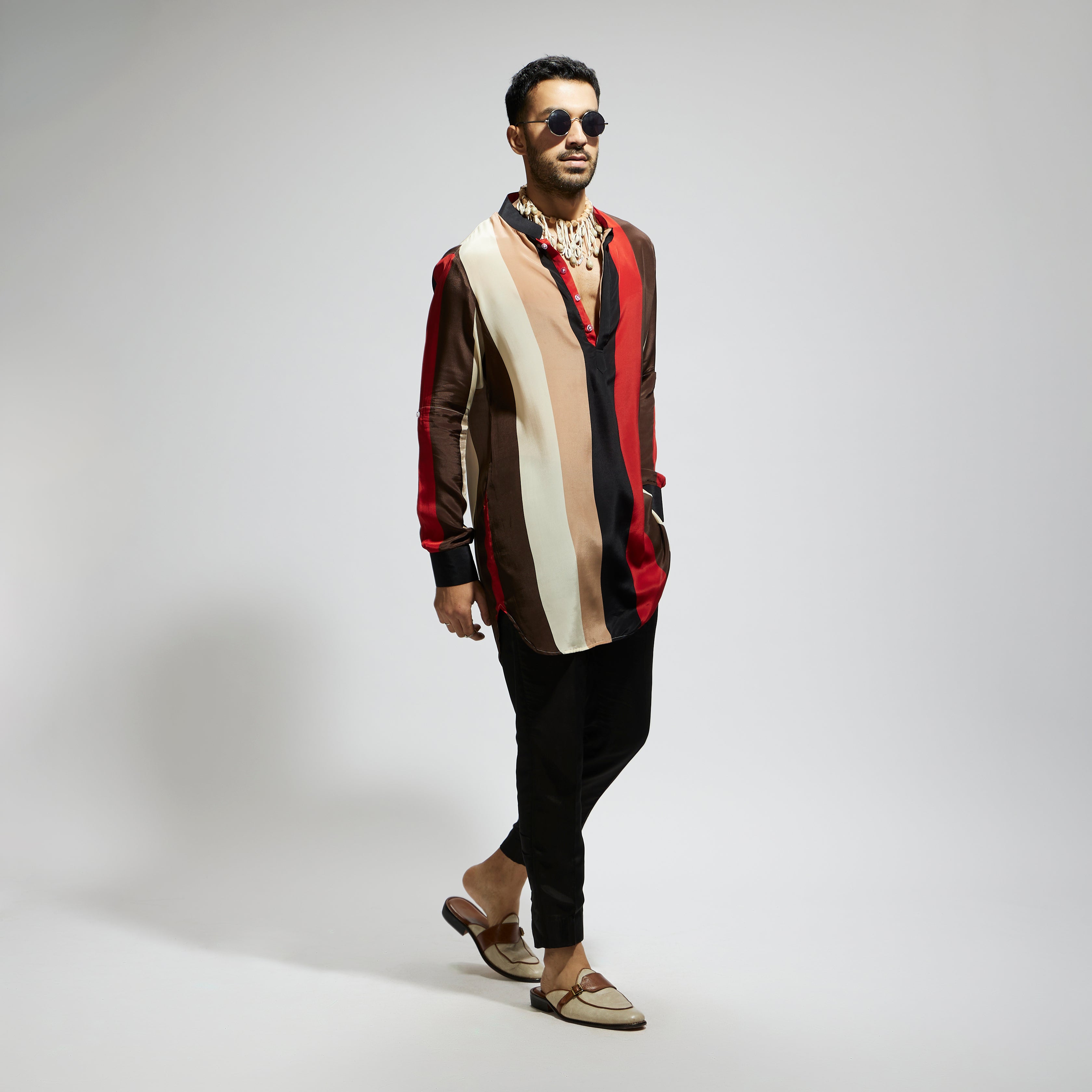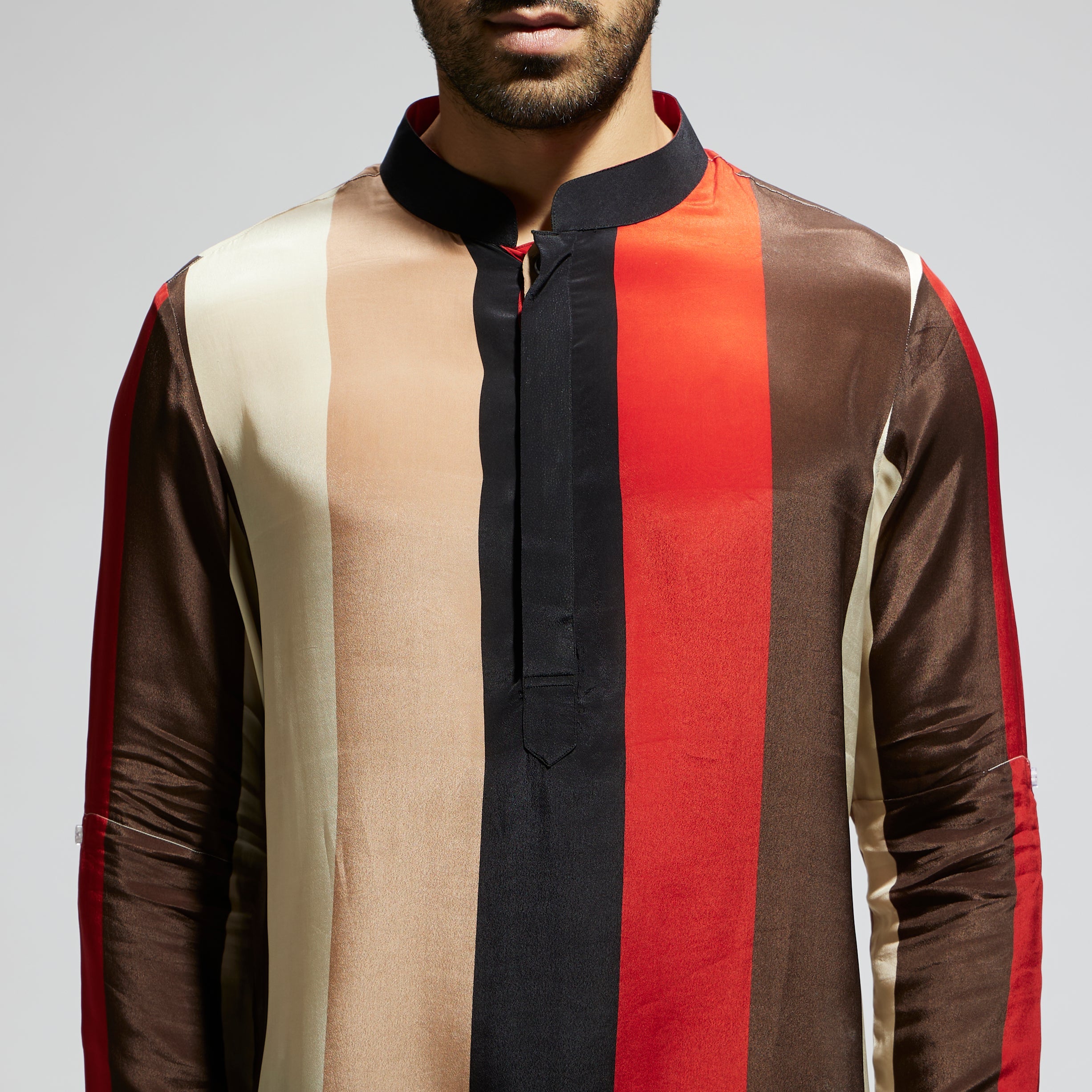 SAMSARA: STRIPE ROLLED UP SLEEVES KURTA