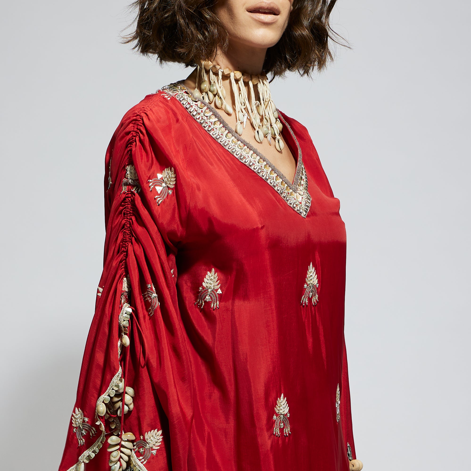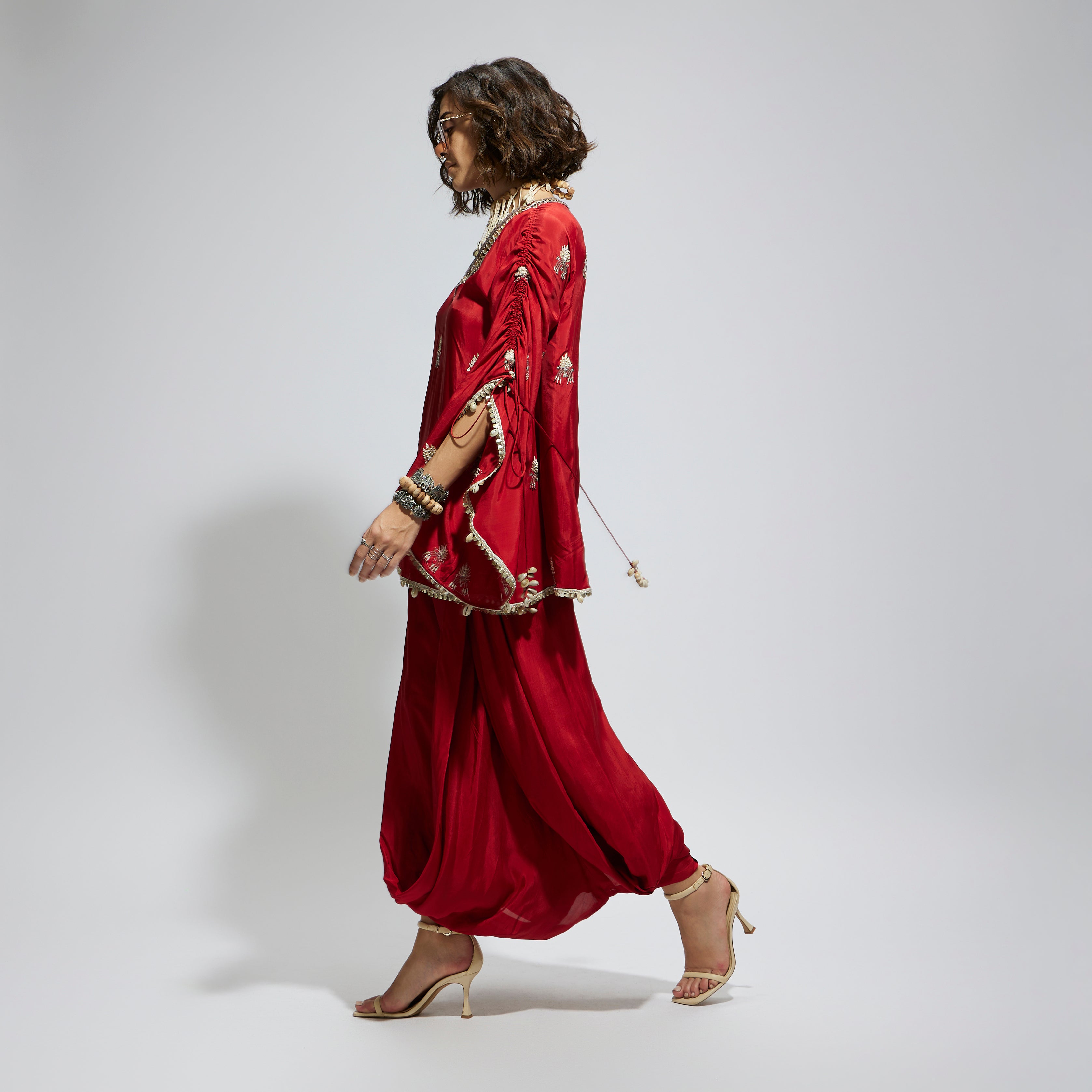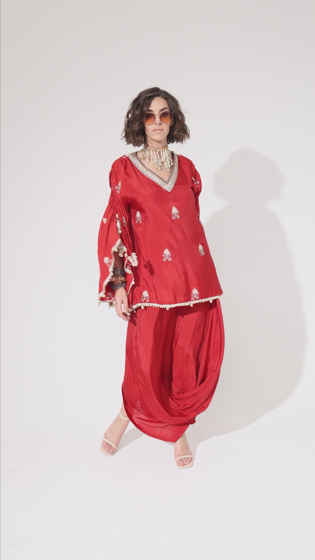 Terracotta embellished cape top and drape skirt, Fabric Habutai Component 2.