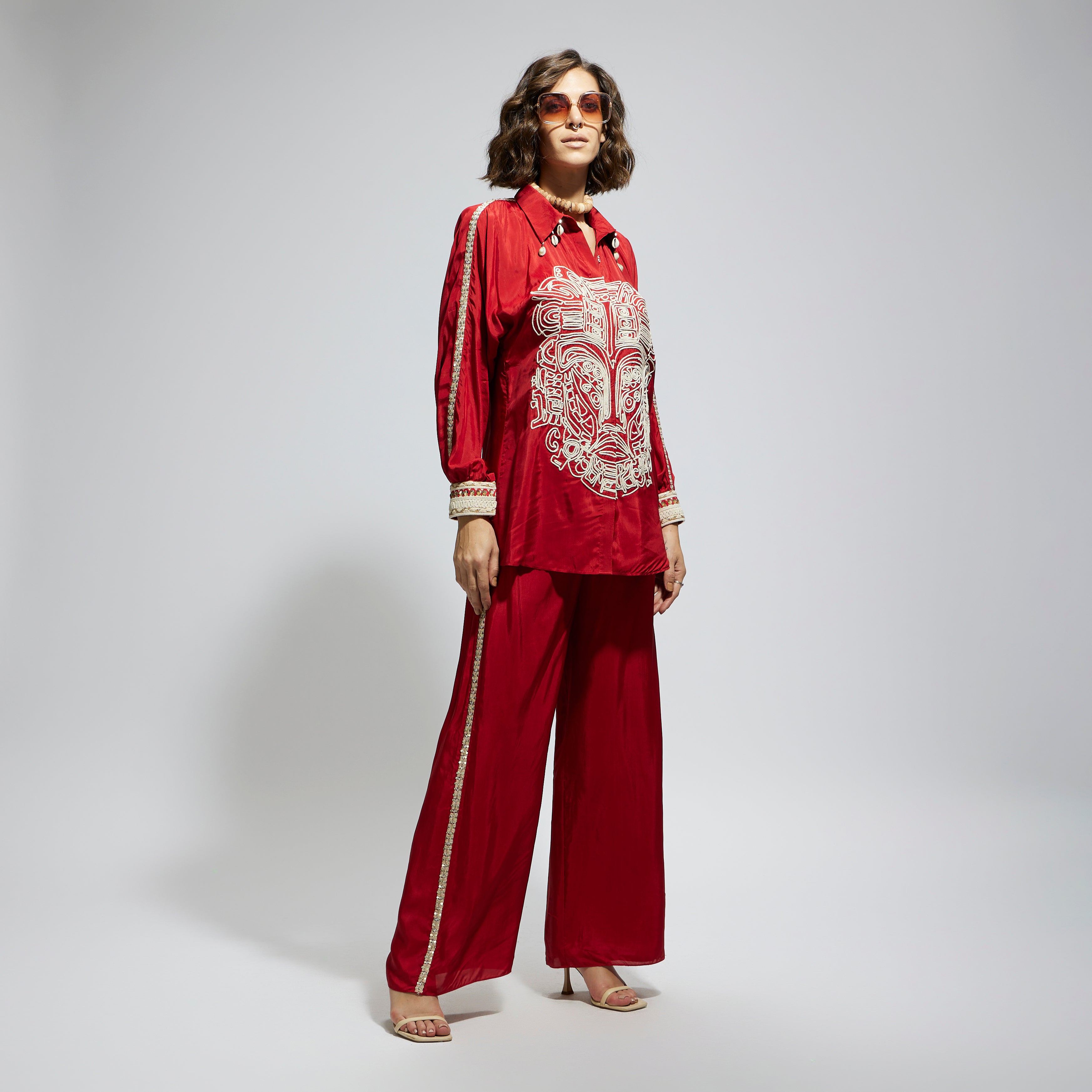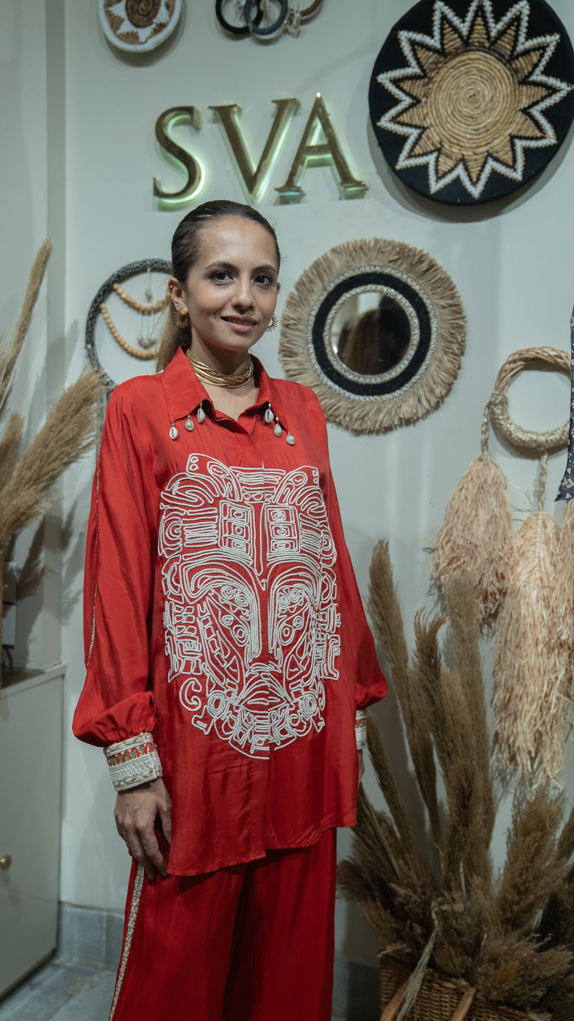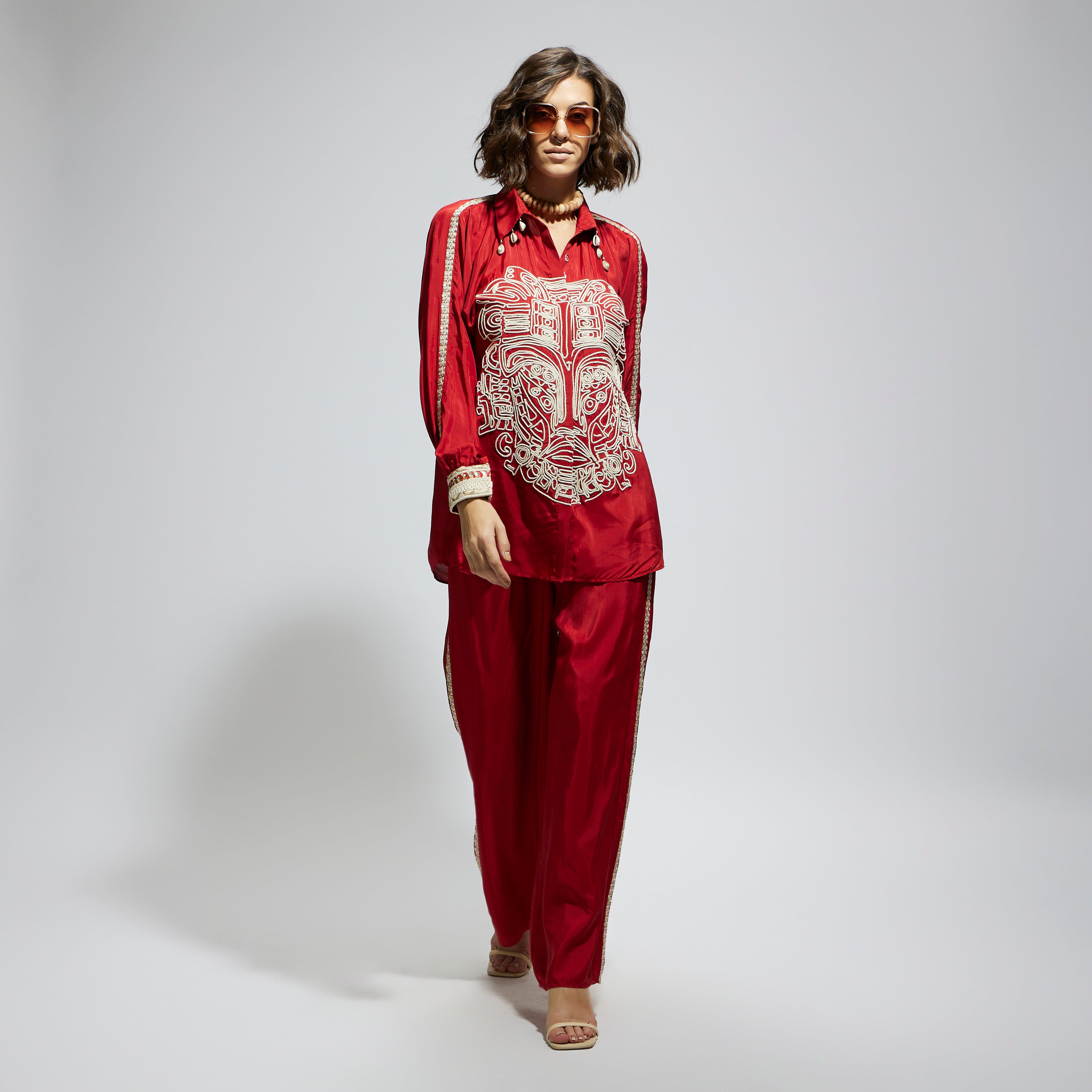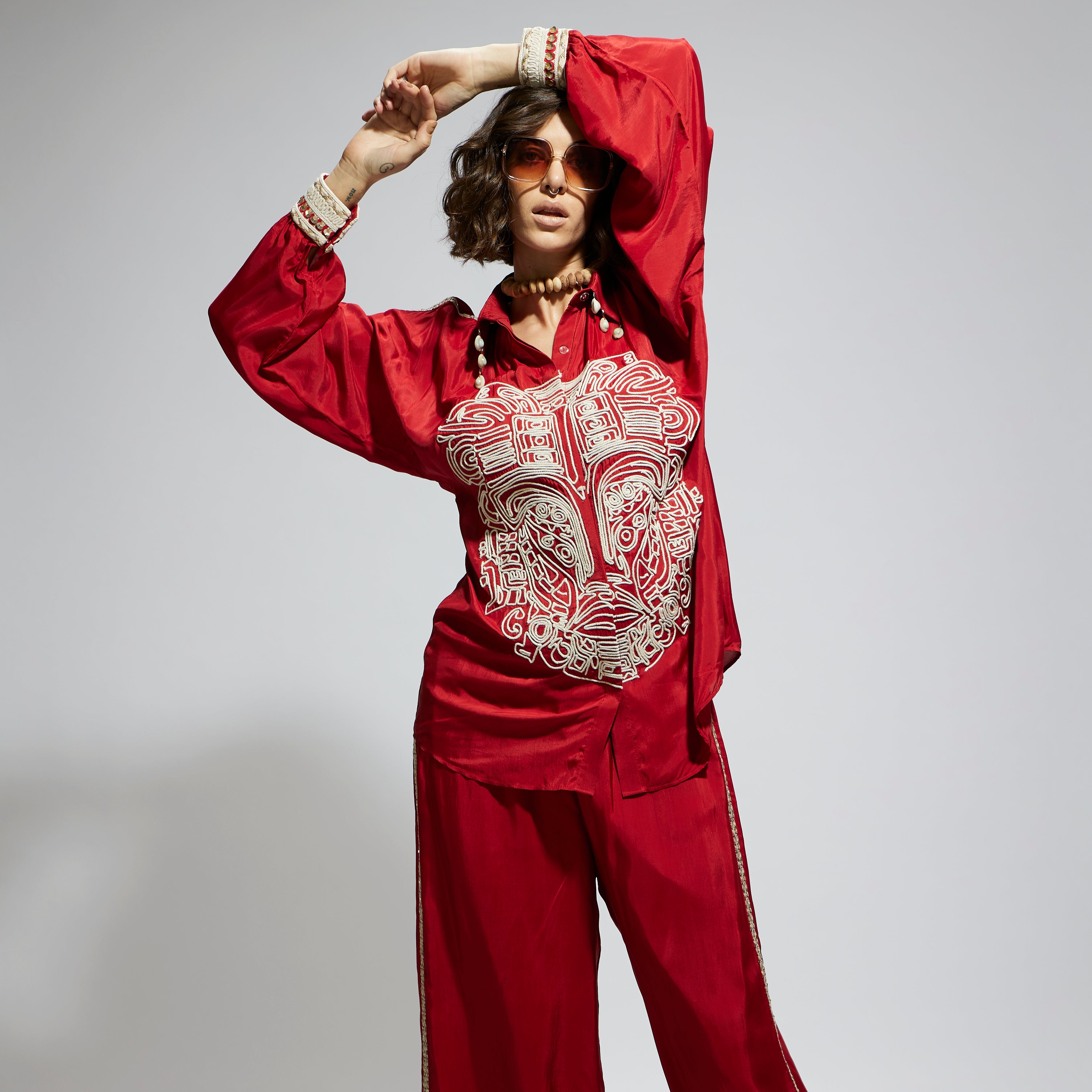 TERRACOTTA EMBELLISHED MASK OVERSIZED COORD SET