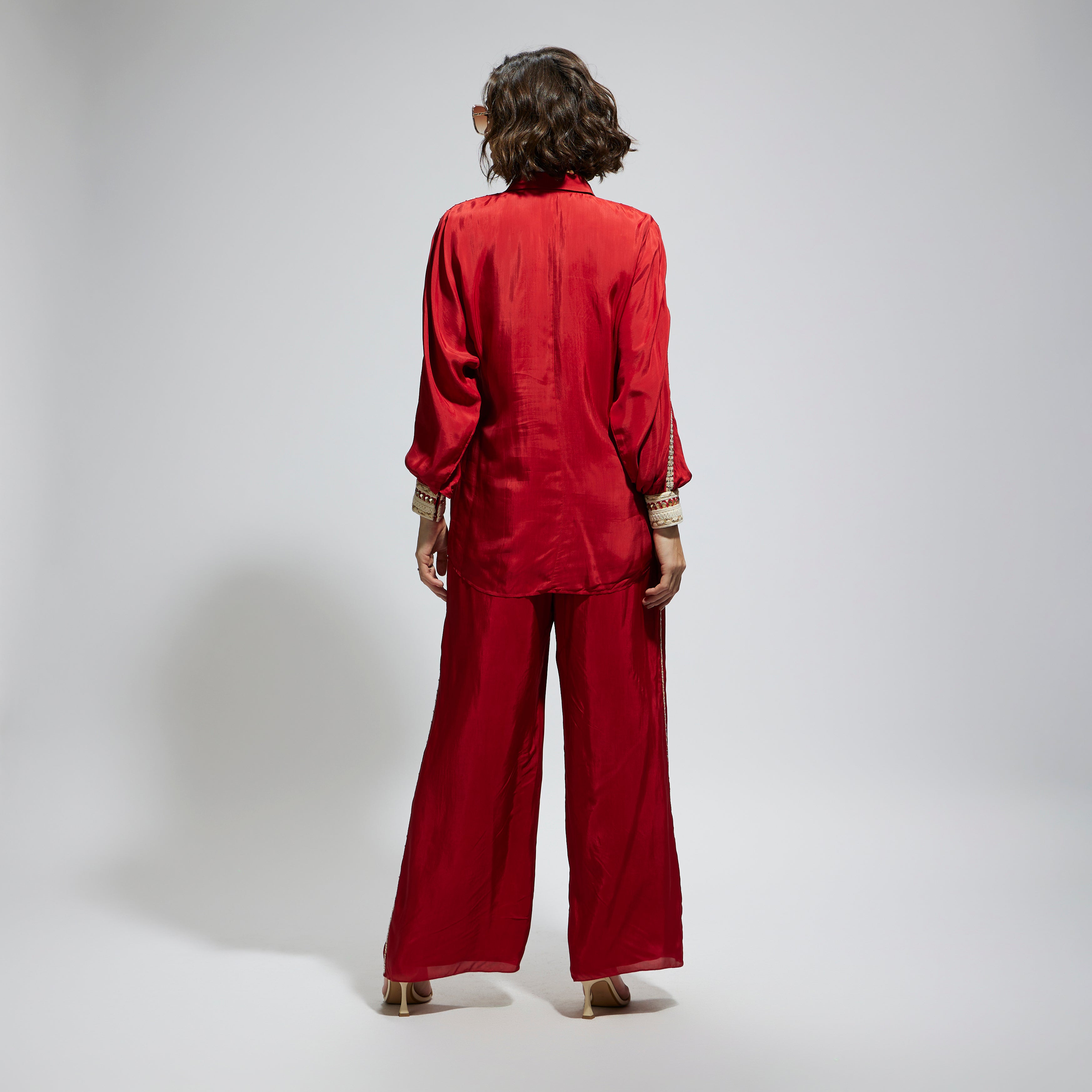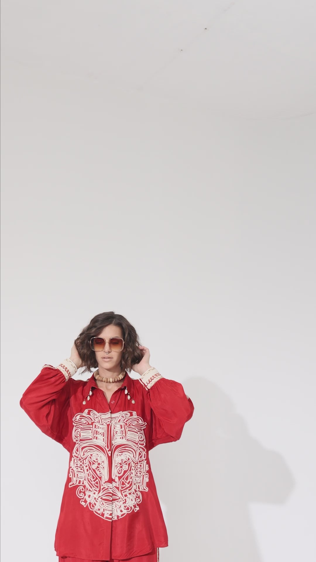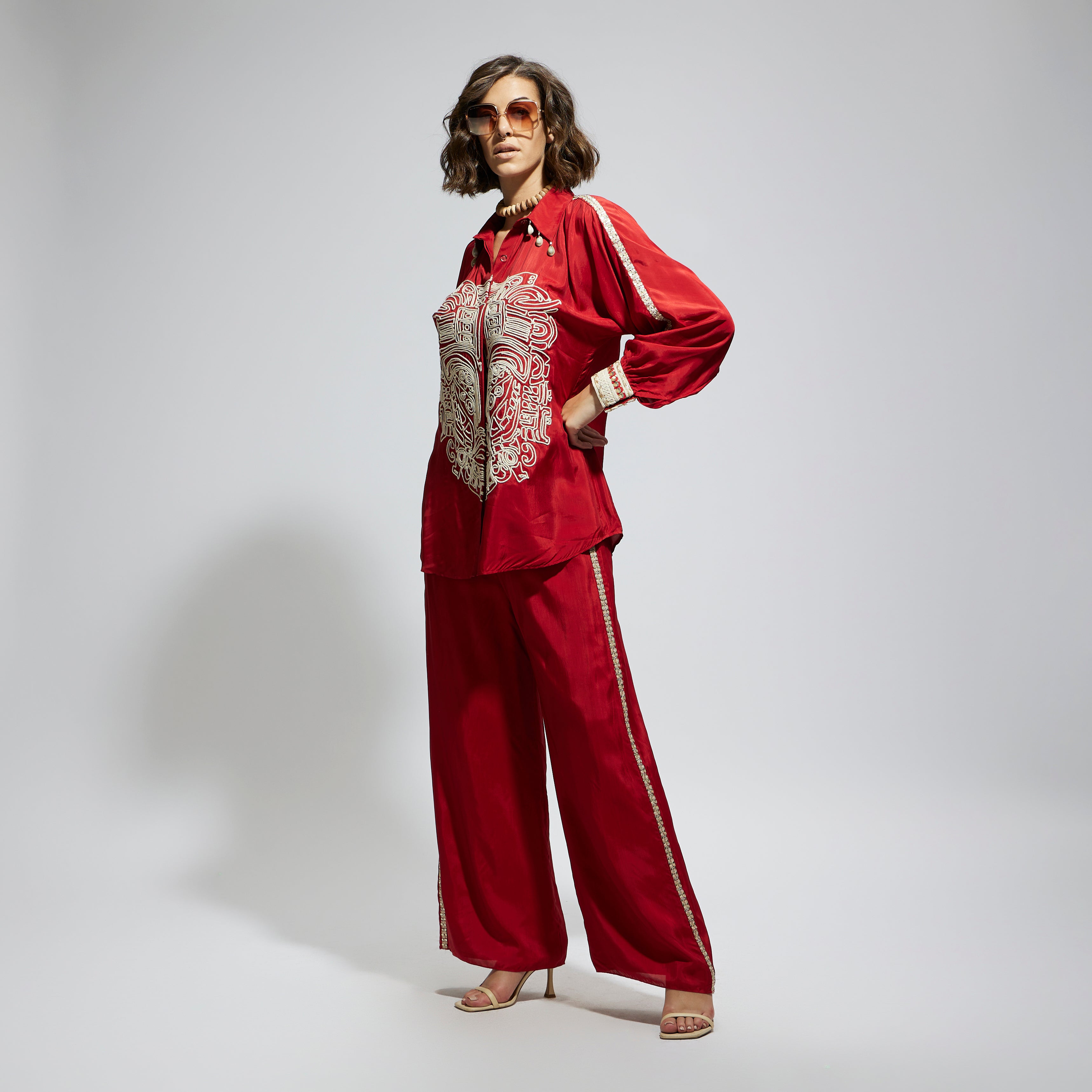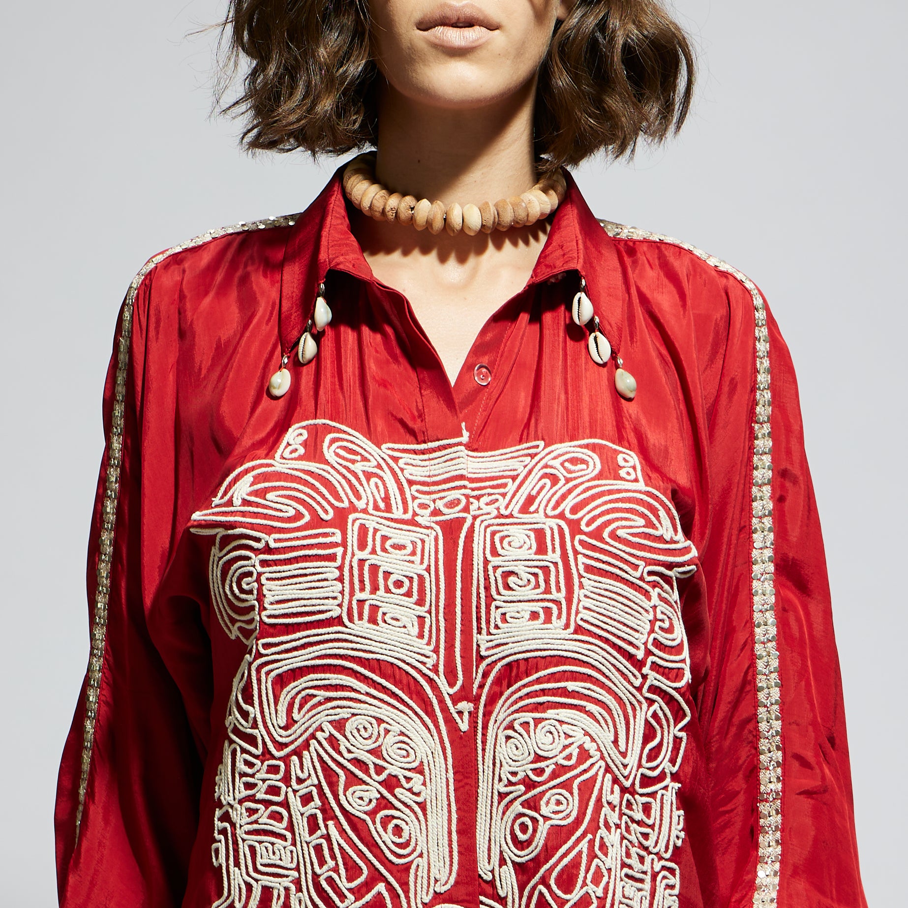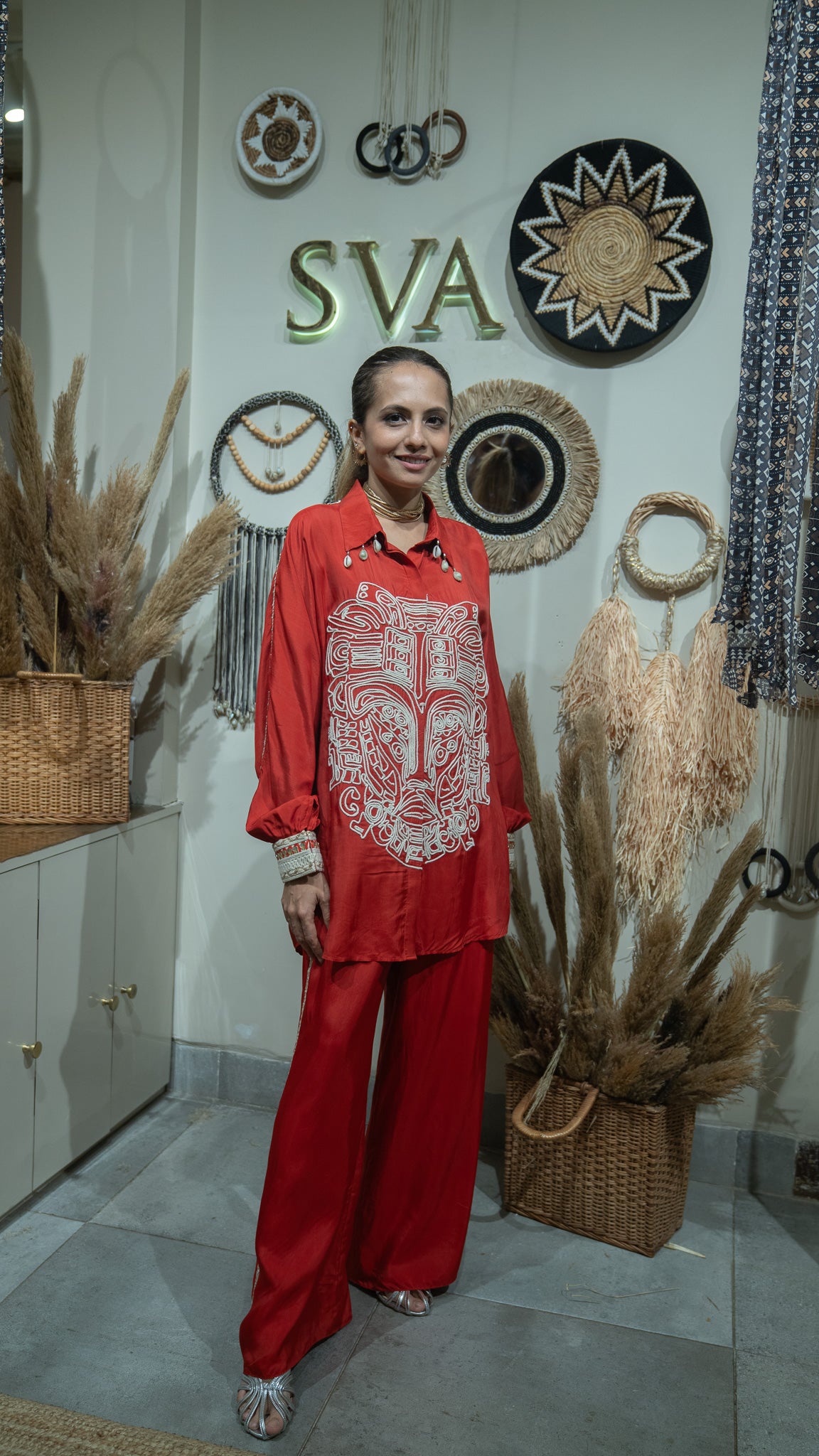 TERRACOTTA EMBELLISHED MASK OVERSIZED COORD SET