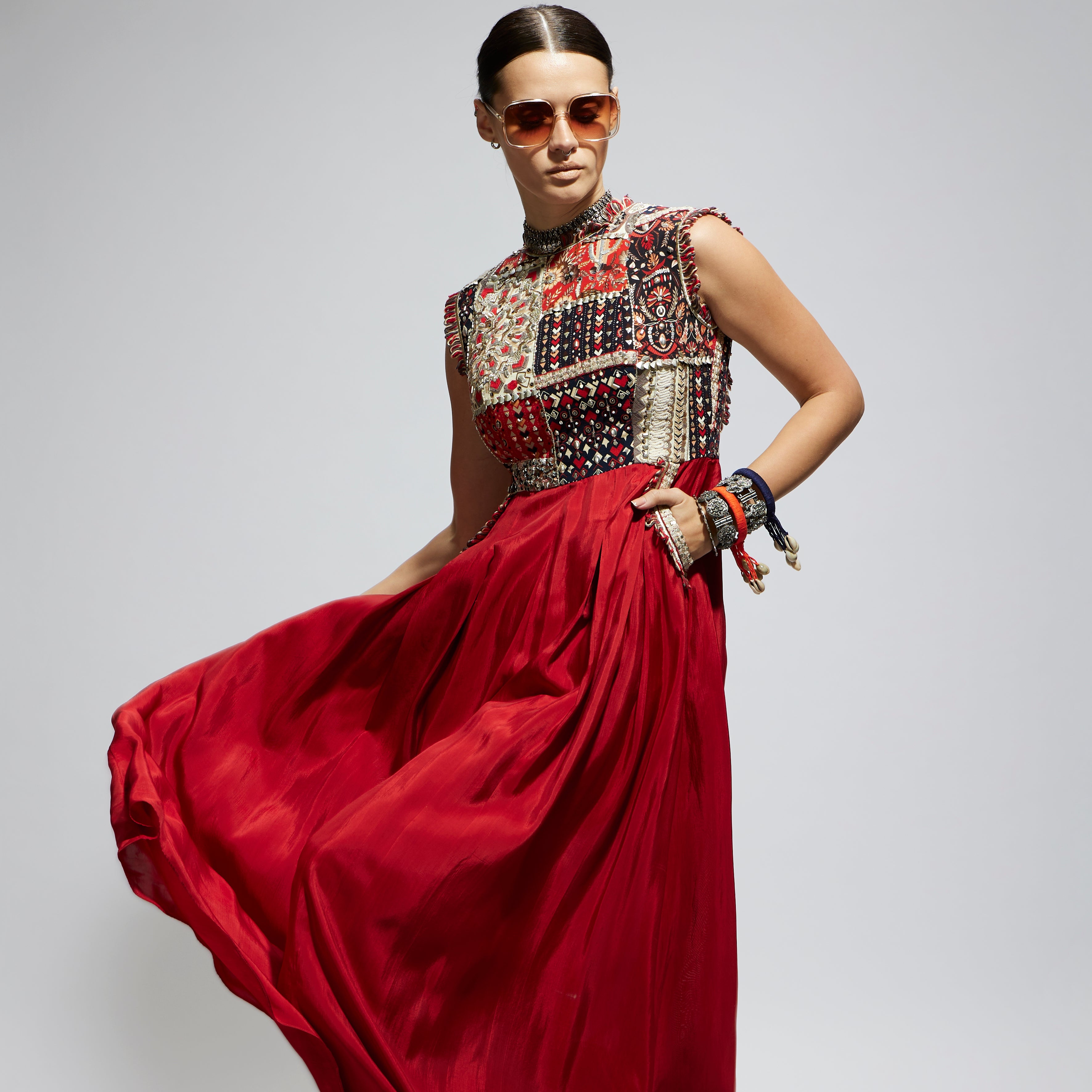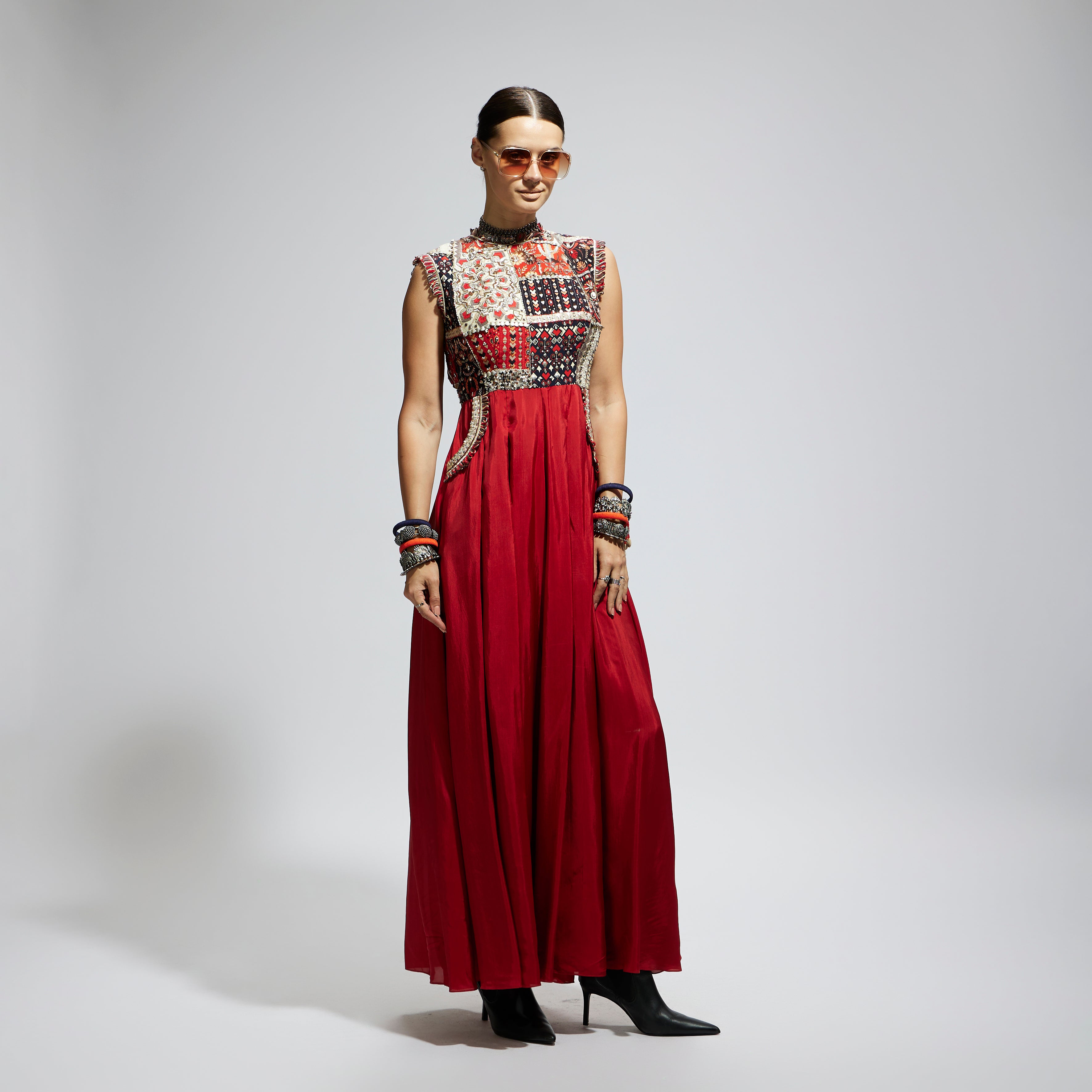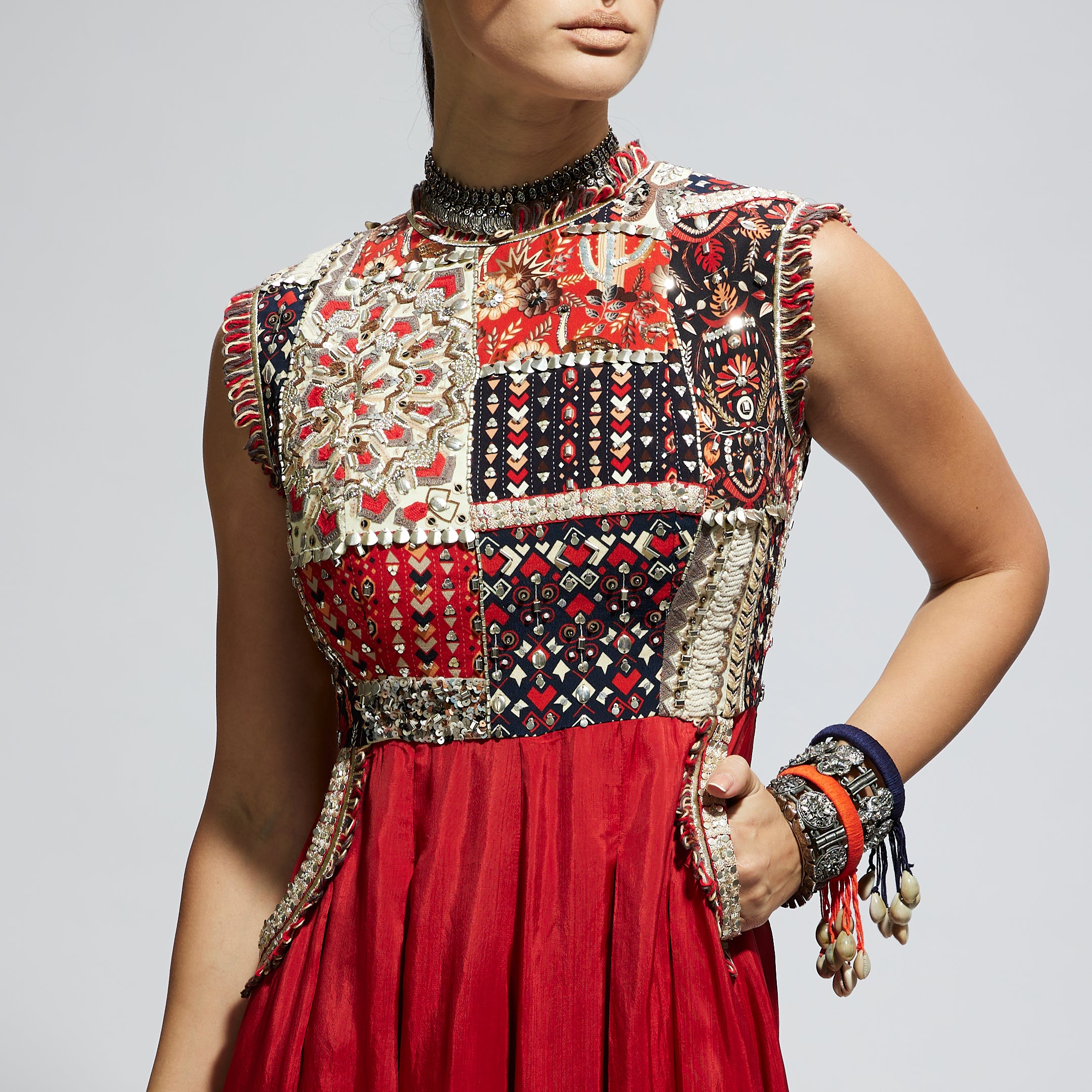Featuring a terracotta patchwork jumpsuit with a cutout back, fabric habutai, and patchwork, Component 1.